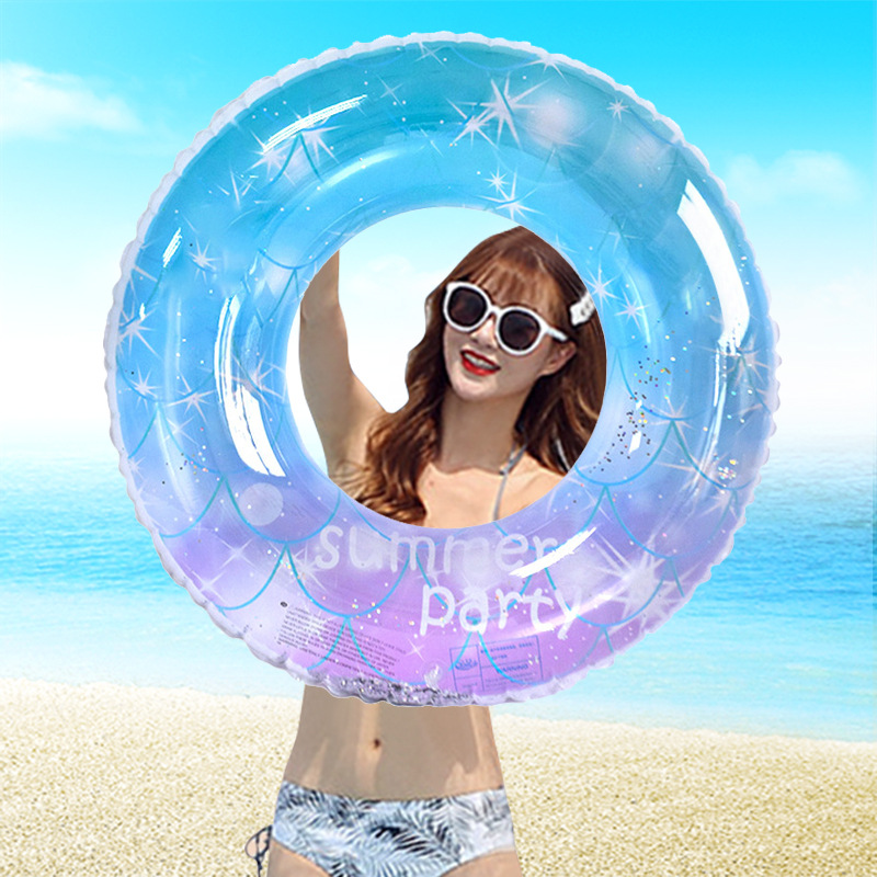 新款跨境加厚网红亮片星空美人鱼游泳圈 儿童 男女泳圈腋下圈浮圈