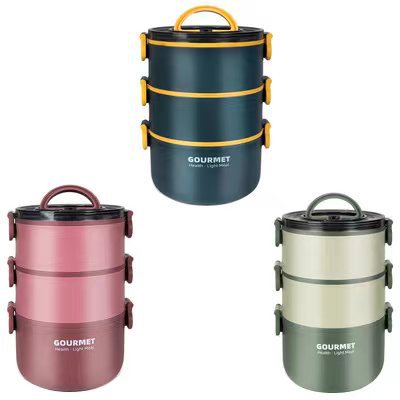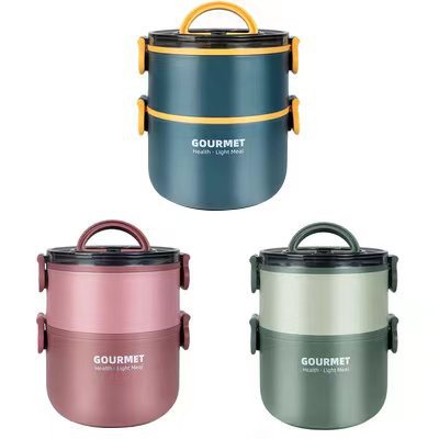 欧式不锈钢保温圆形饭盒 双层三层学生塑料便当盒 多层饭盒保温桶
