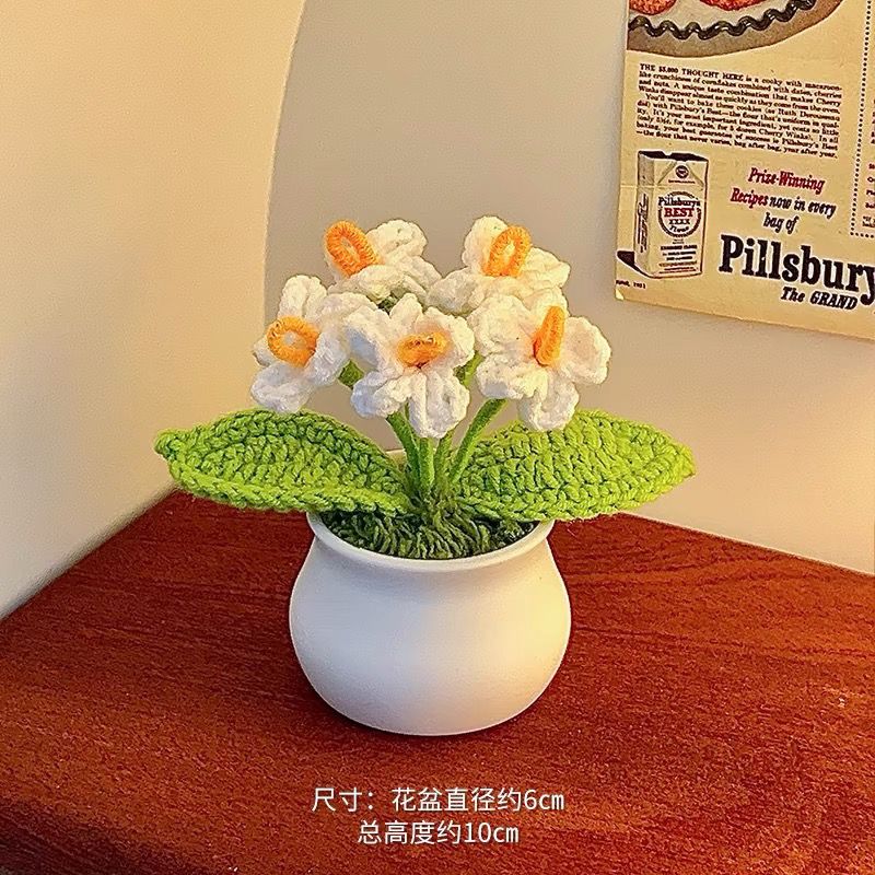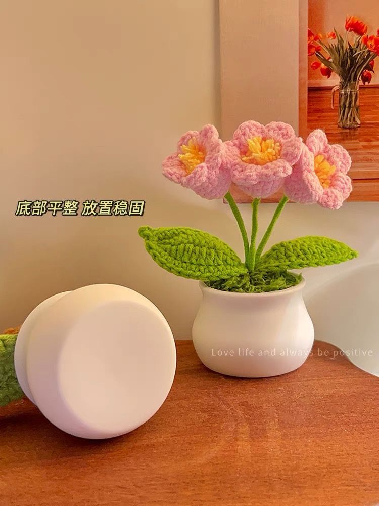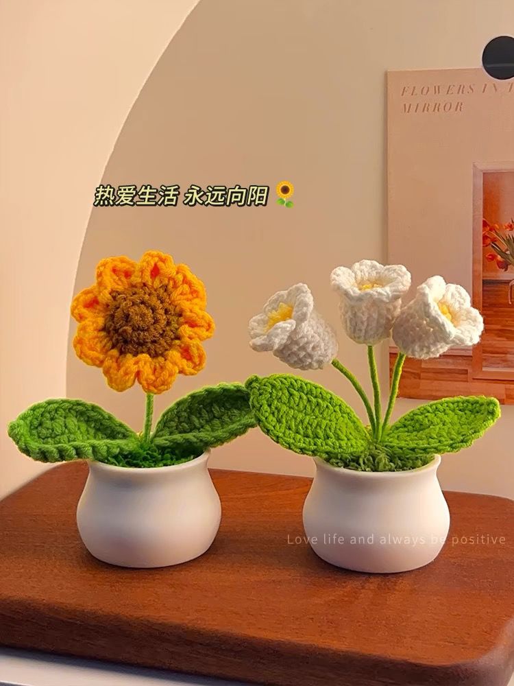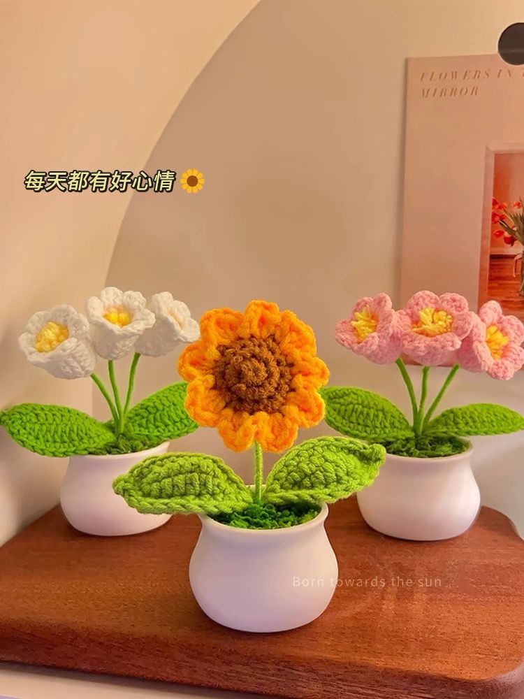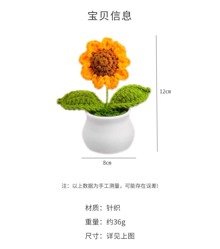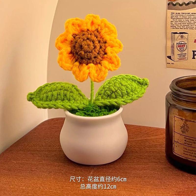 向日葵盆栽手工编织成品花束摆件桌面手工编织毛线花盆仿真针织