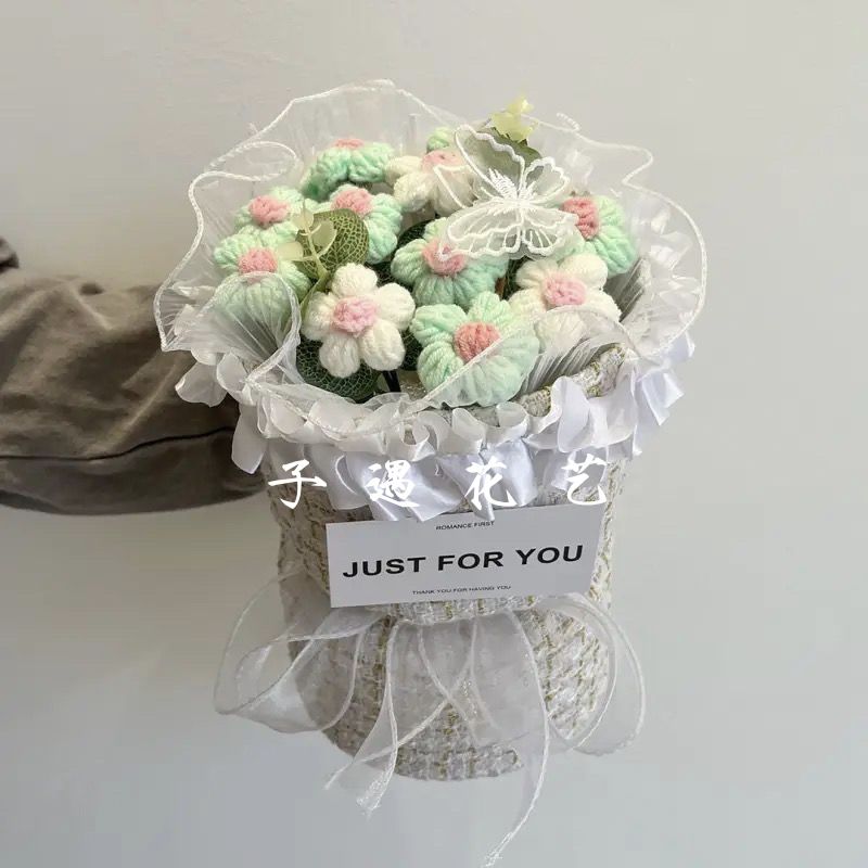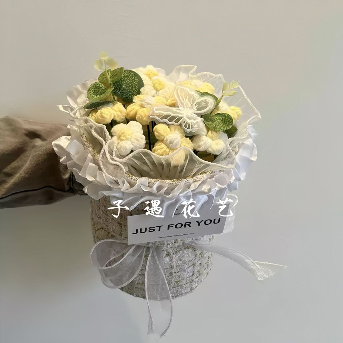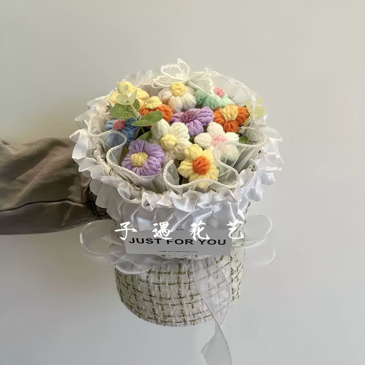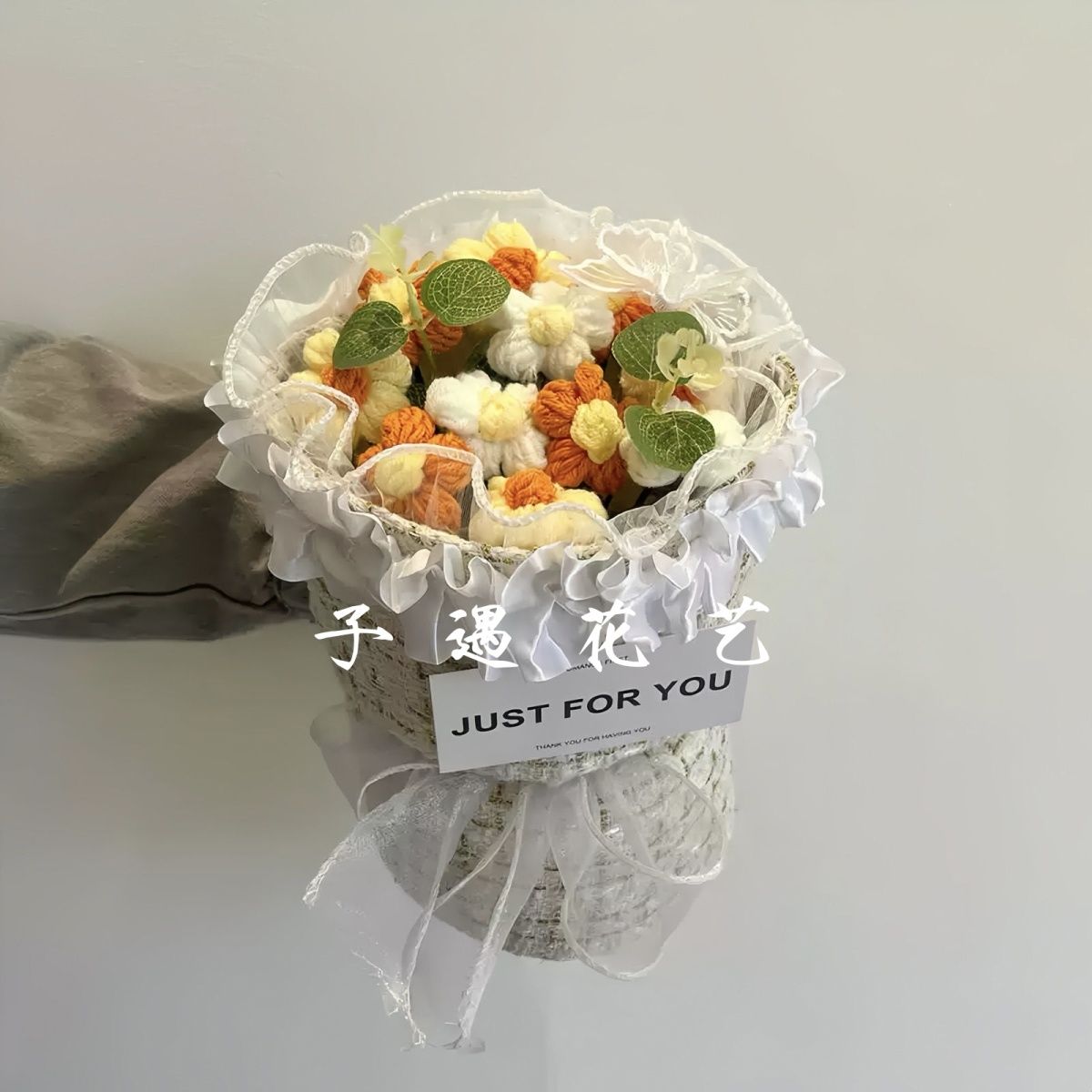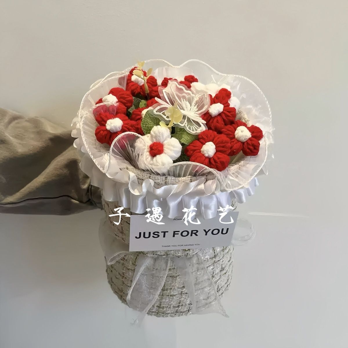 成品草莓香风花束手工礼物毛线玫瑰泡芙花生日礼物闺蜜情人节女友