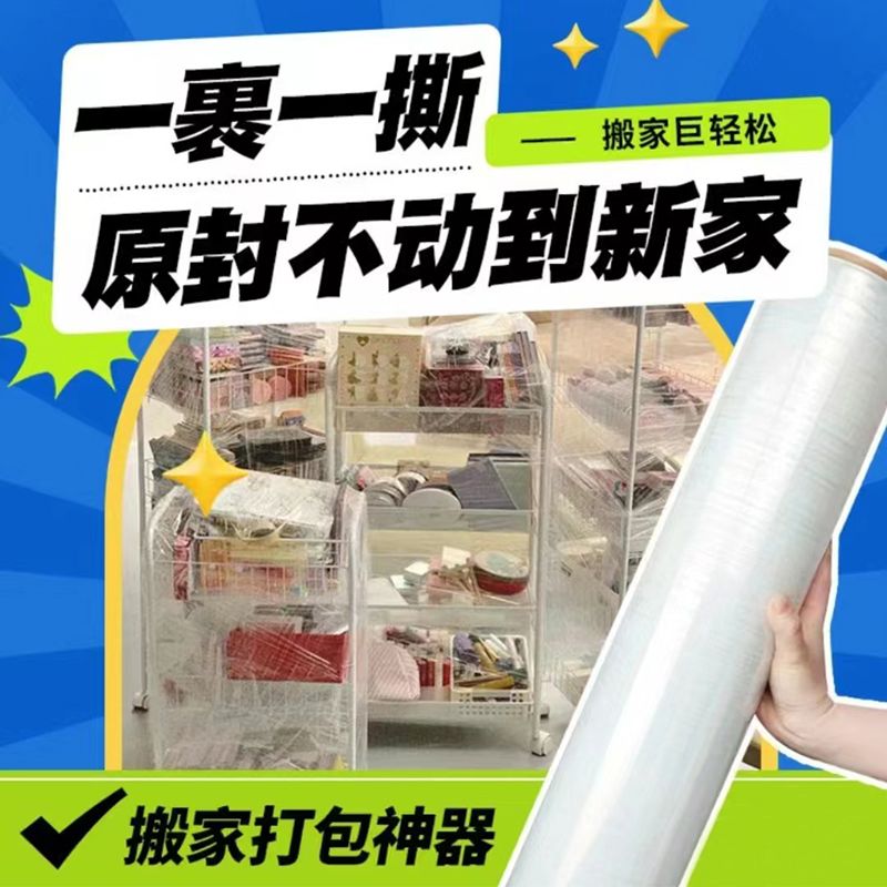 搬家打包神器万能型打包膜工业保鲜膜搬家保护膜拉伸膜大卷缠绕膜