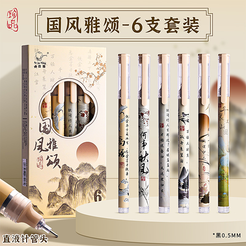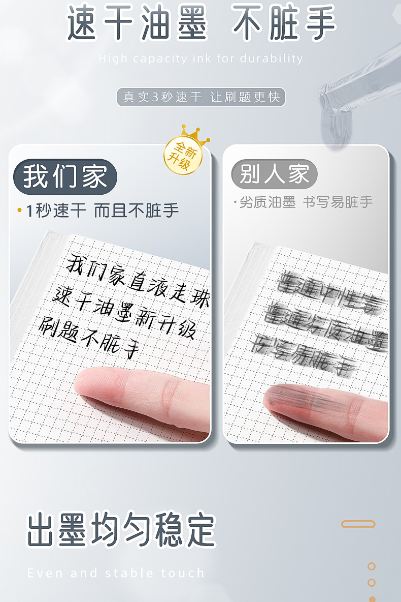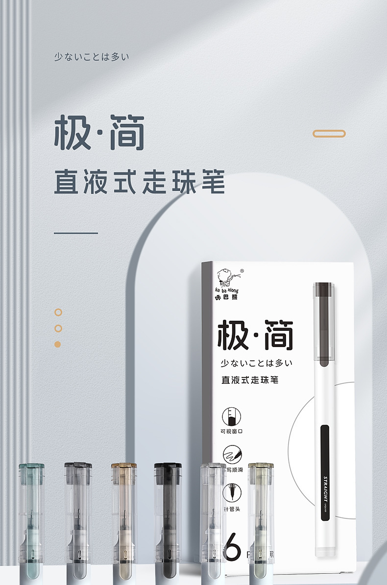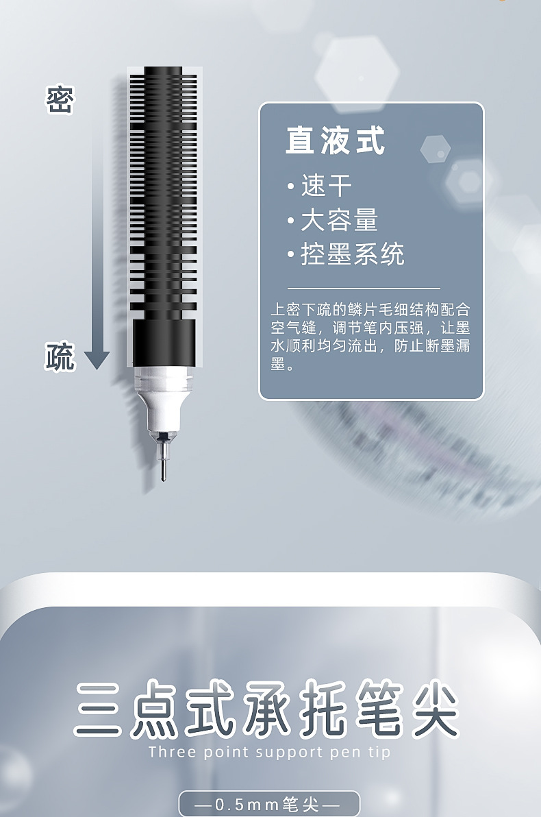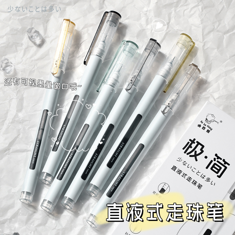高颜值直液式走珠笔0.5mm中性笔刷题笔学生用大容量初中专全针管
