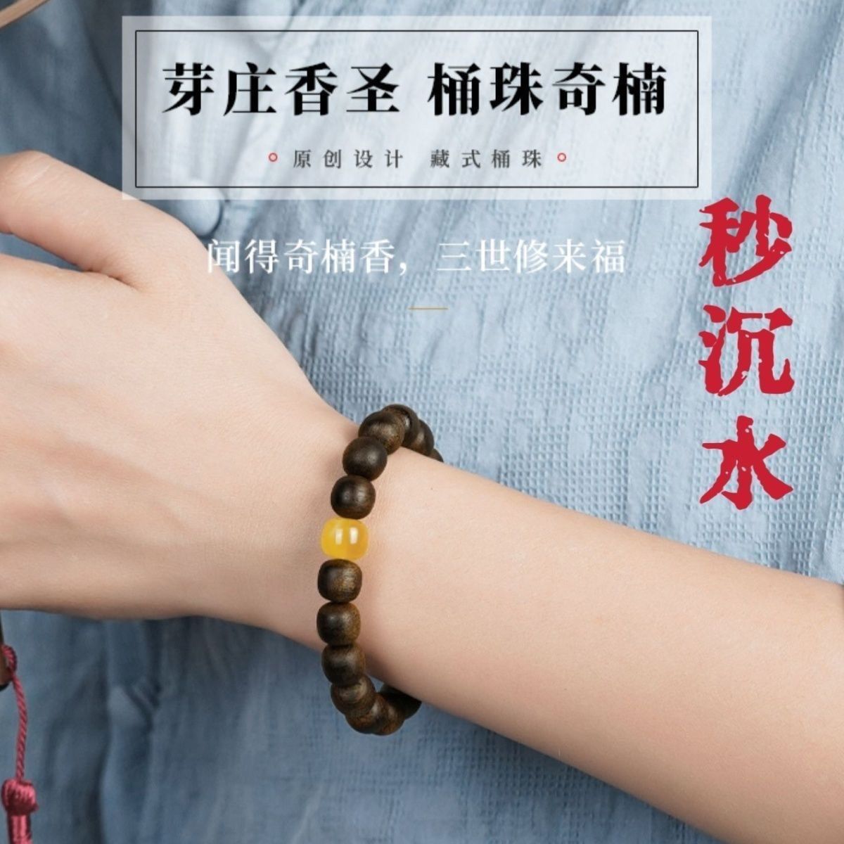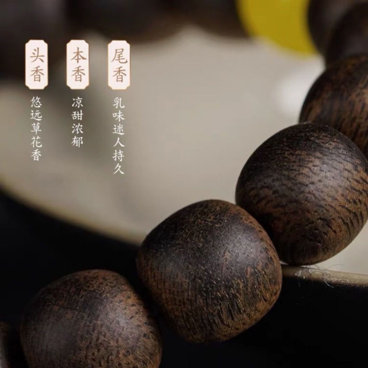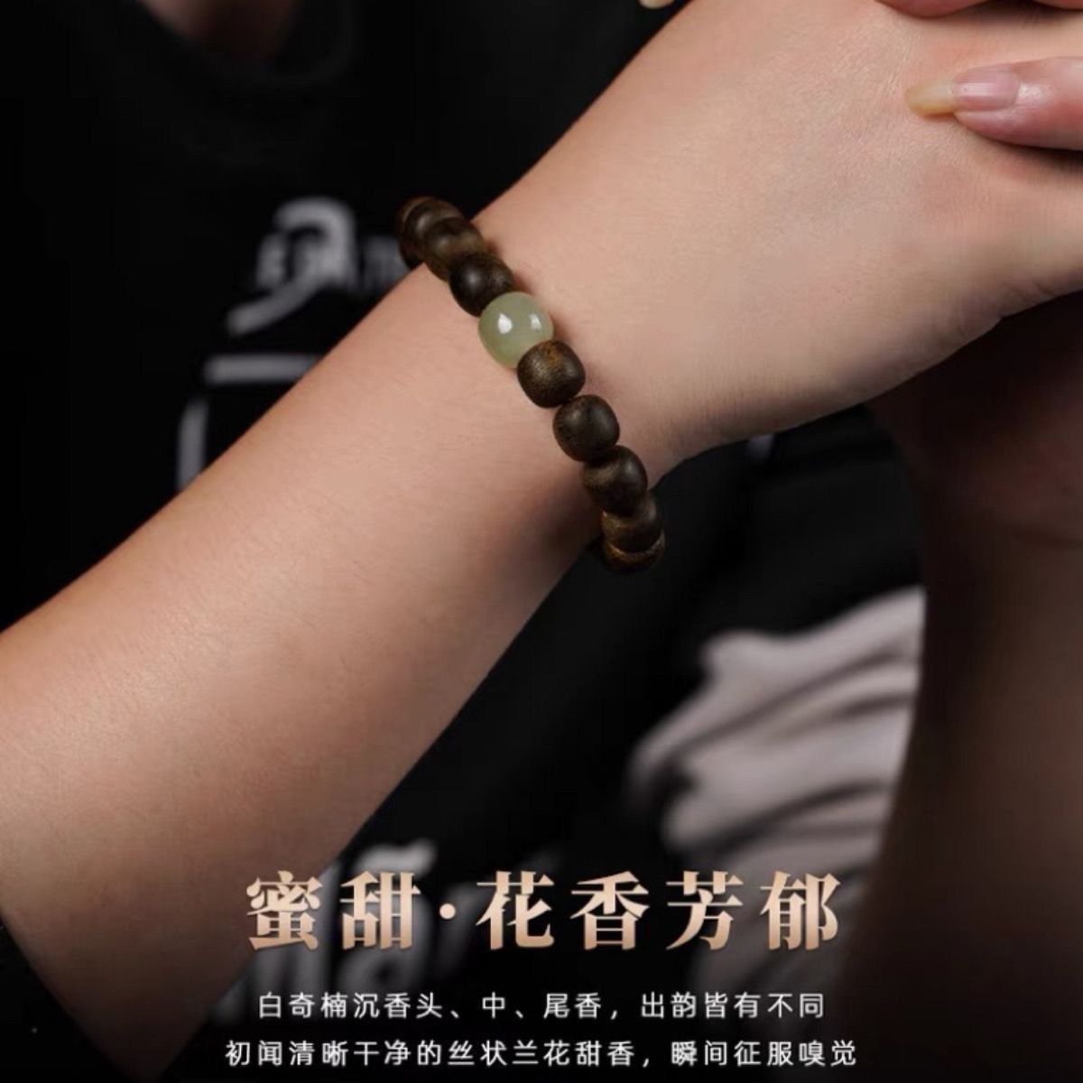 带证书秒沉水越南芽庄沉香手串男老料白奇楠桶珠单圈佛珠手链男女