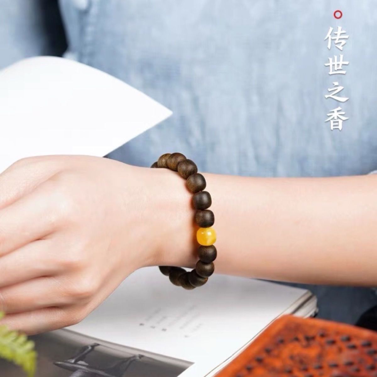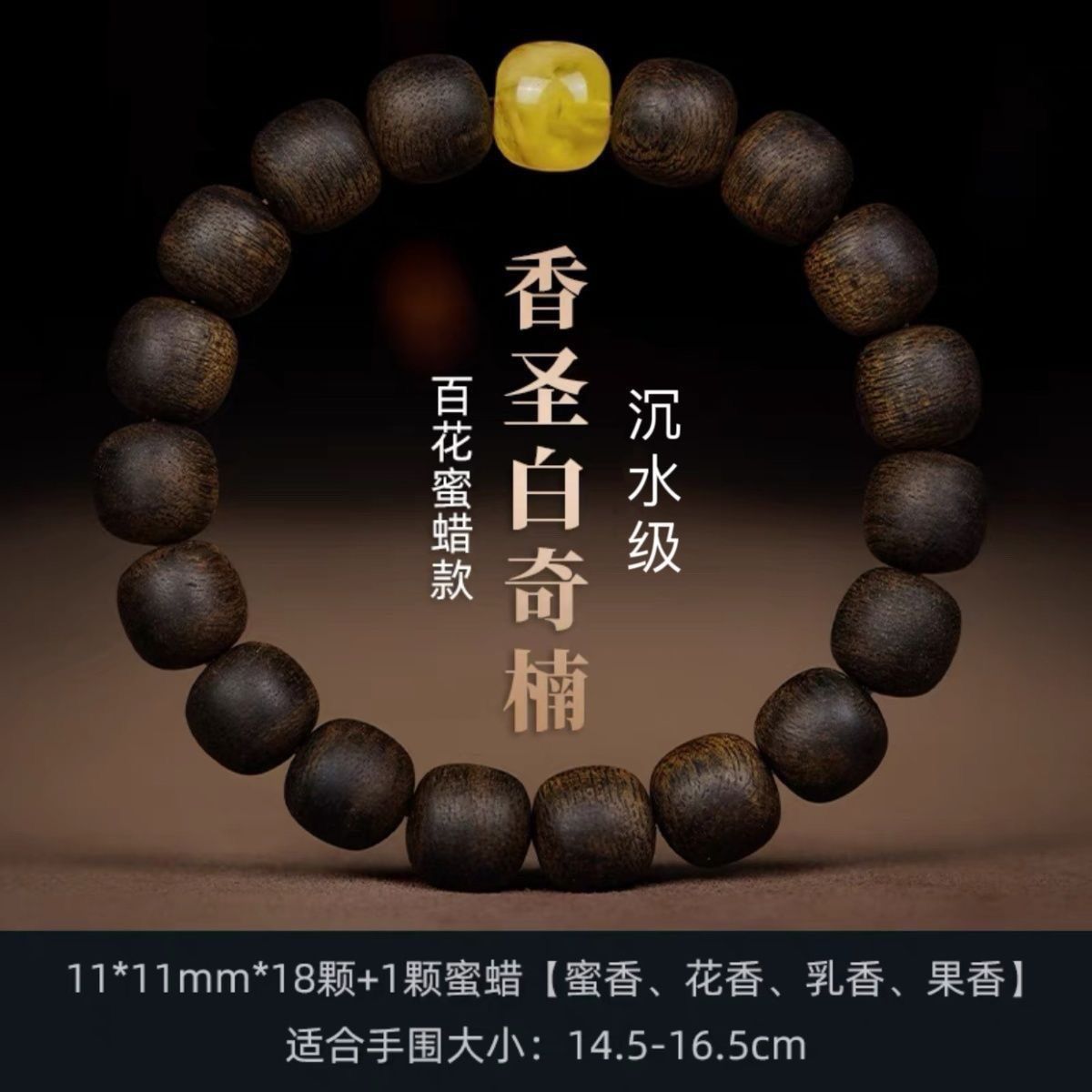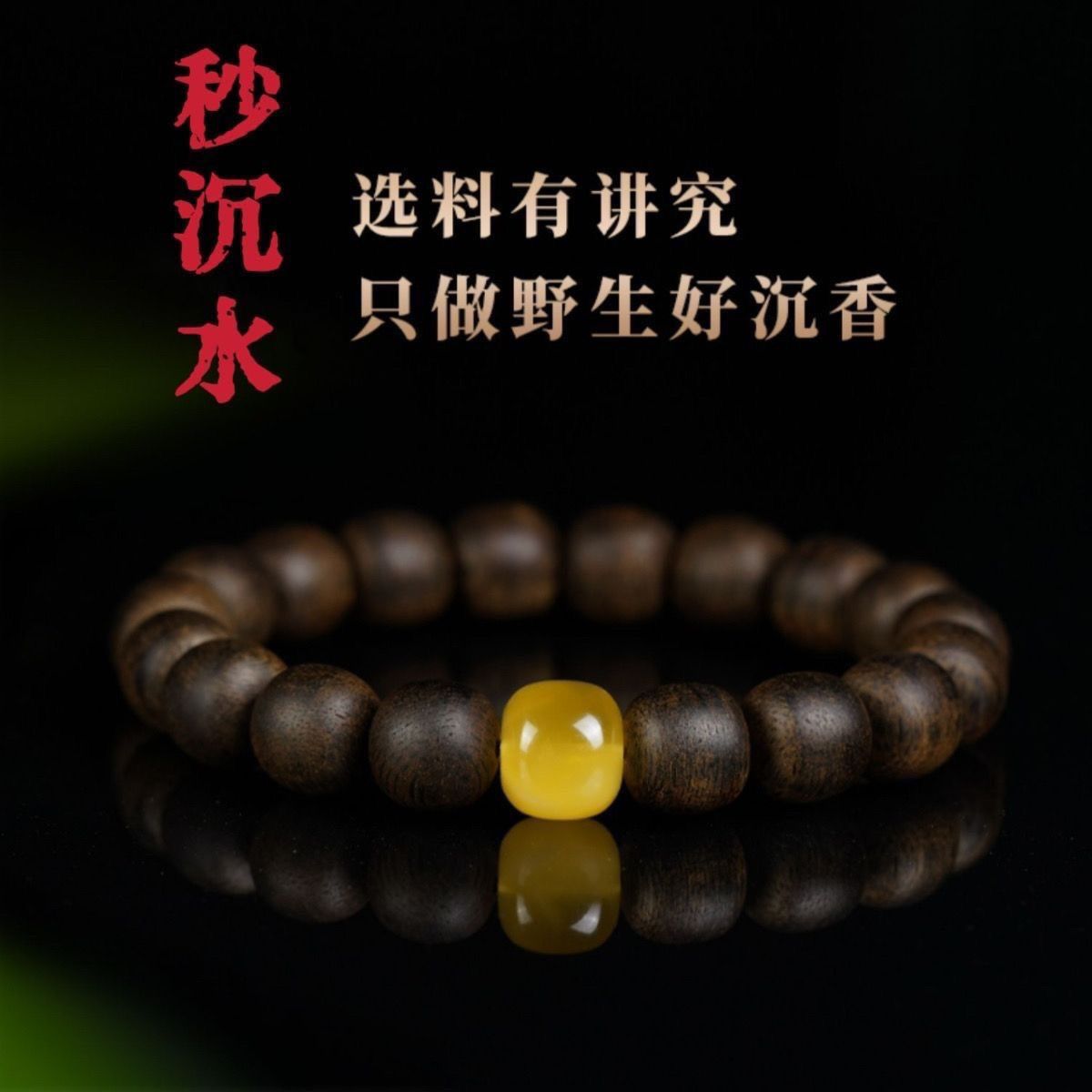带证书秒沉水越南芽庄沉香手串男老料白奇楠桶珠单圈佛珠手链男女