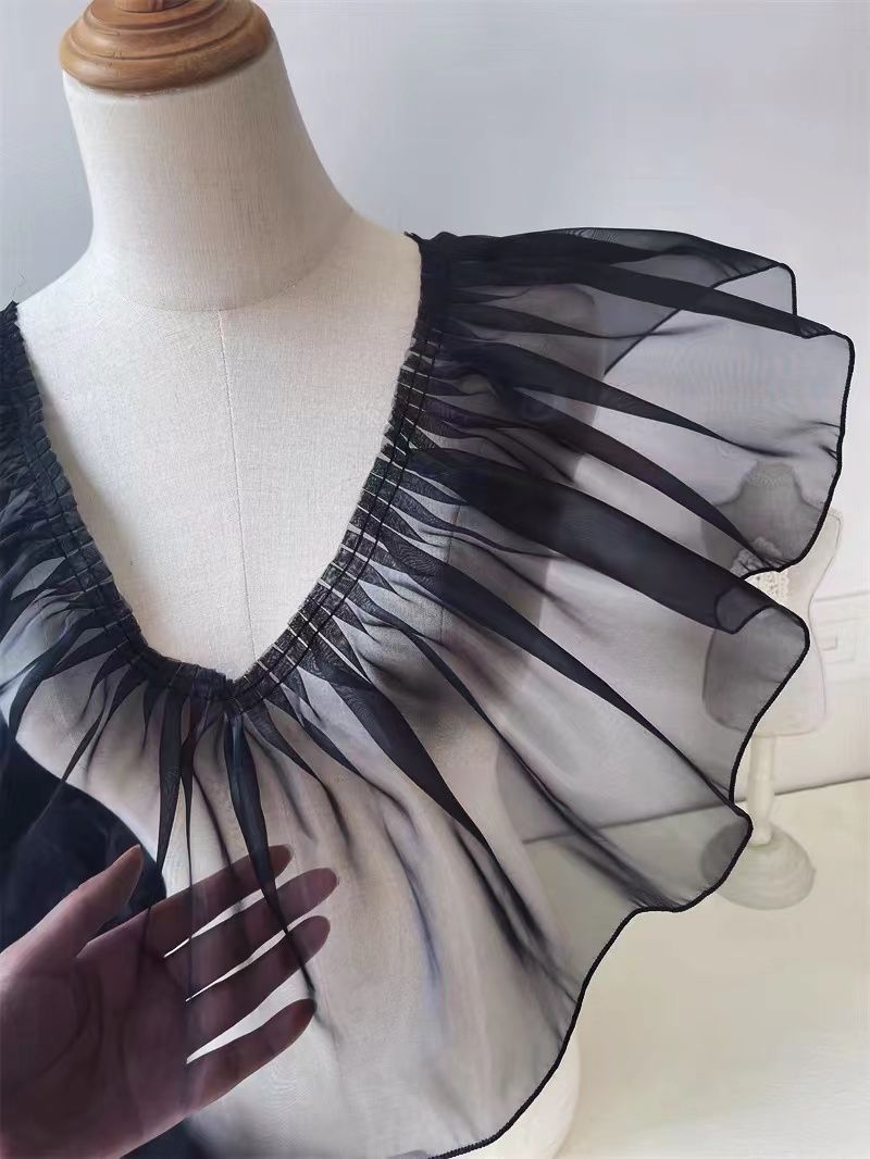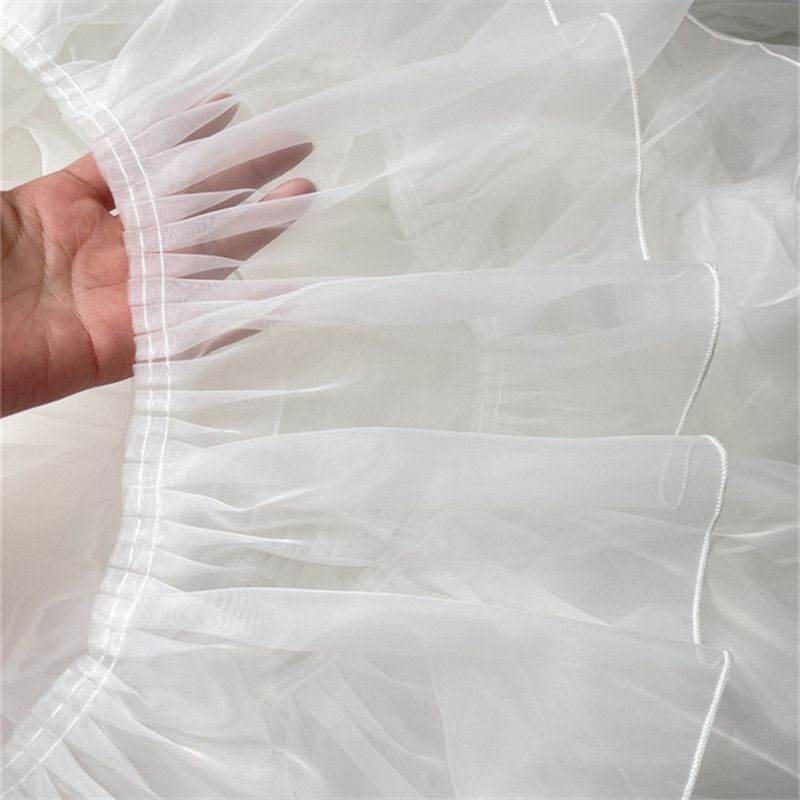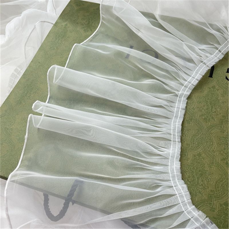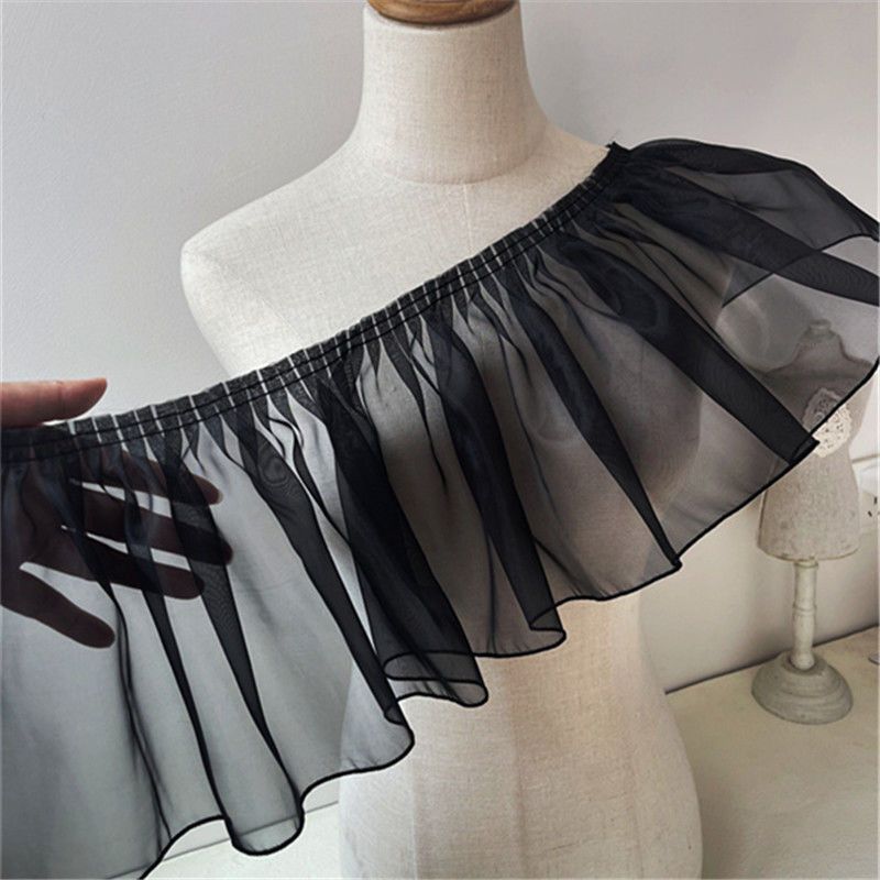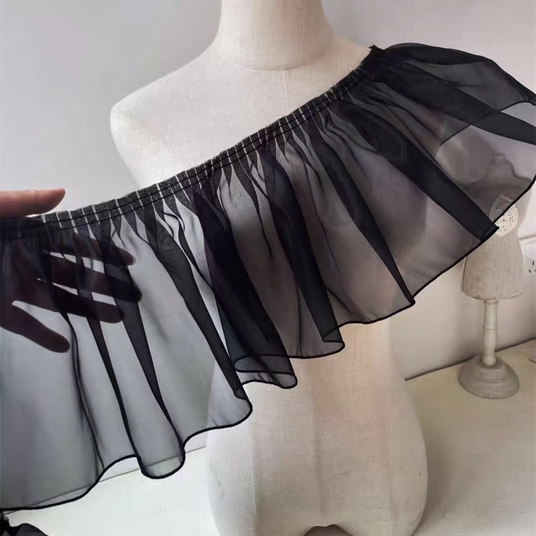 20厘米加宽白色褶皱荷叶边欧根纱蕾丝服装裙摆花边DIY装饰辅料