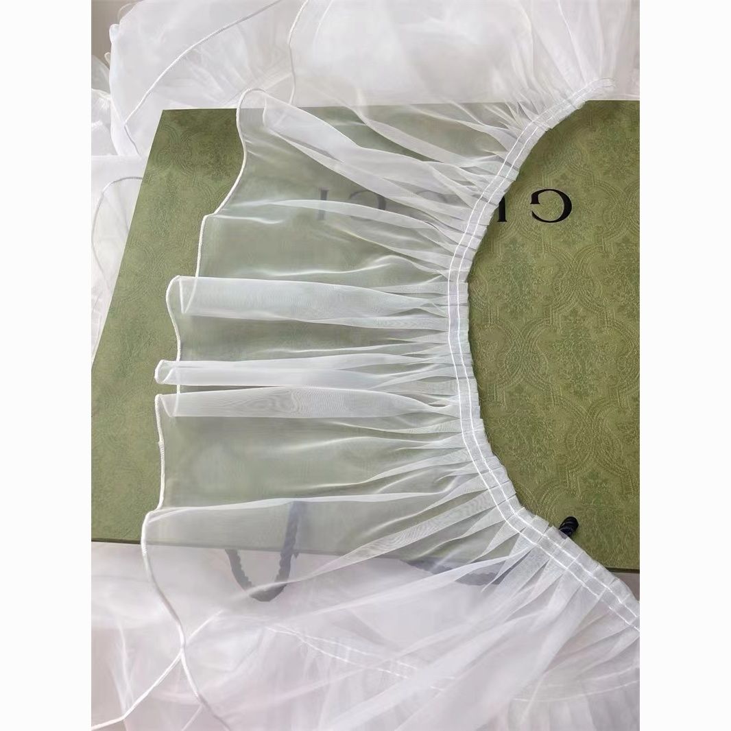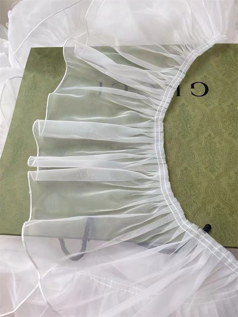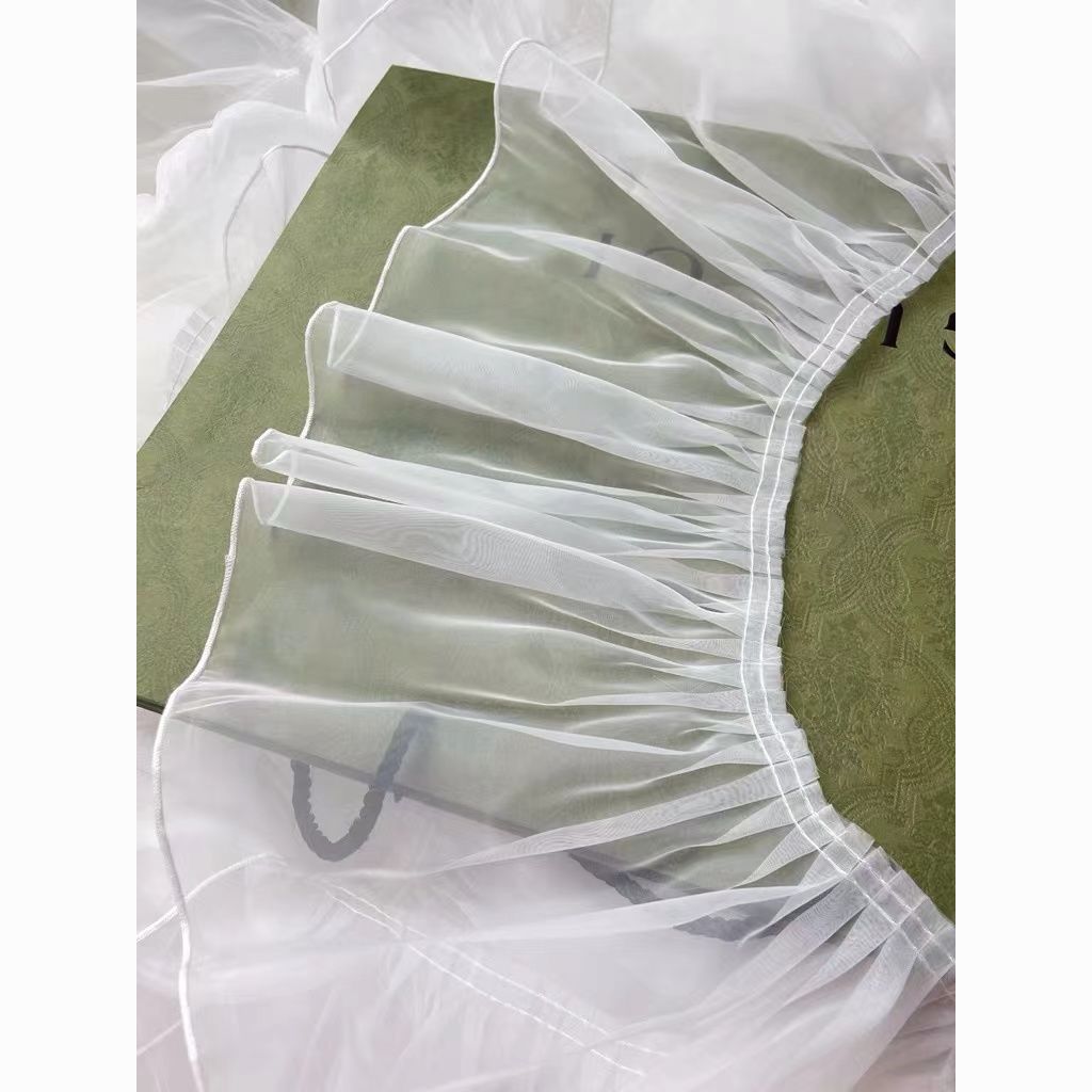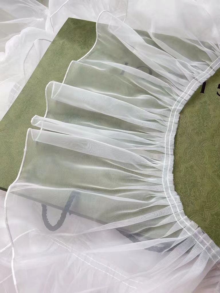 20厘米加宽白色褶皱荷叶边欧根纱蕾丝服装裙摆花边DIY装饰辅料