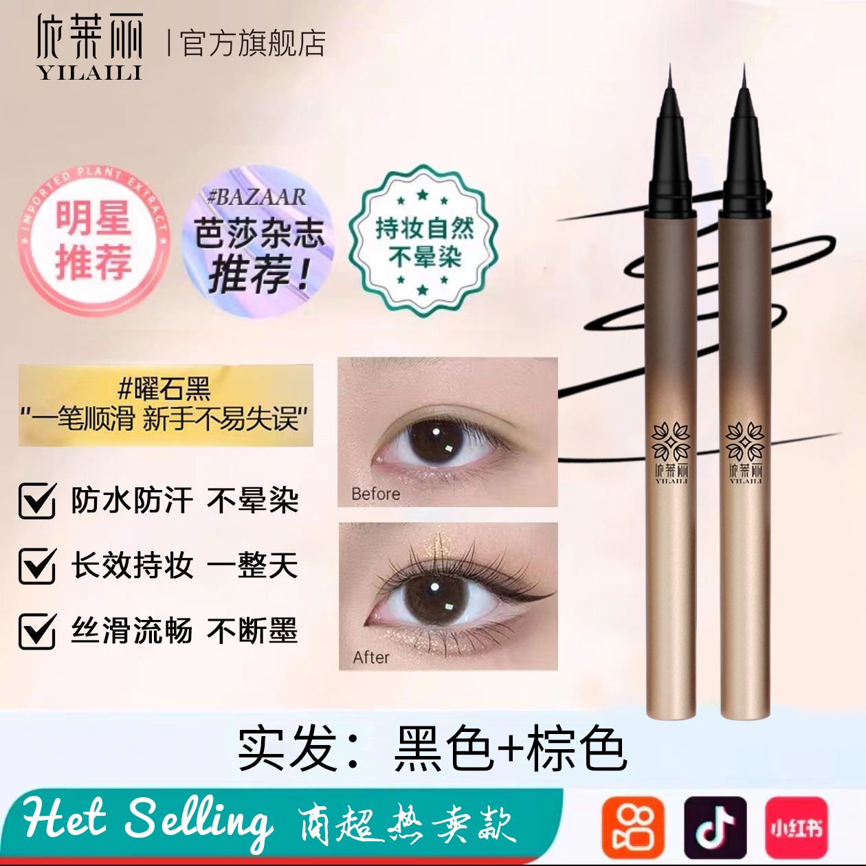 小鱼海棠推荐√眼线液笔自然速干防水防汗不晕染卧蚕细头胶笔