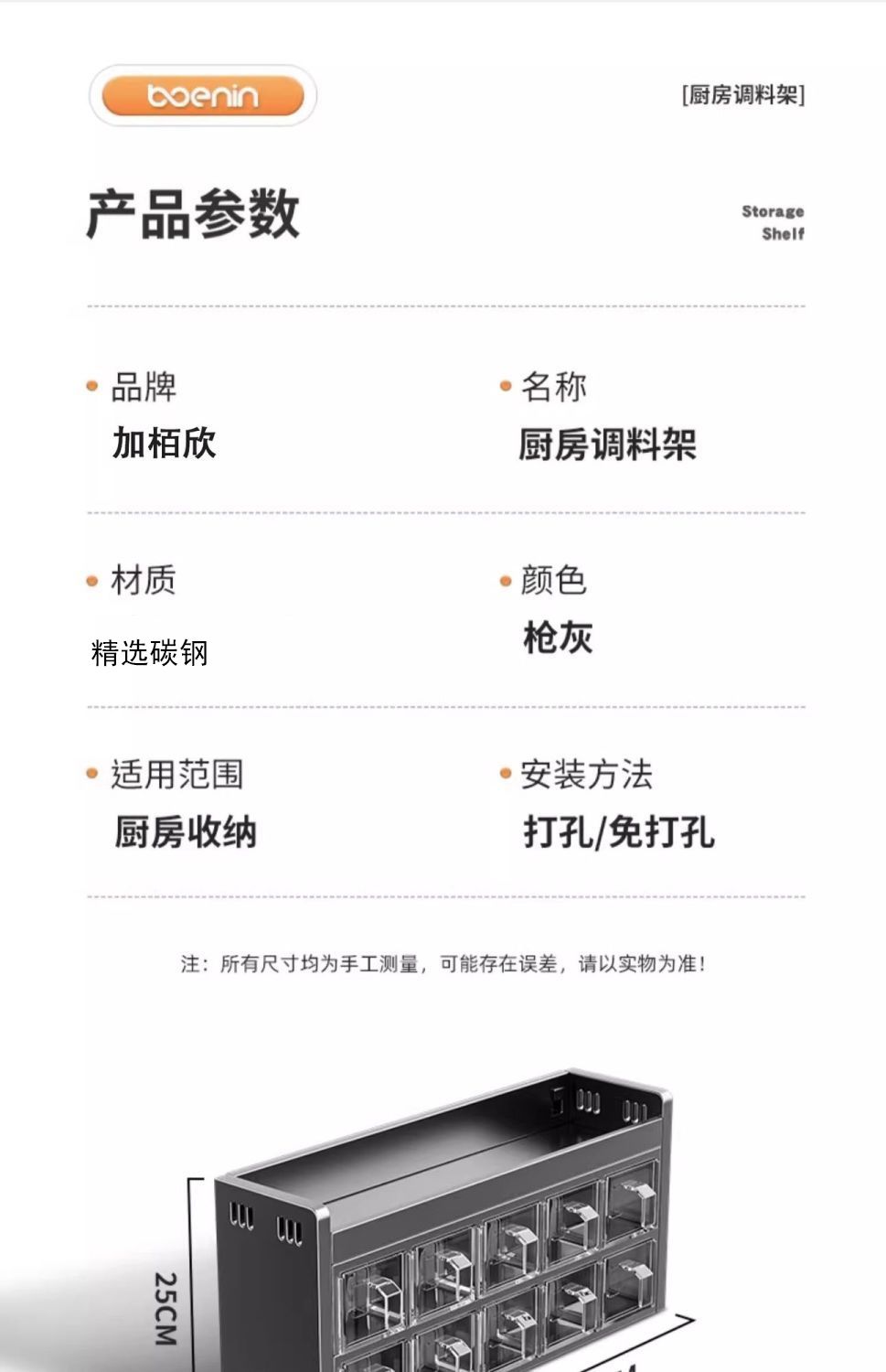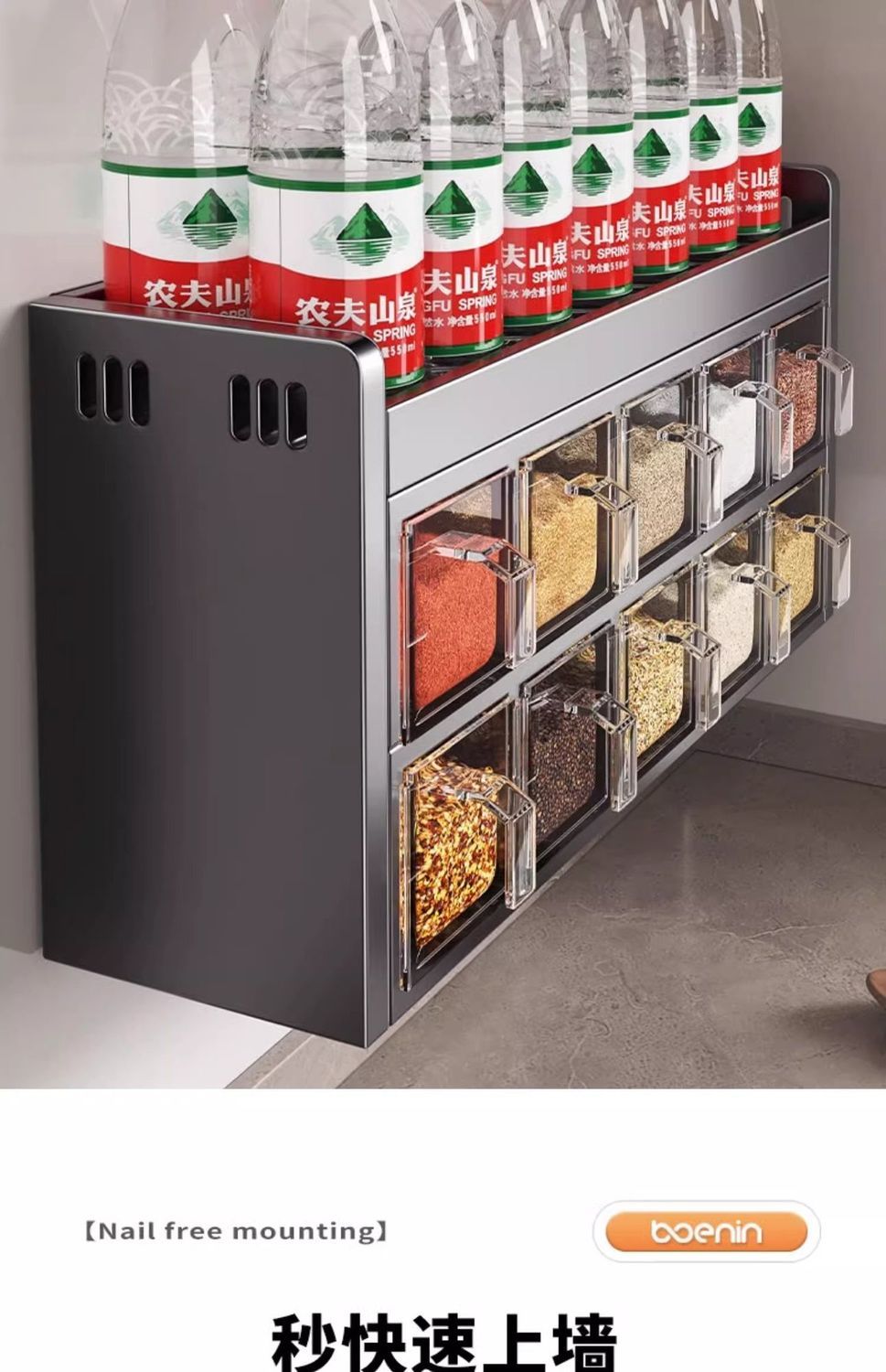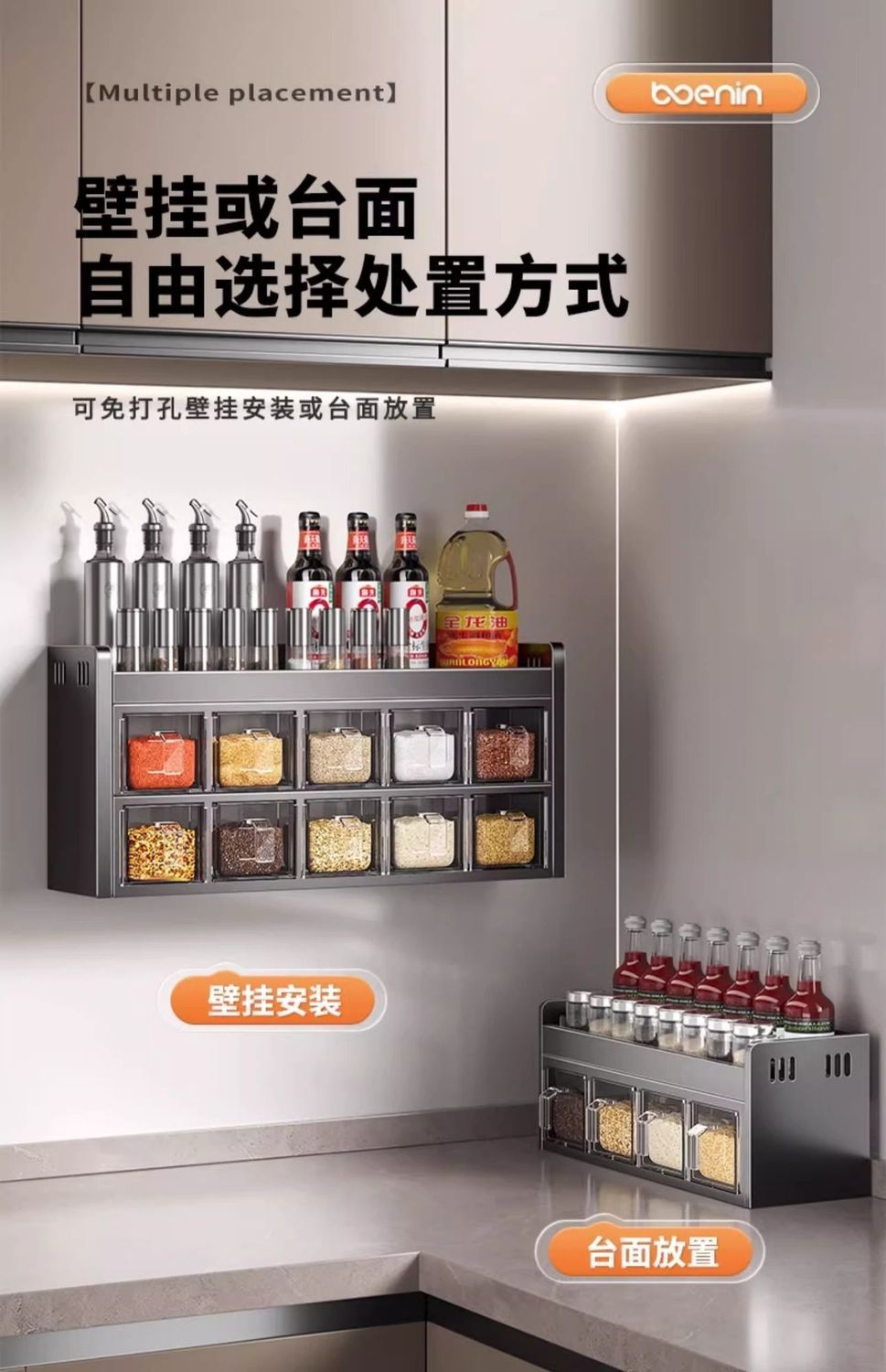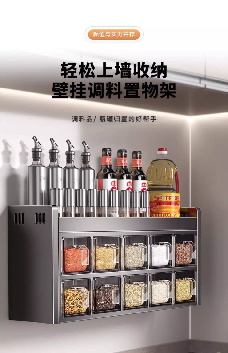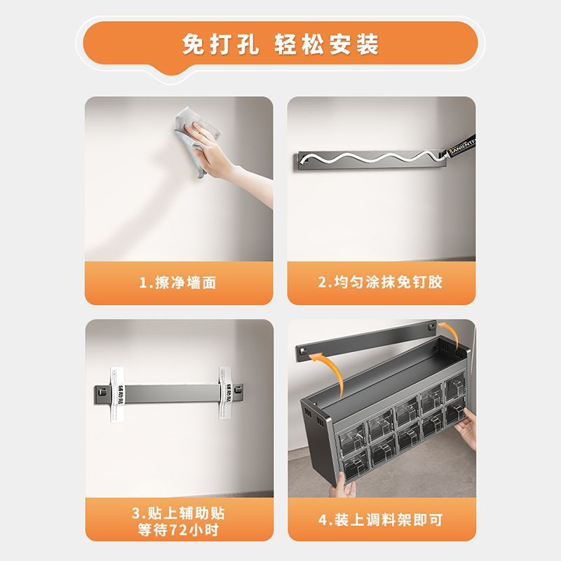 厨房调料品置物架多功能不锈钢壁挂式调味料盒罐组合套装高端家用