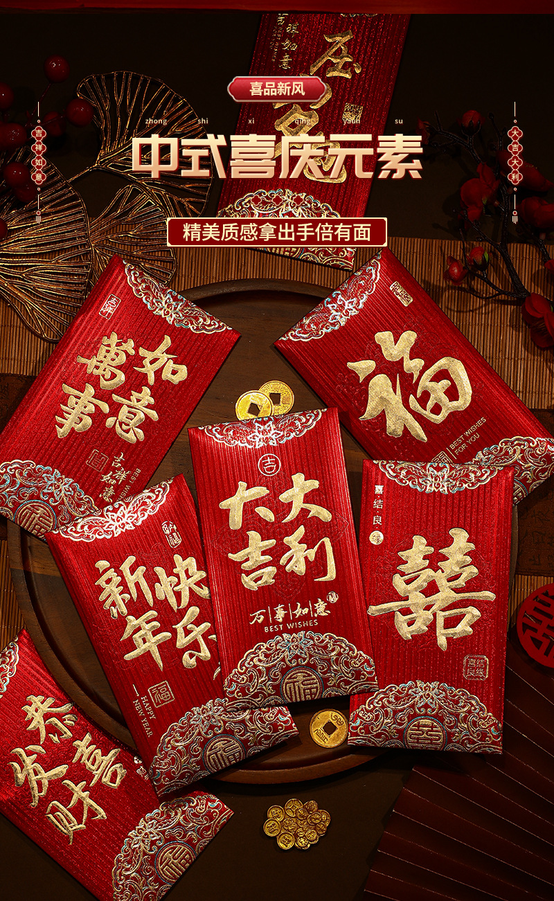 新款磨砂婚庆红包喜字利是封新年春节红包袋创意回礼通用红包批发