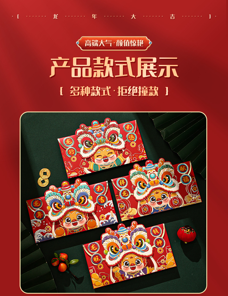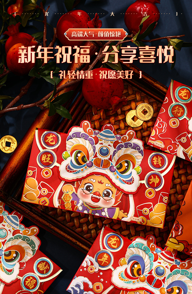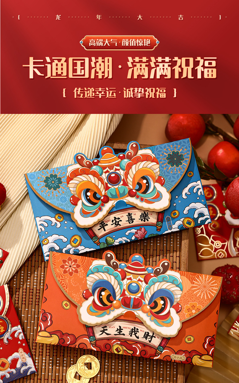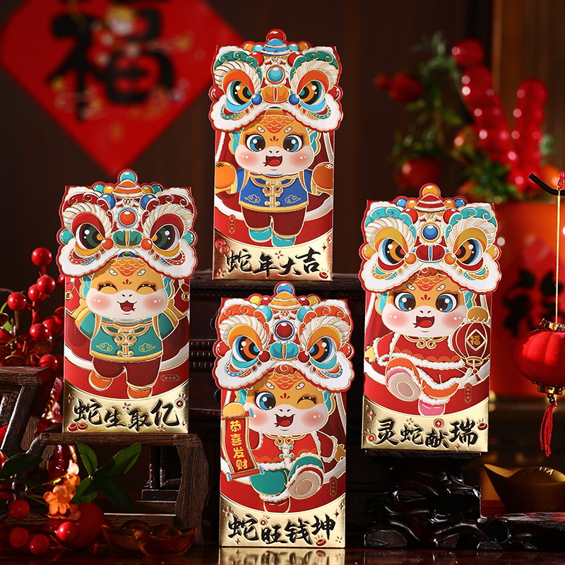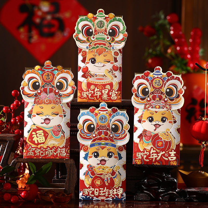蛇年红包国潮醒狮个性卡通烫金红包袋创意春节利是封新年红包批发