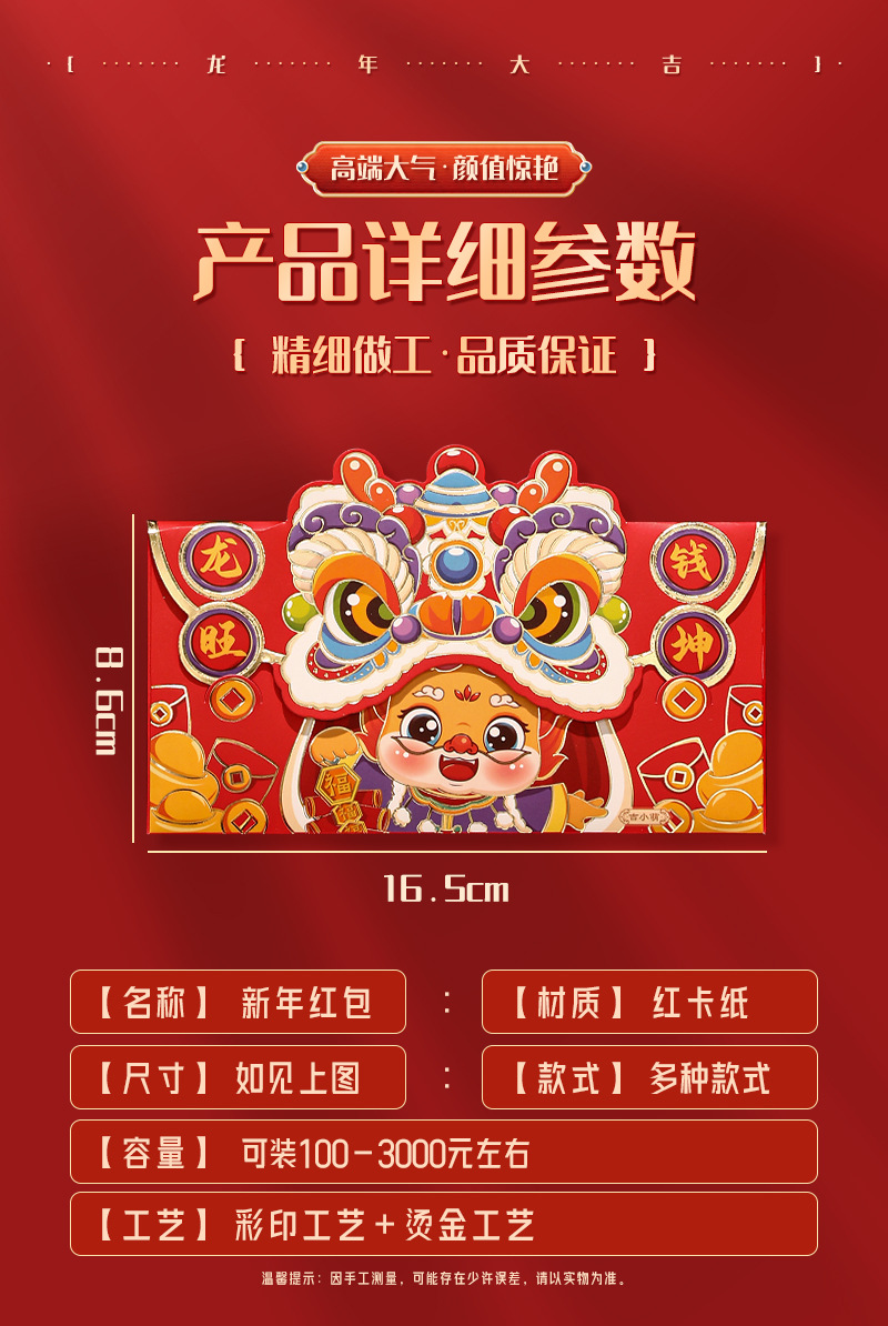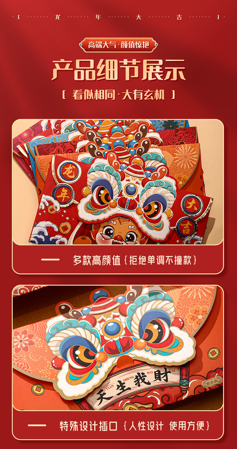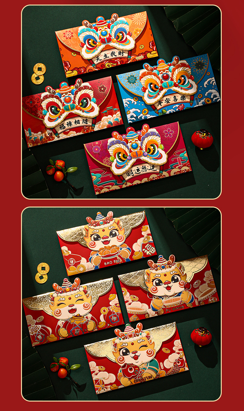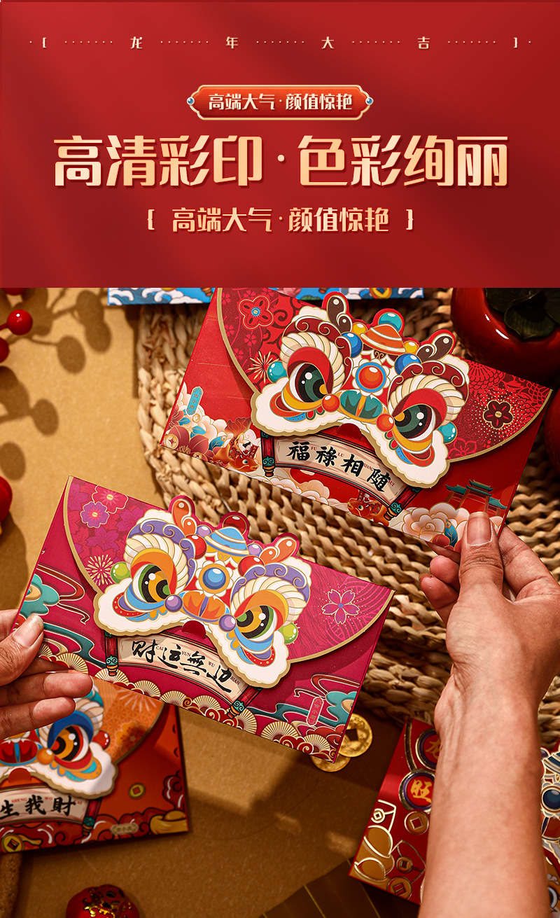 蛇年红包国潮醒狮个性卡通烫金红包袋创意春节利是封新年红包批发