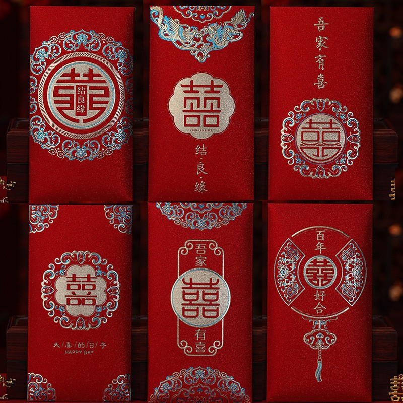 婚礼红包创意结婚喜字烫金红包万元金葱红包利是封迷你红包批发