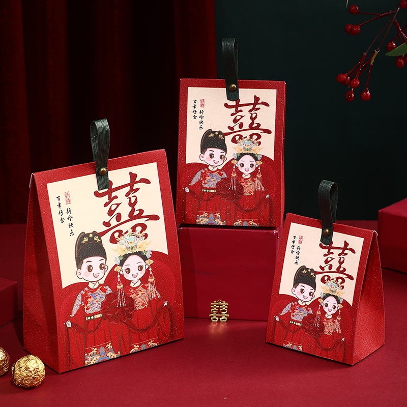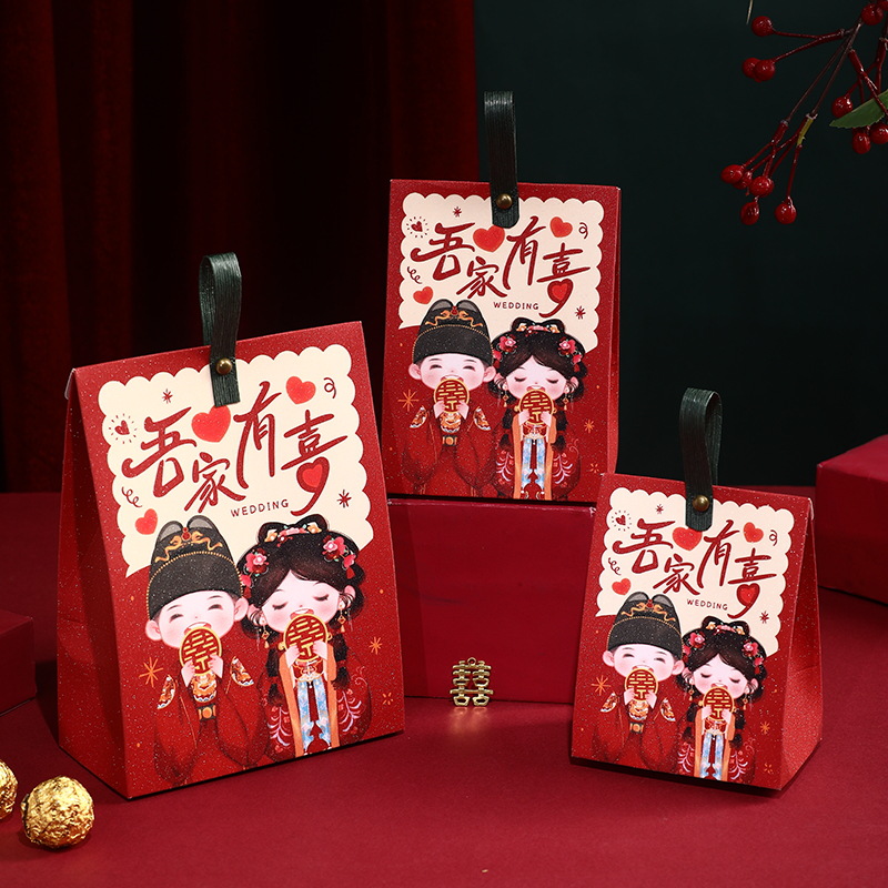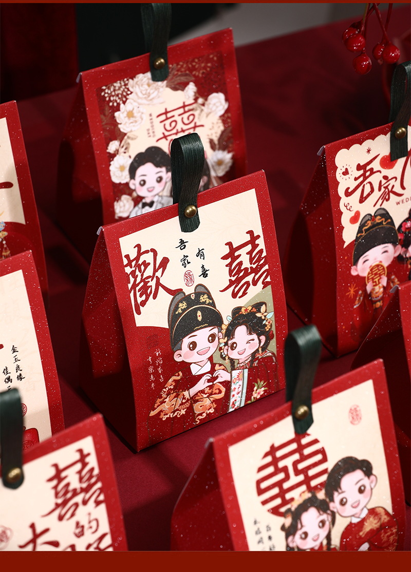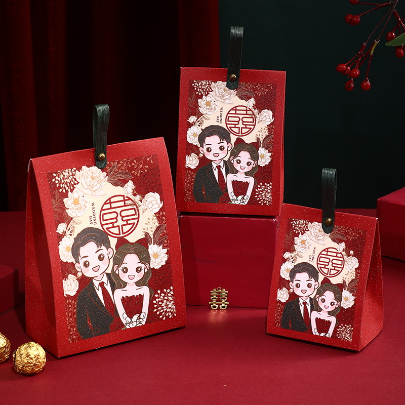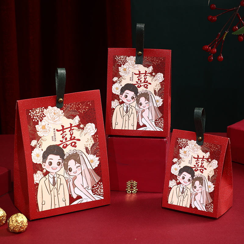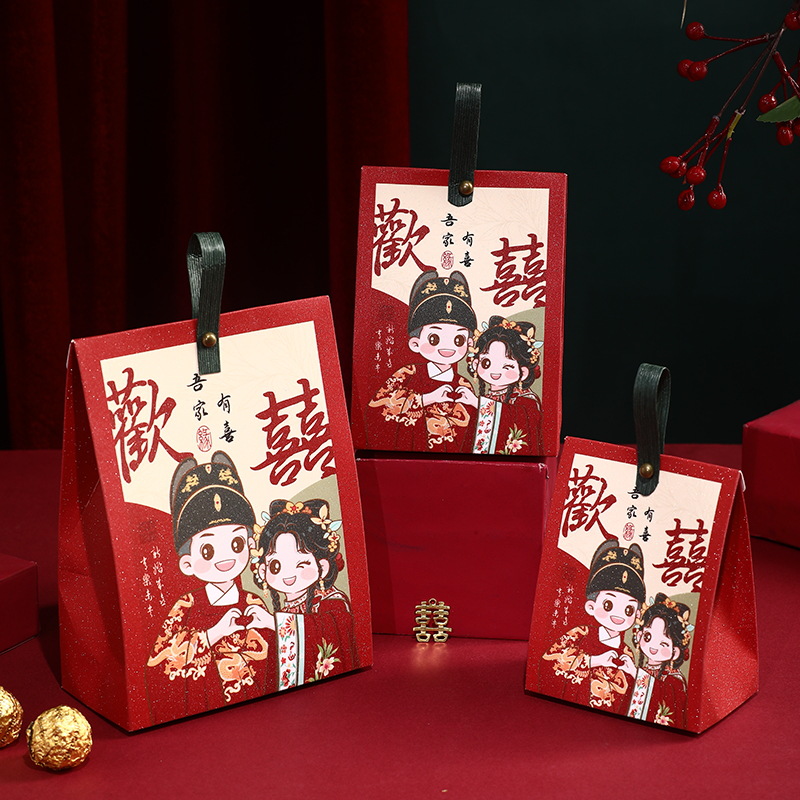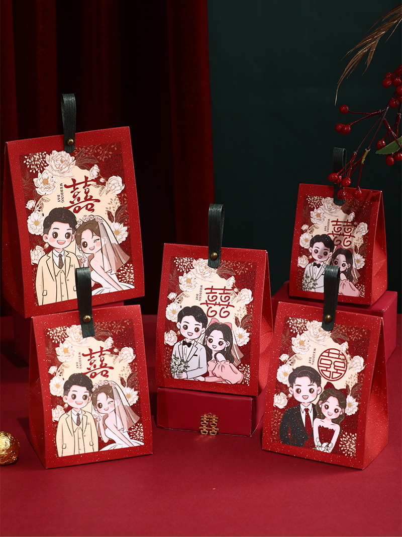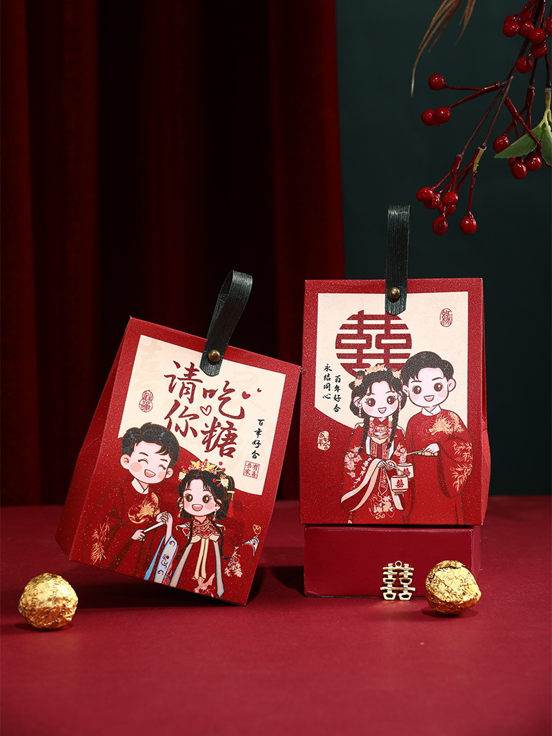 新款订婚结婚喜糖盒子婚礼卡通手提喜糖盒高级感喜糖袋糖果礼盒