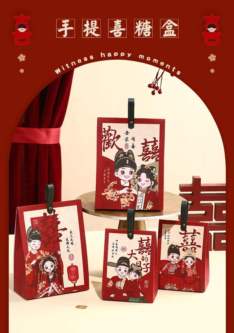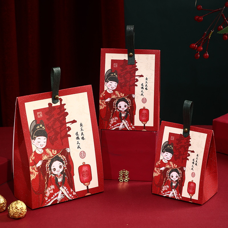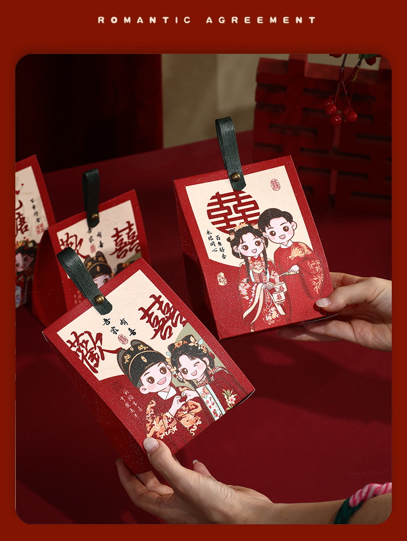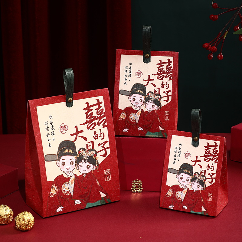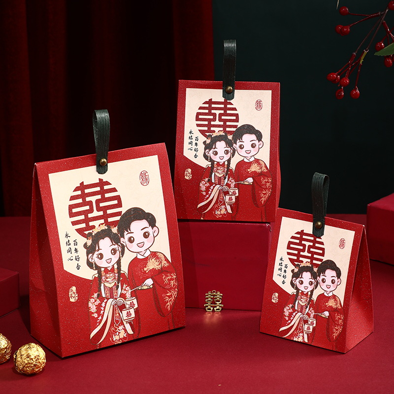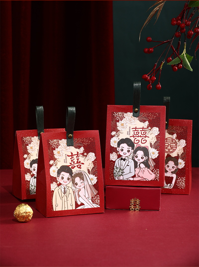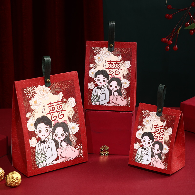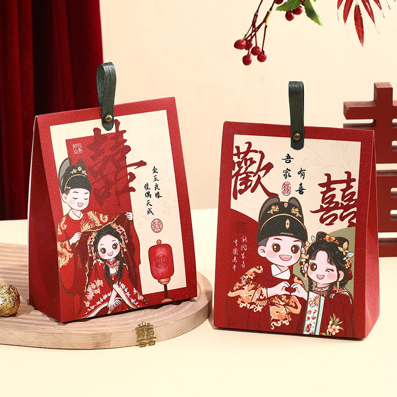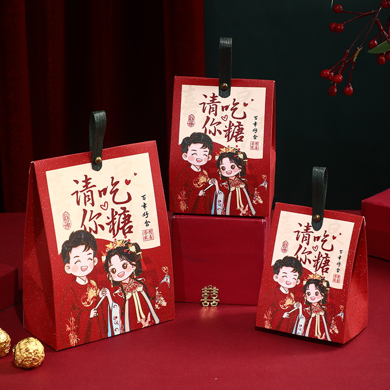 新款订婚结婚喜糖盒子婚礼卡通手提喜糖盒高级感喜糖袋糖果礼盒