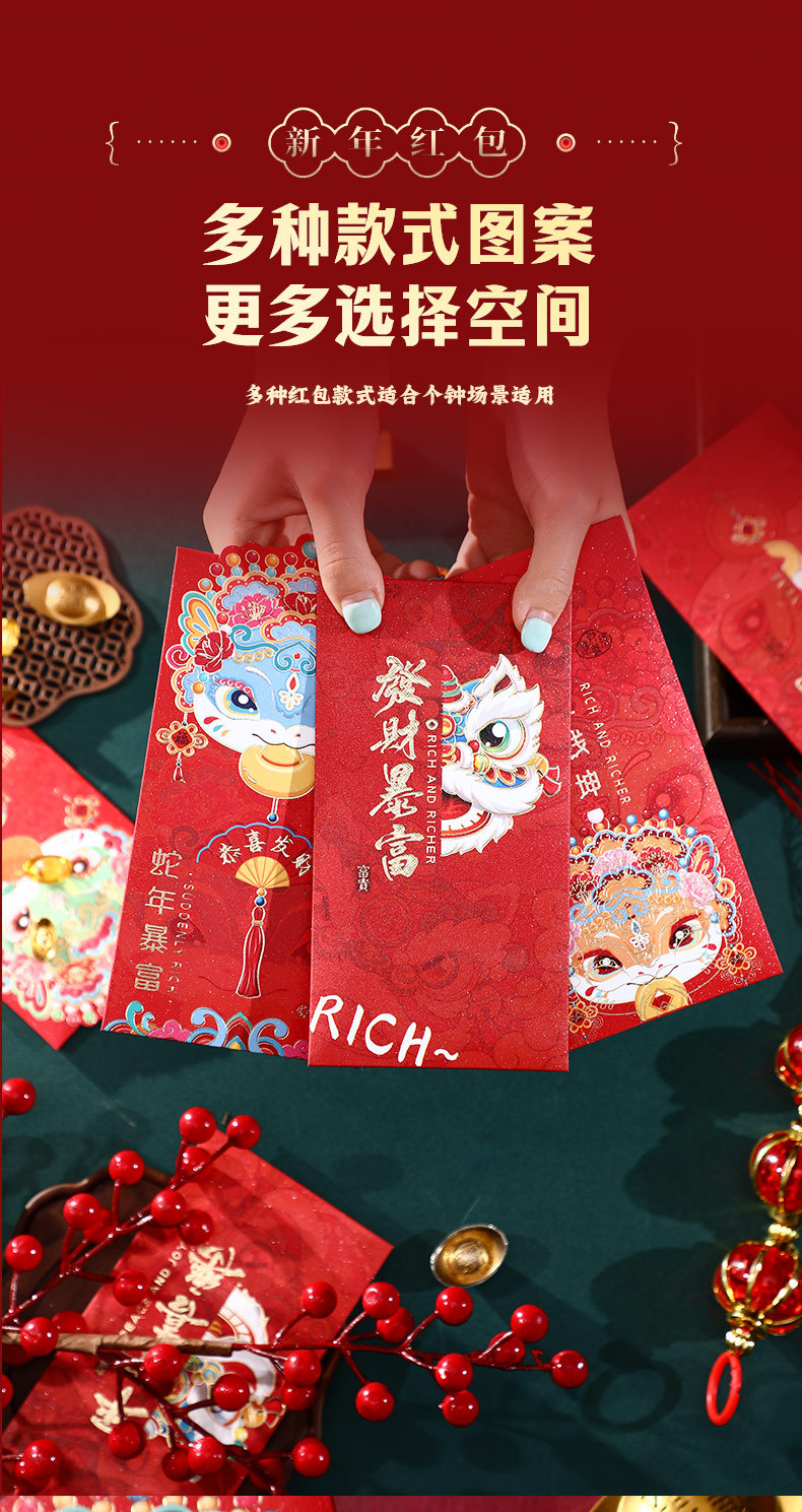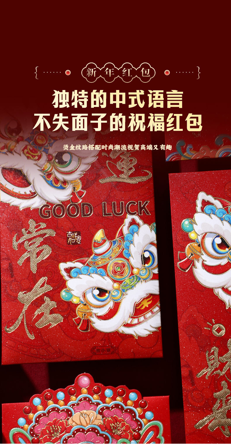 醒狮新年红包爆款卡通生肖利是封春节创意拜年利是封压岁红包批发