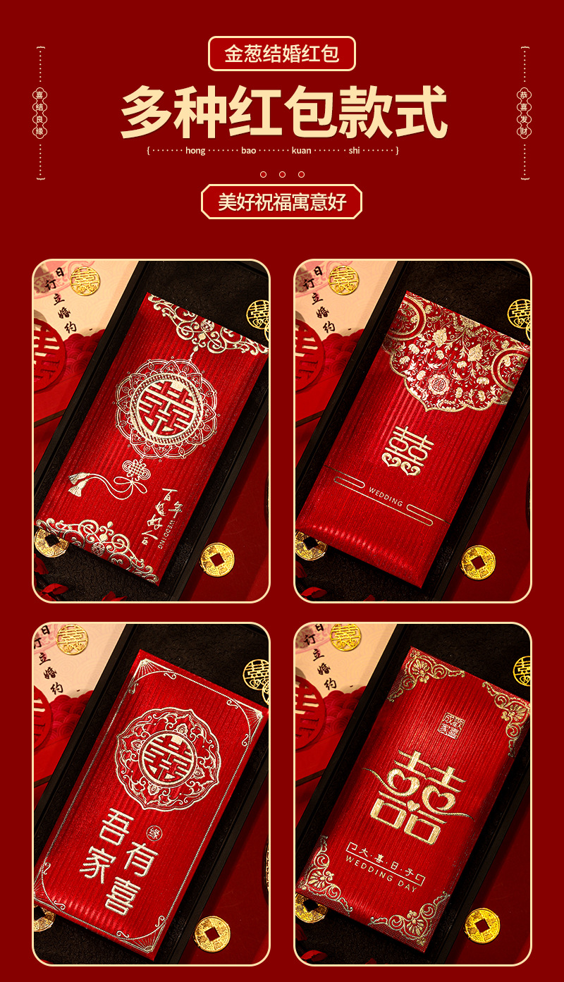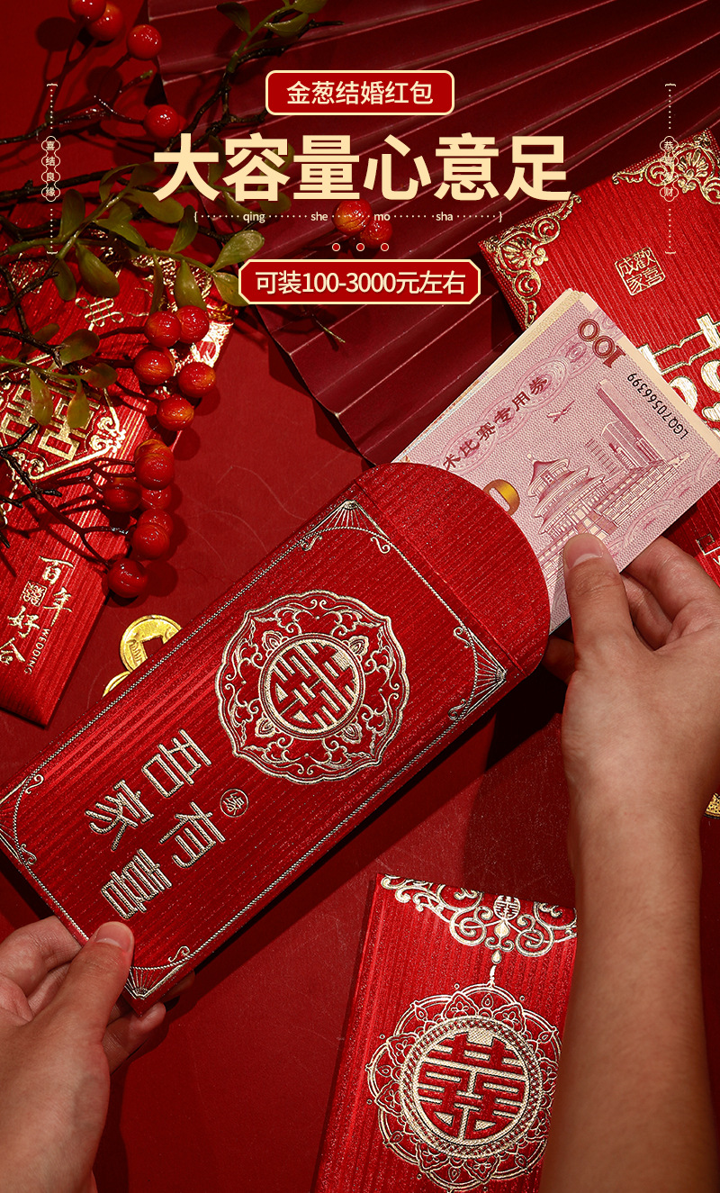中式结婚红包个性创意婚礼改口红包袋喜字千元利是封婚庆用品批发