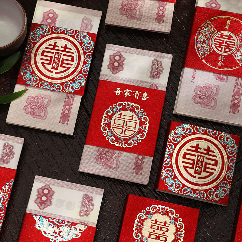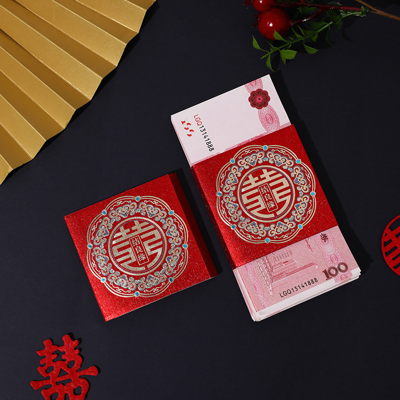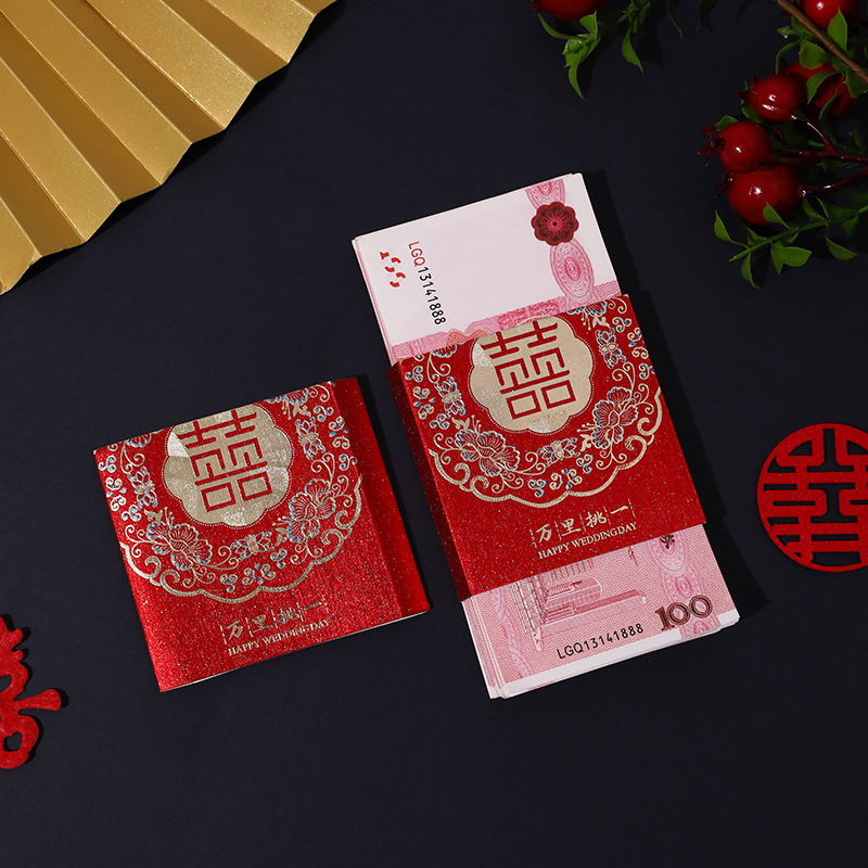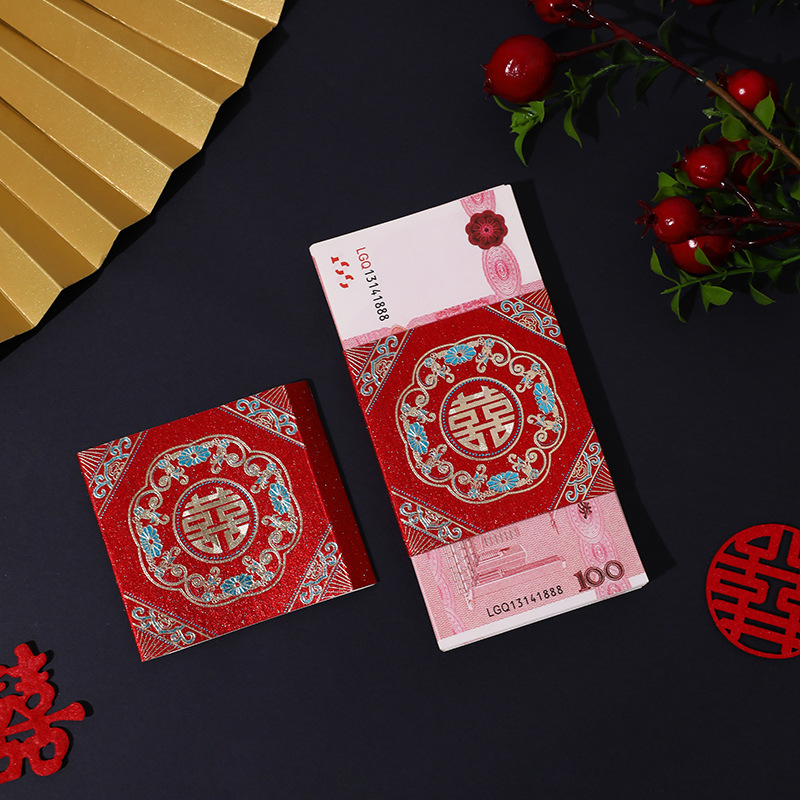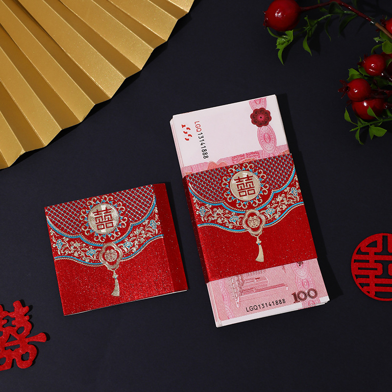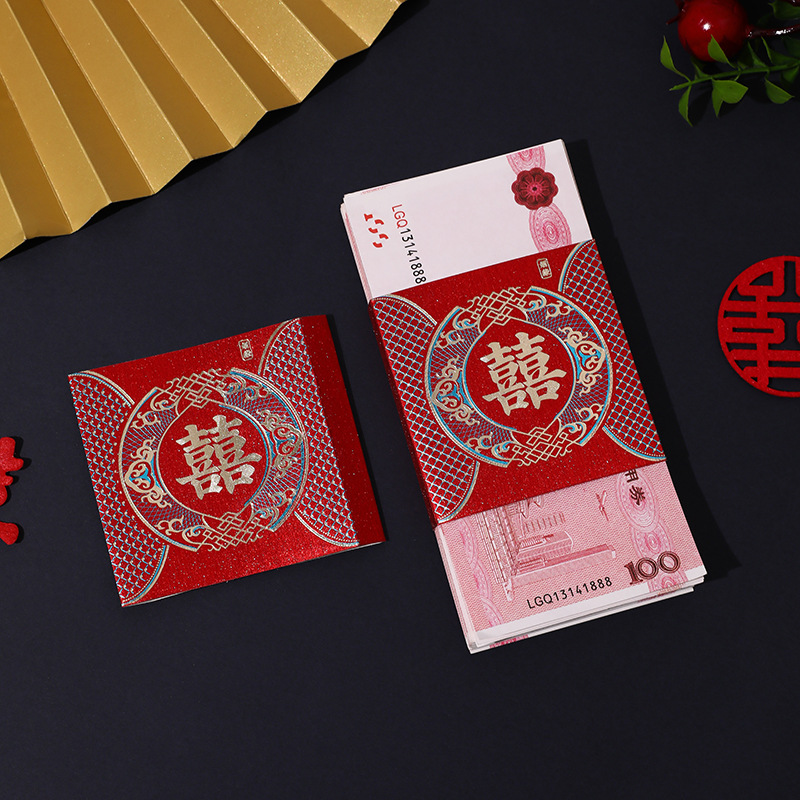 泓信万元结婚红包利是封彩礼聘礼捆钱卡套创意婚礼喜字钱套批发