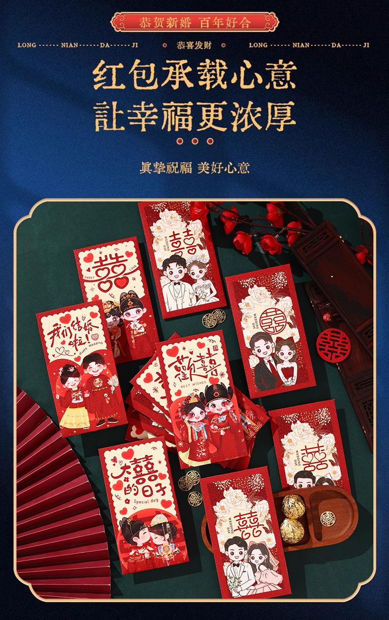 中式结婚红包西式婚礼婚庆用品新人改口结婚喜字红包接亲利是封