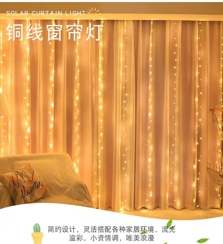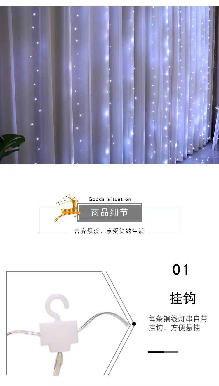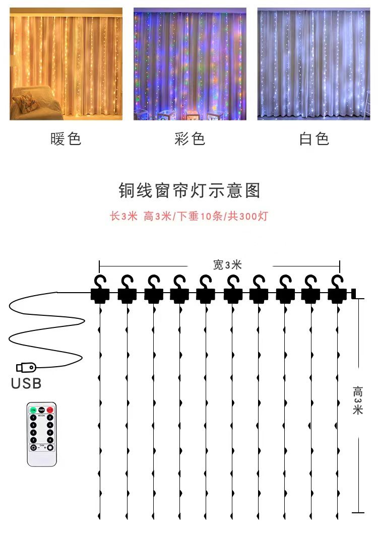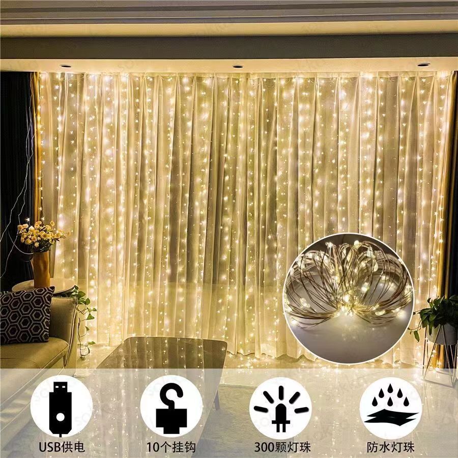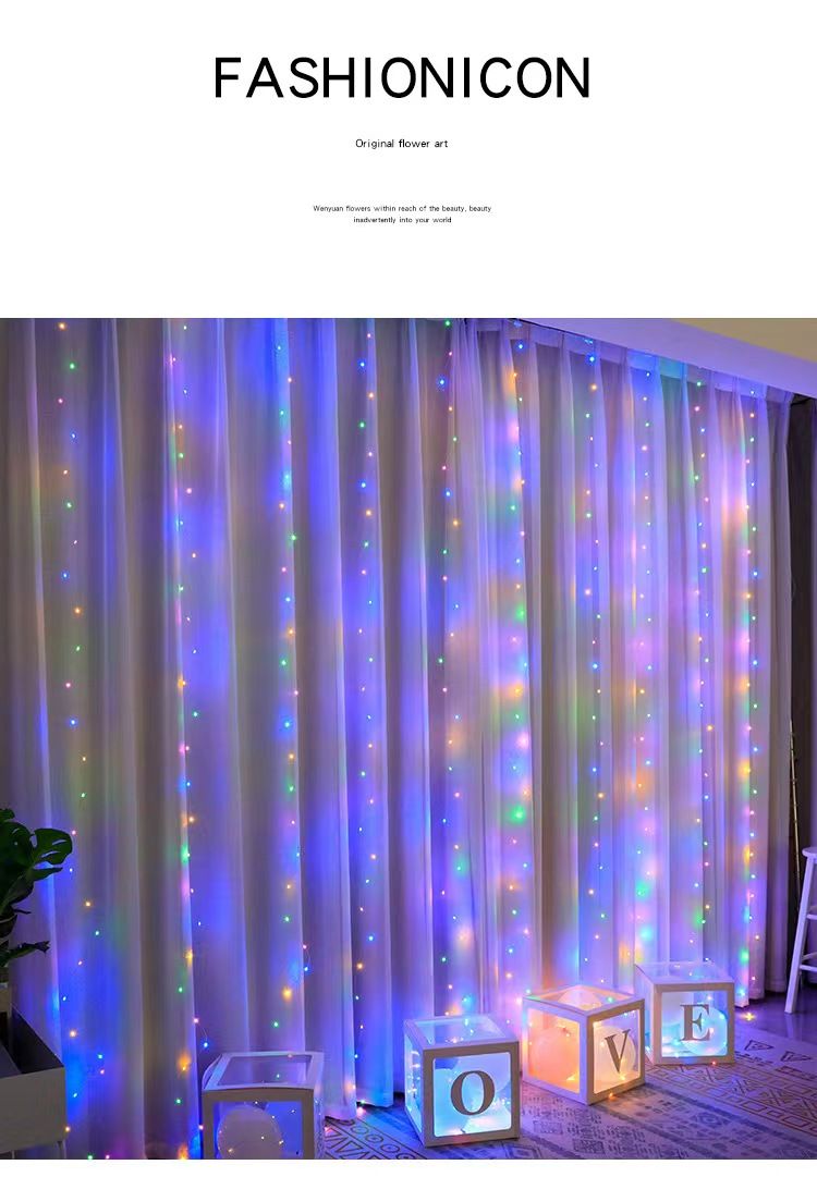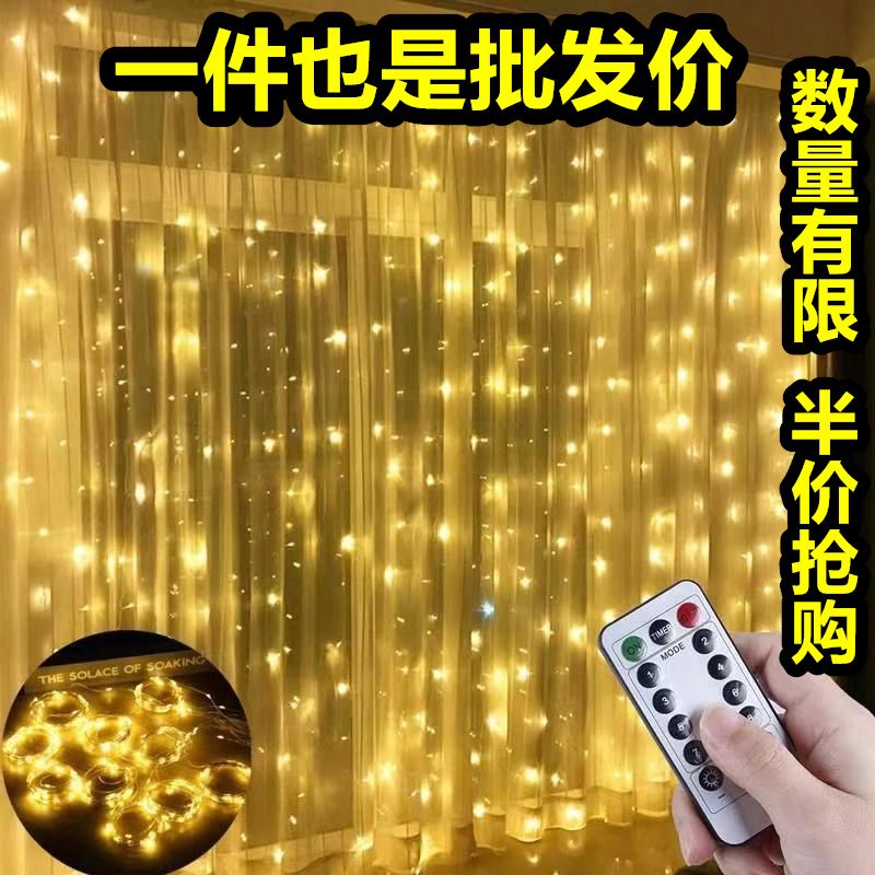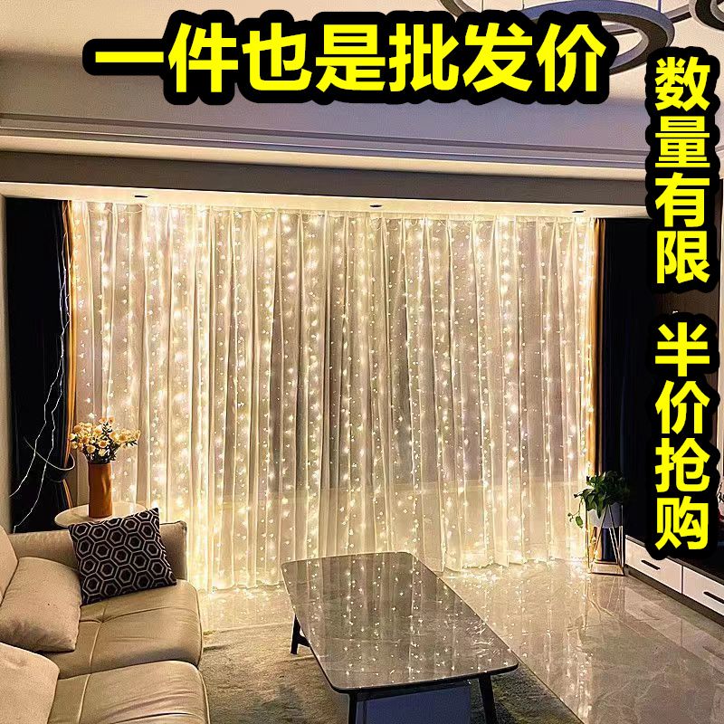 飘窗氛围灯卧室led满天星星灯网红遥控瀑布彩灯直播布置背景花环