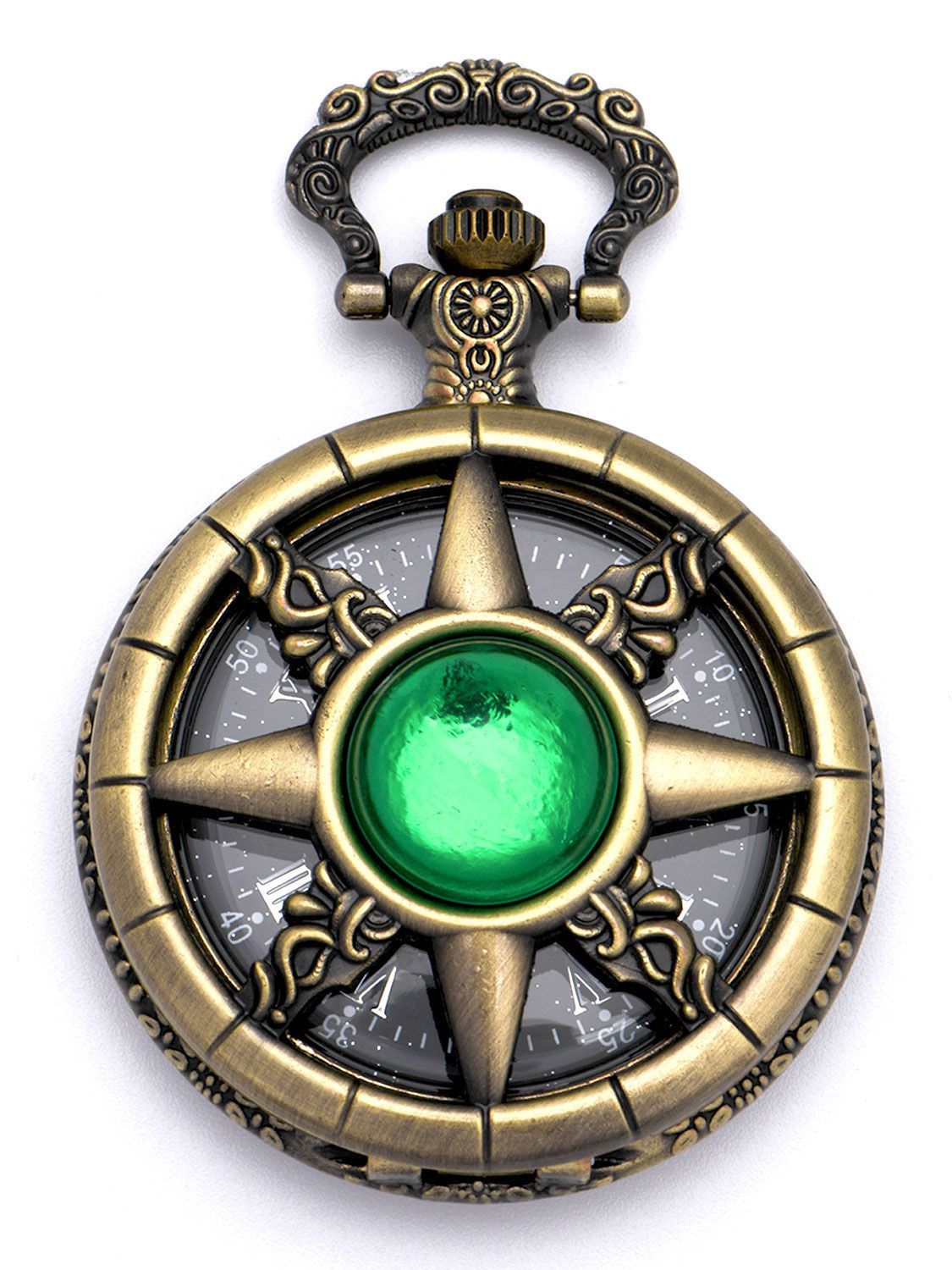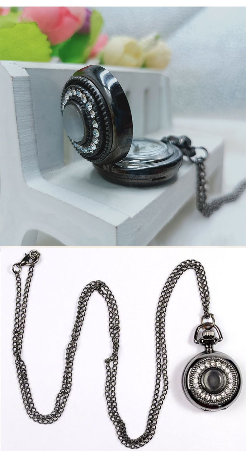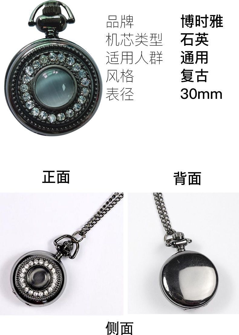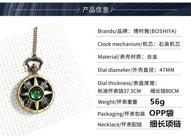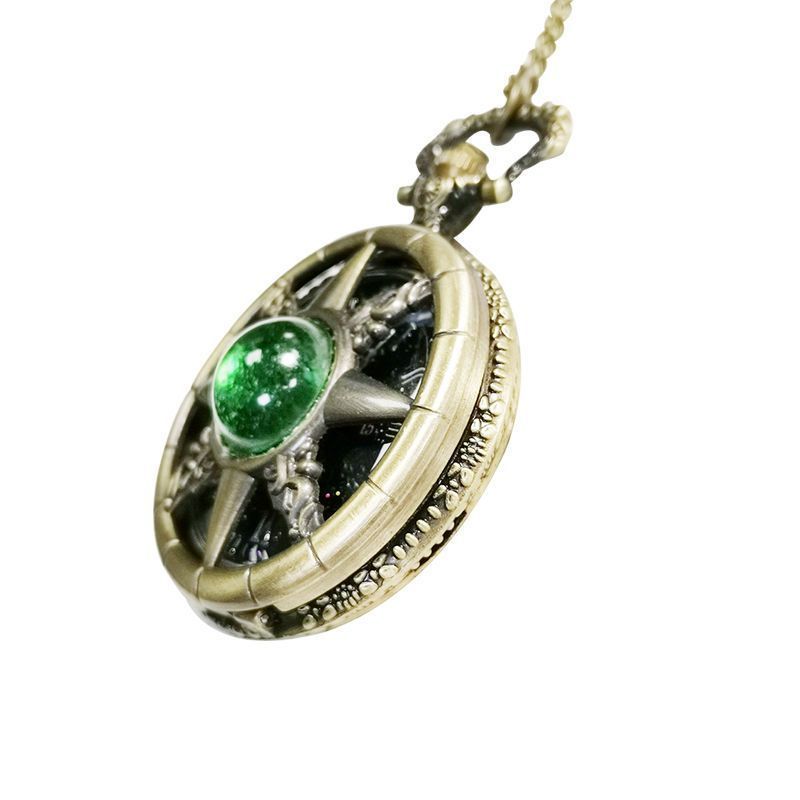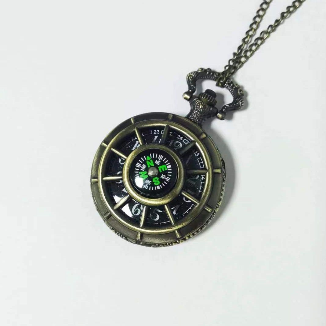 复古猫眼星空字面船舵镂空翻盖指南针怀表石英项链挂表男女生礼物