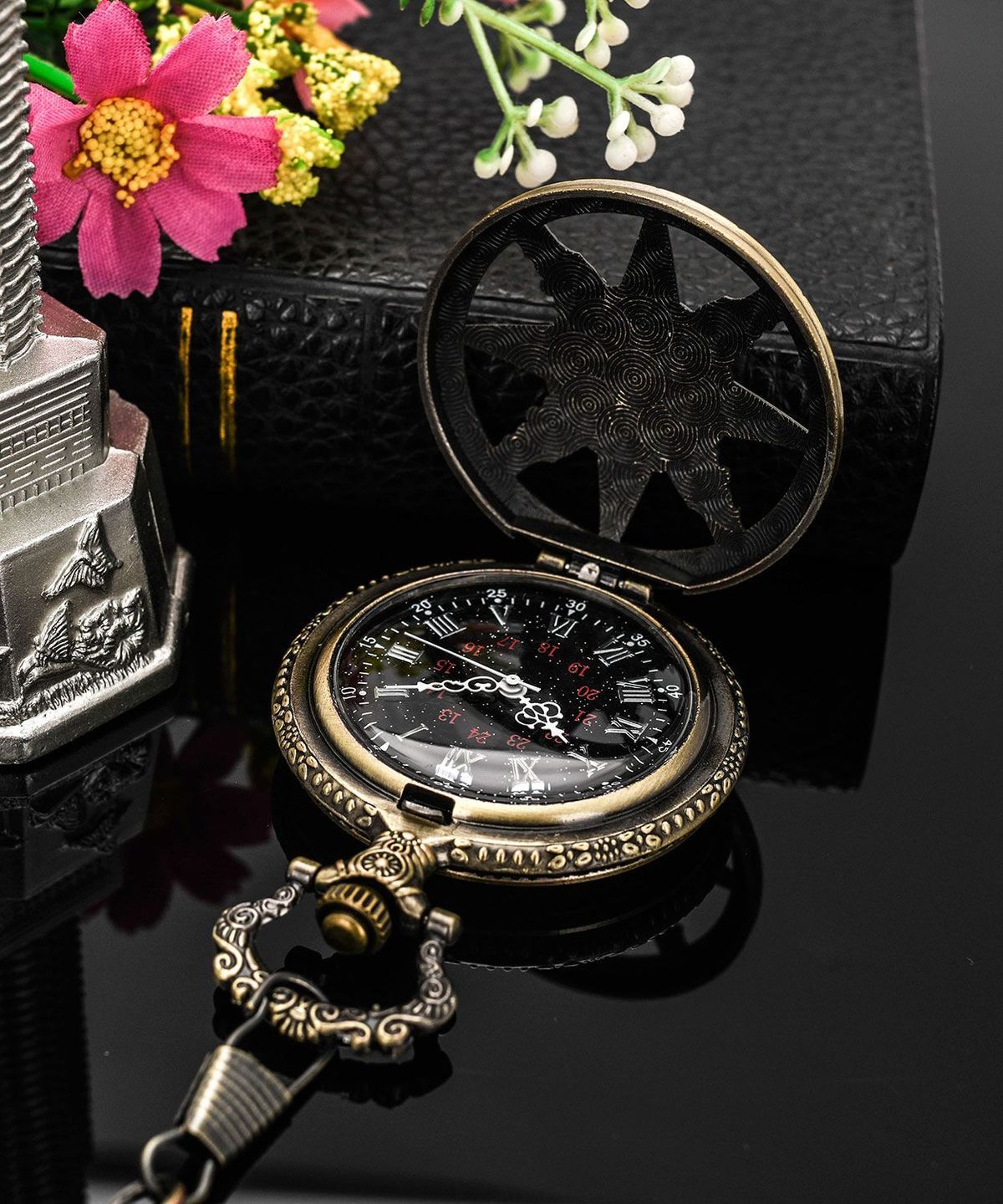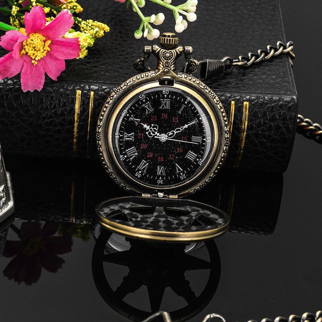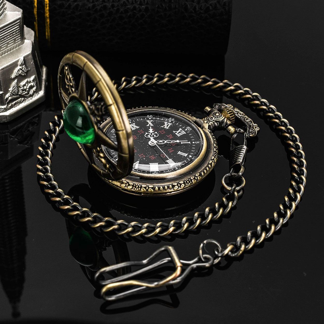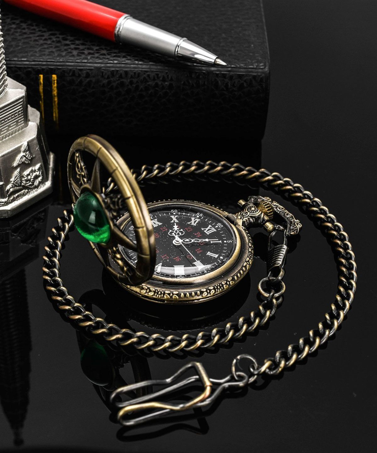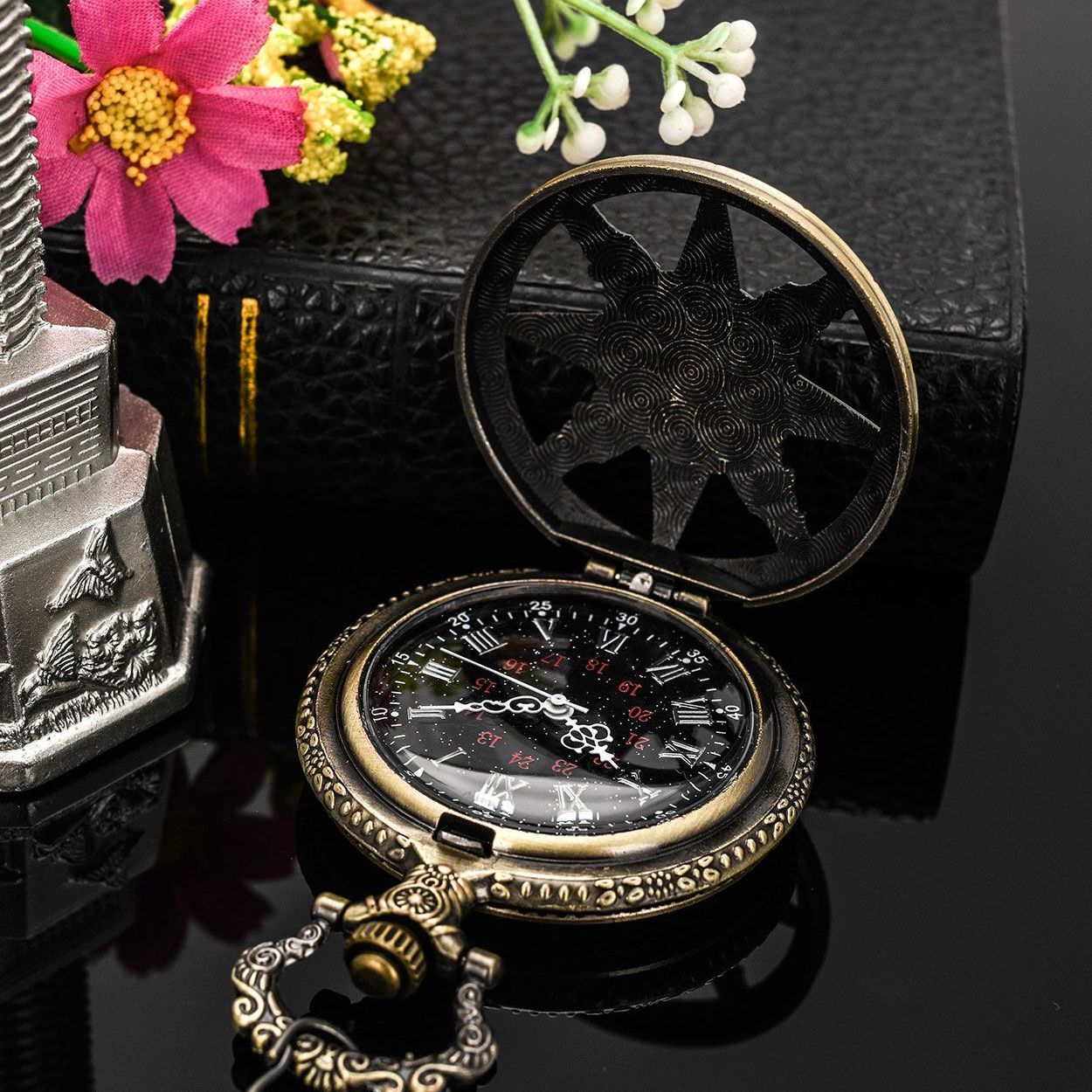 复古猫眼星空字面船舵镂空翻盖指南针怀表石英项链挂表男女生礼物
