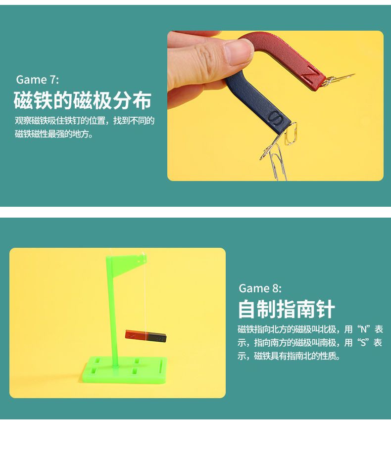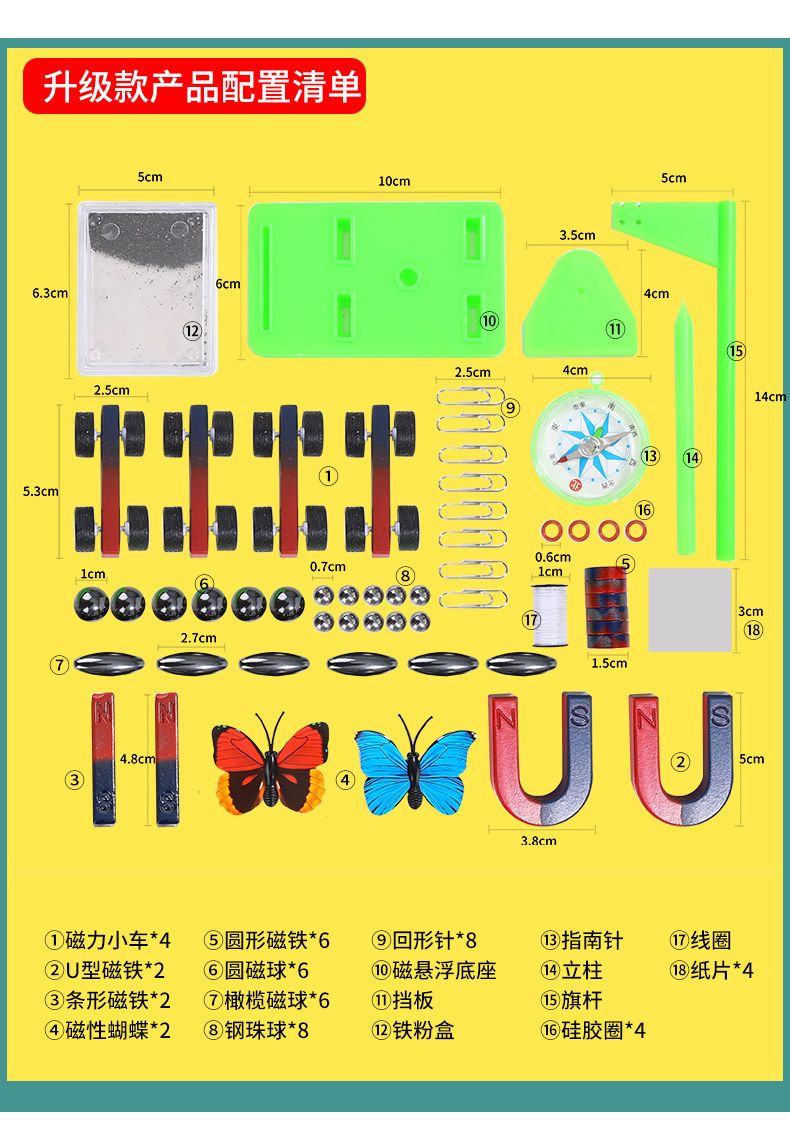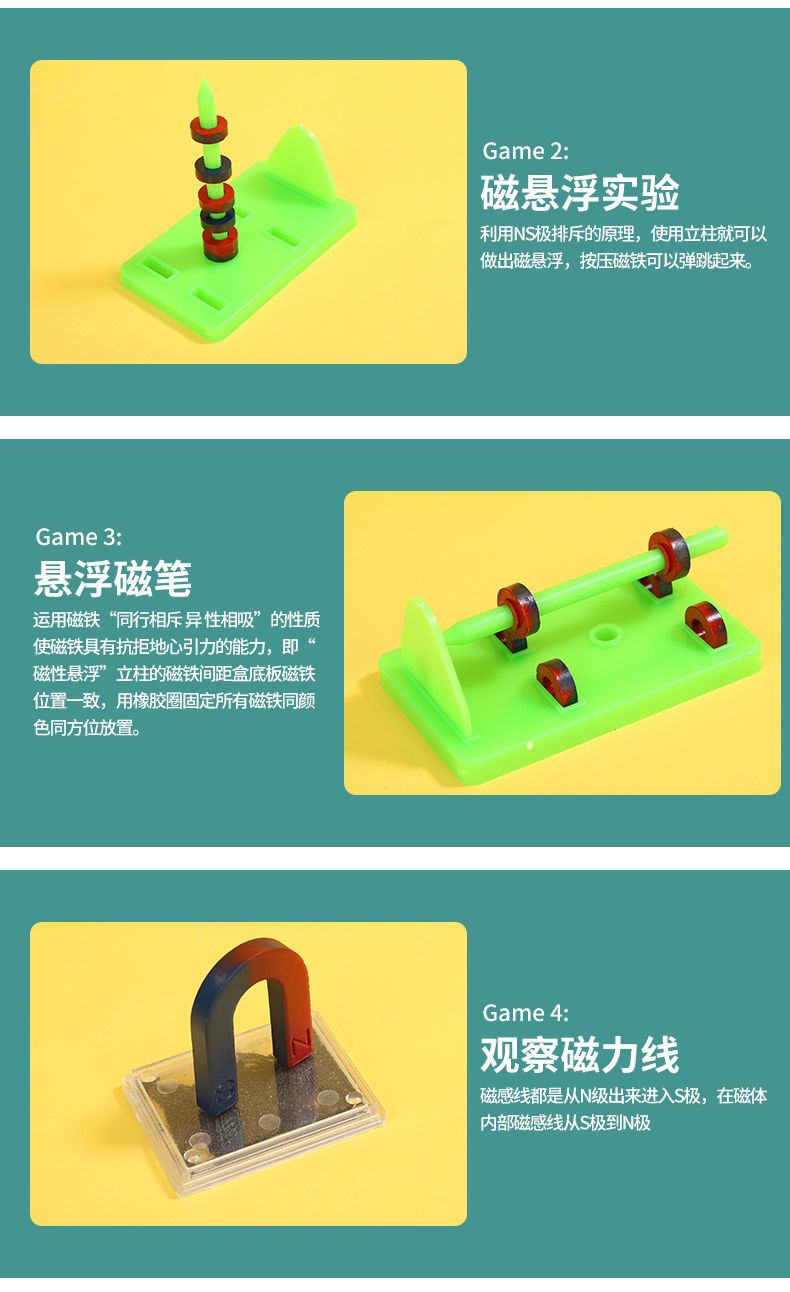 小学二年级科学实验磁铁套装铁粉盒磁悬浮吸铁石磁力玩具磁力小车
