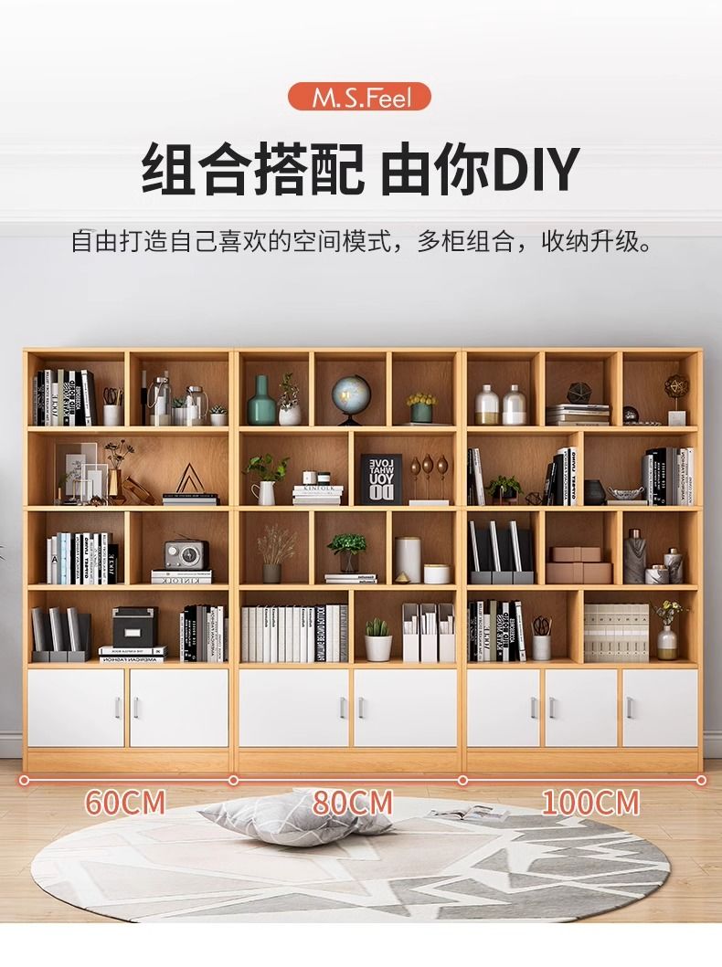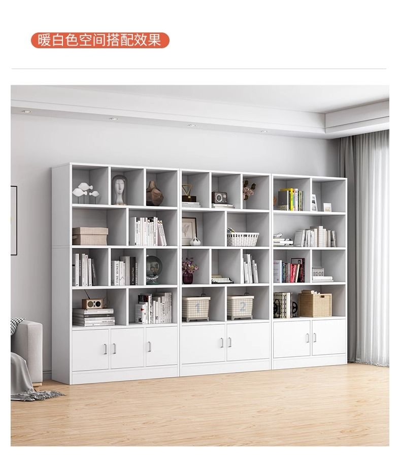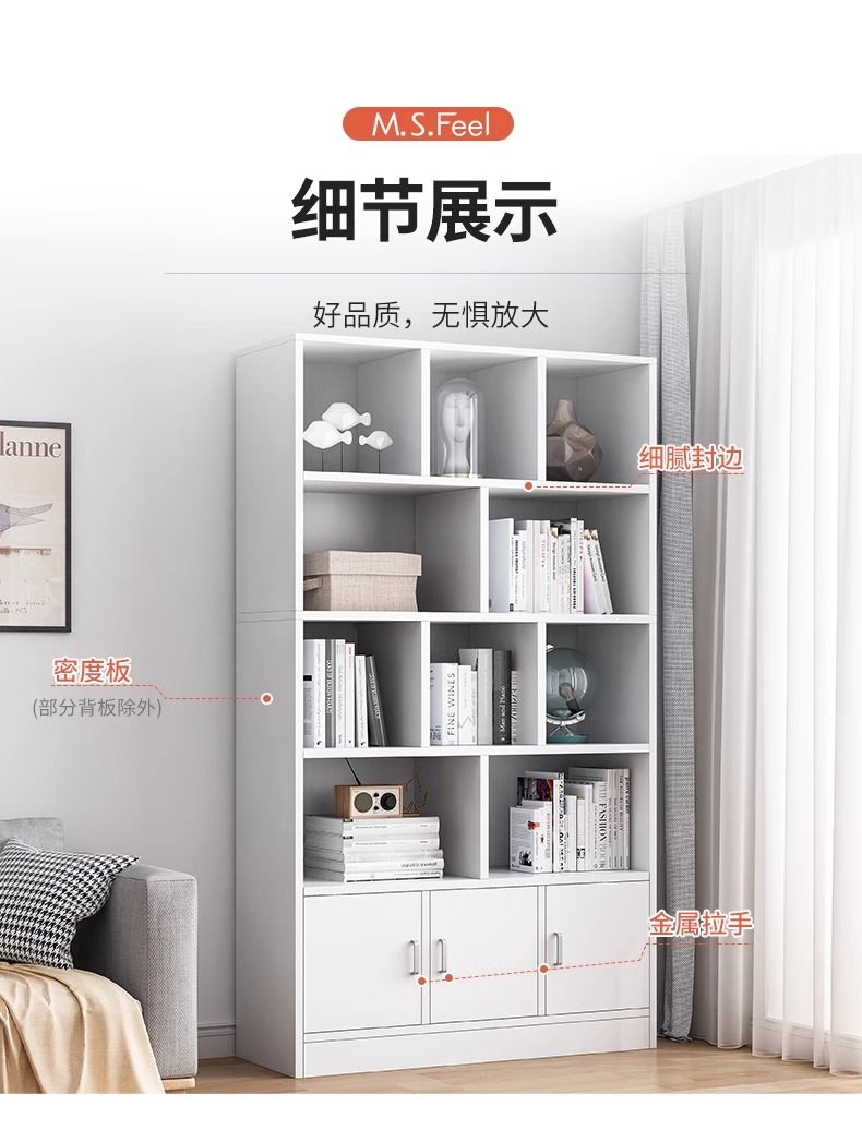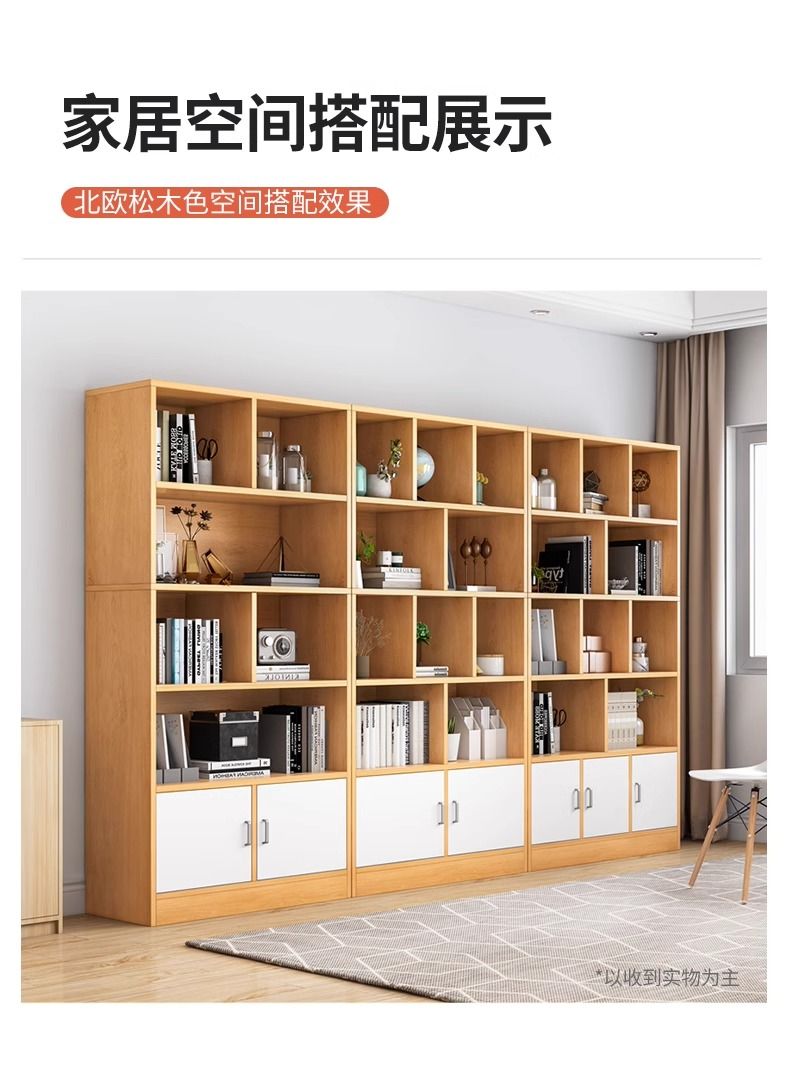 简易书架落地靠墙客厅置物架分层收纳架储物柜子一体简约家用书柜