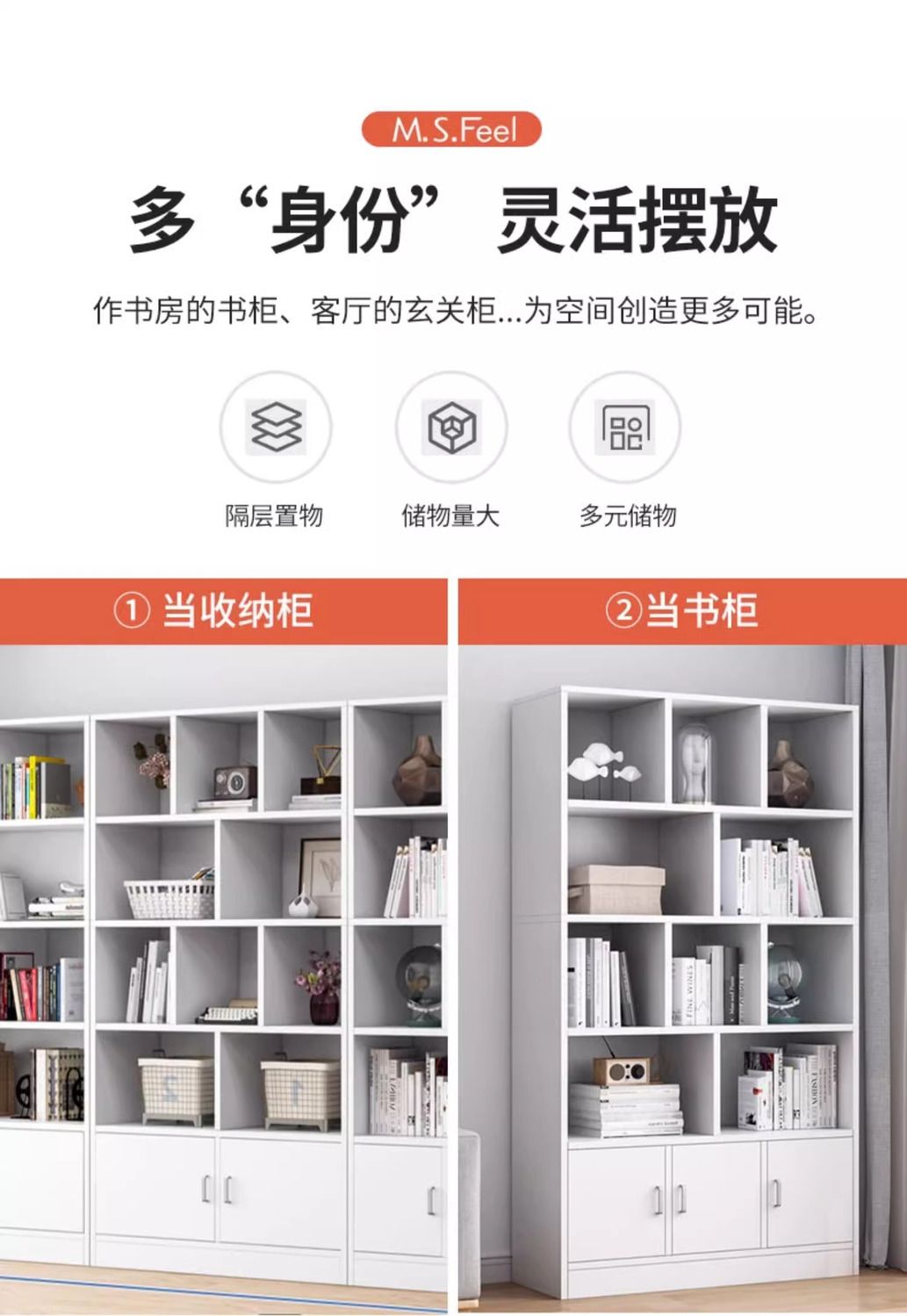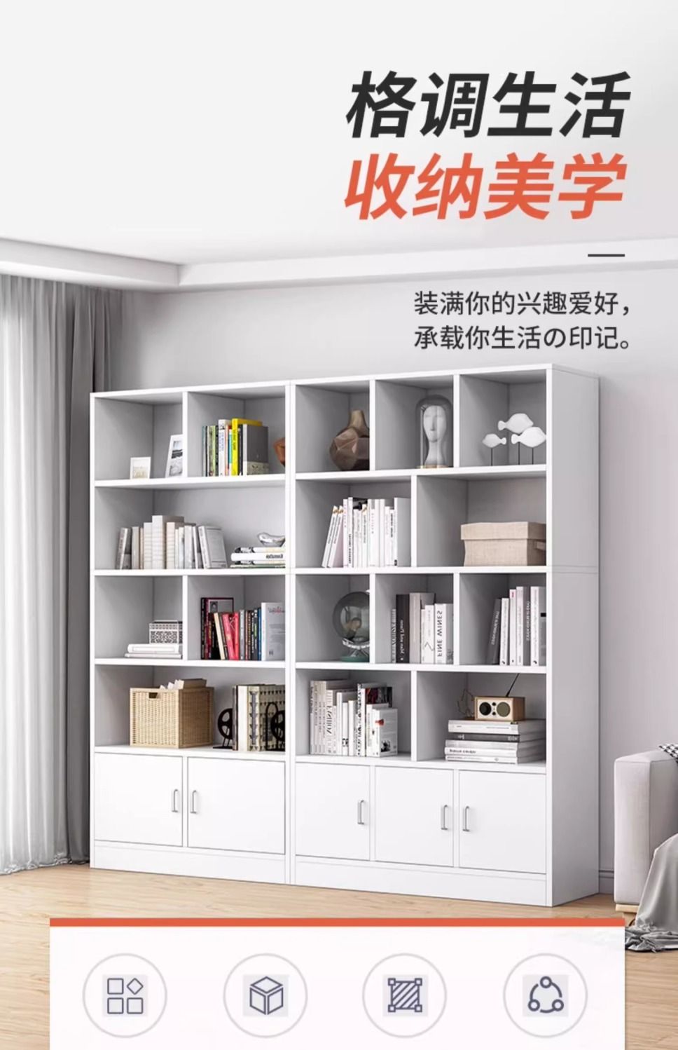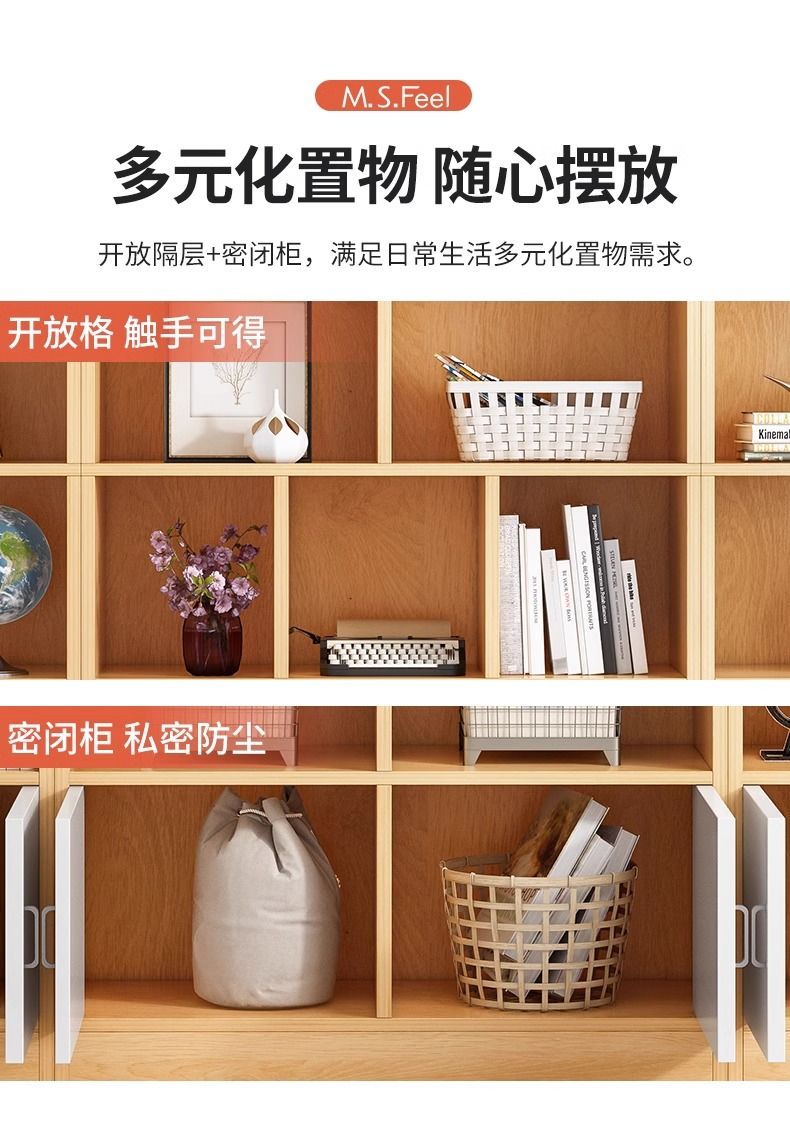 简易书架落地靠墙客厅置物架分层收纳架储物柜子一体简约家用书柜