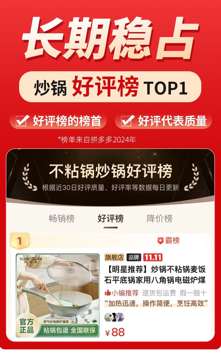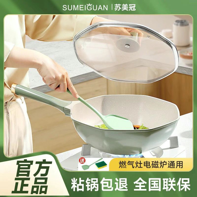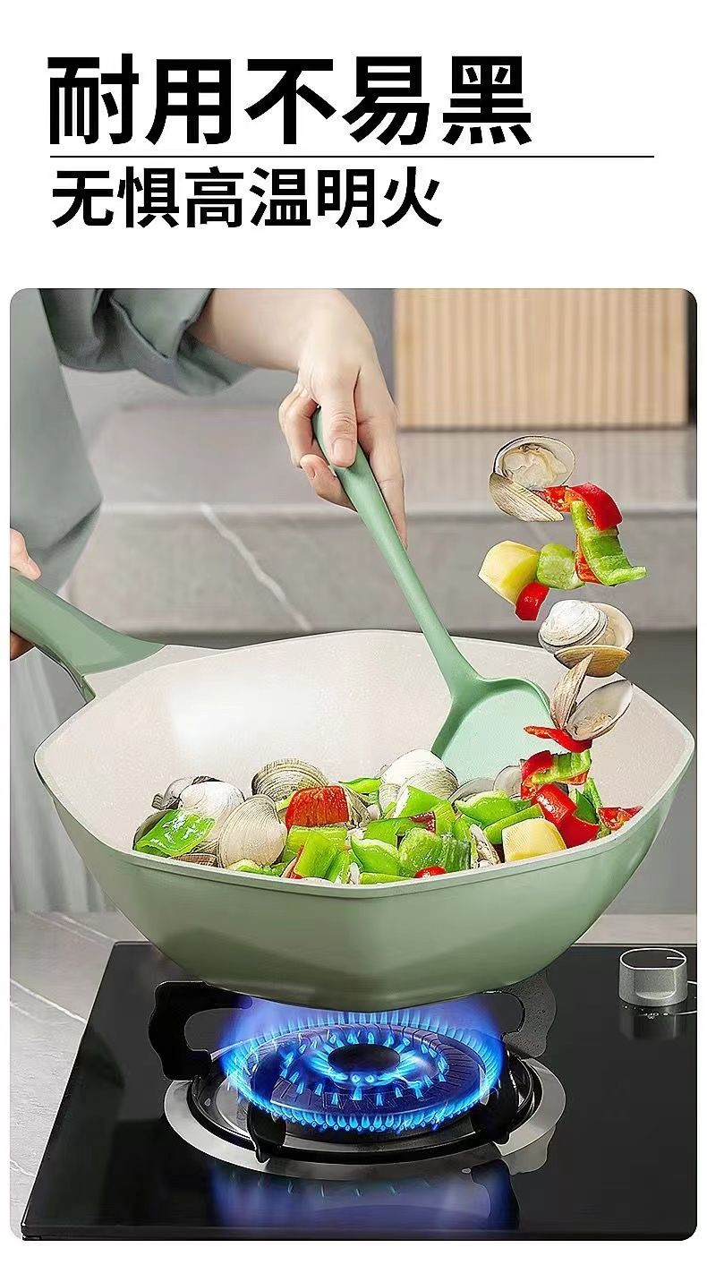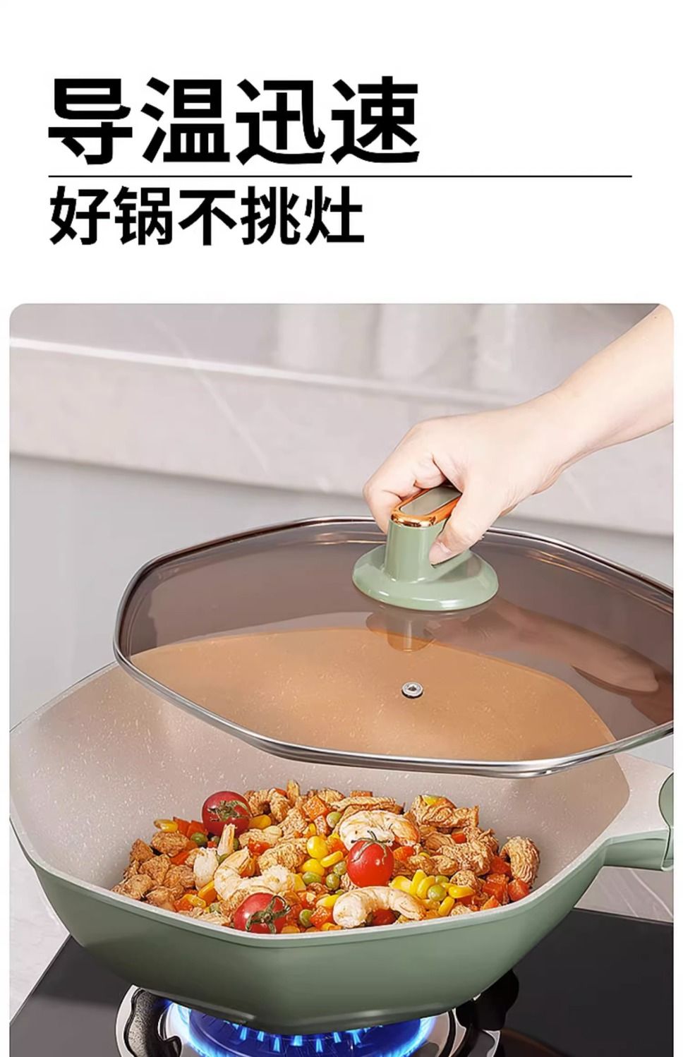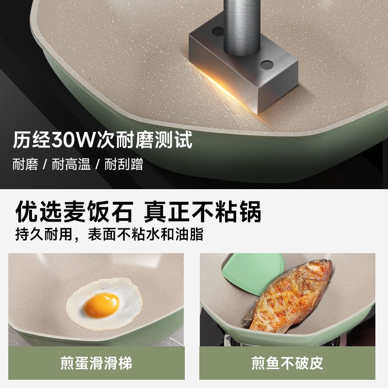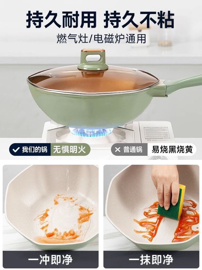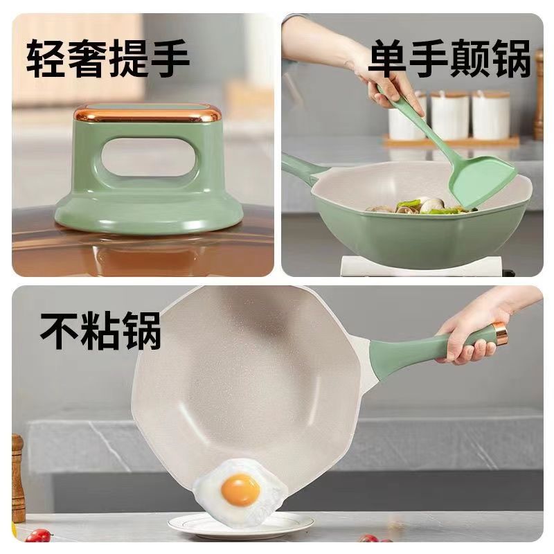 【明星推荐】炒锅不粘锅麦饭石平底锅家用八角锅电磁炉煤气灶通用