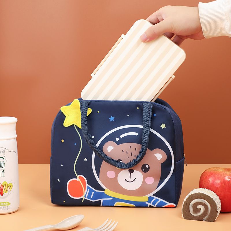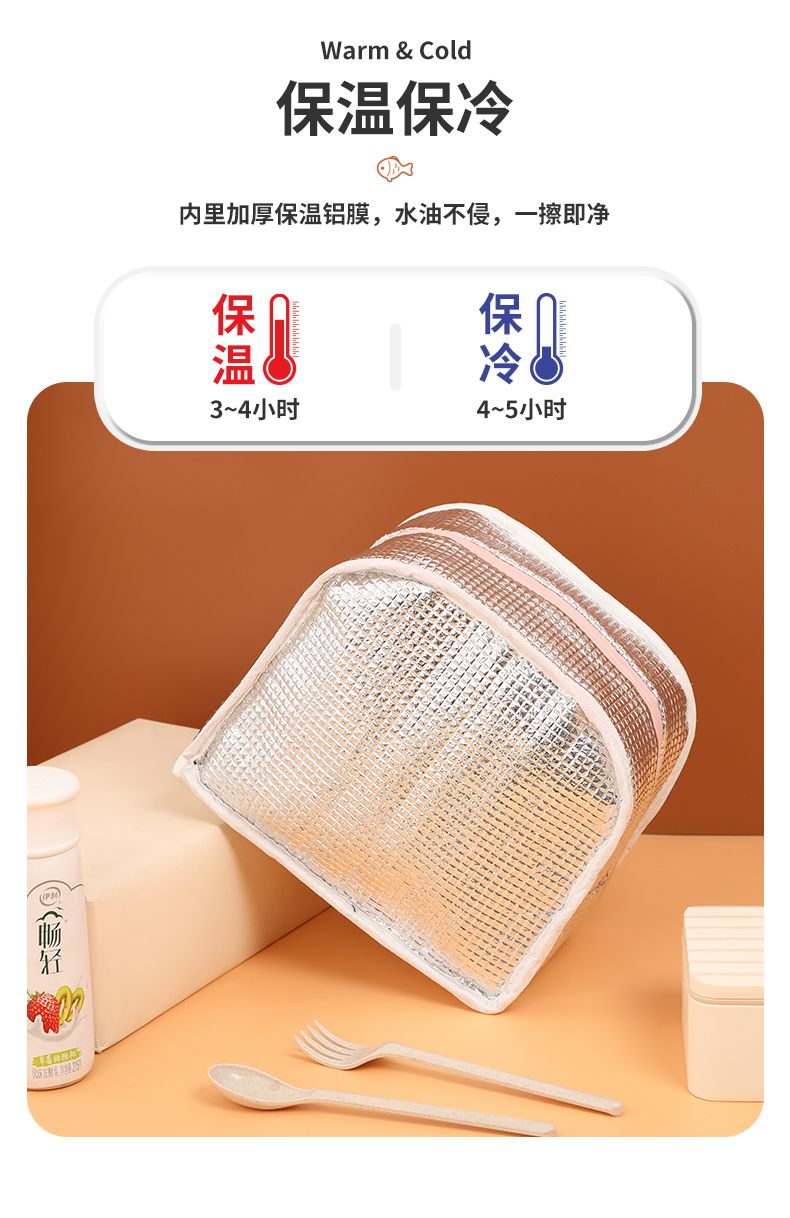 饭盒小学生纯色便当手提加厚铝箔学生保温上班族午餐带饭防水