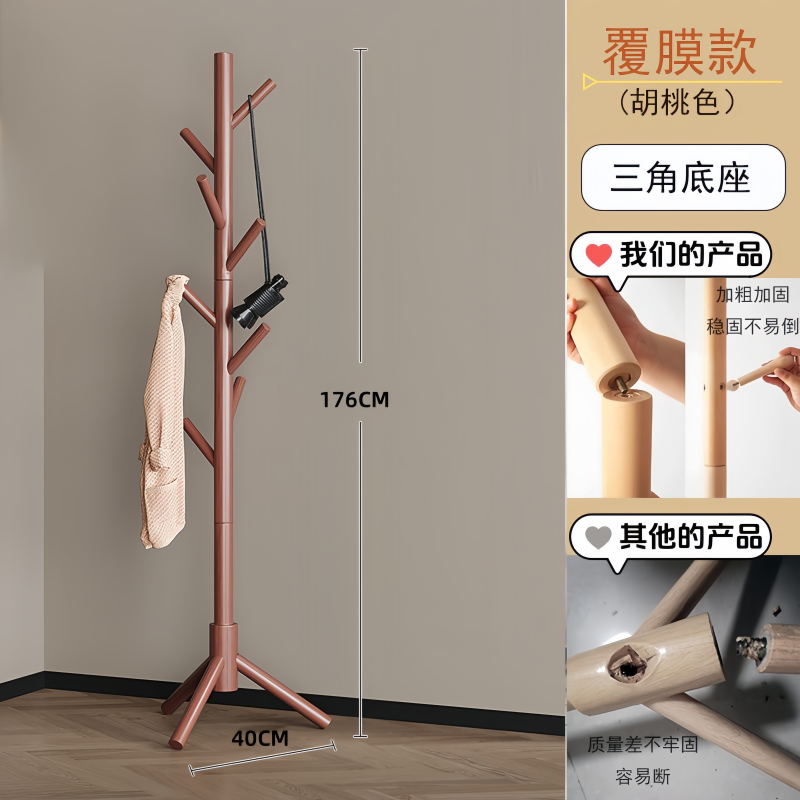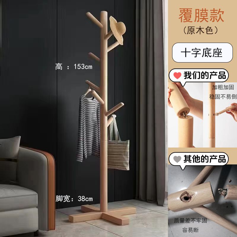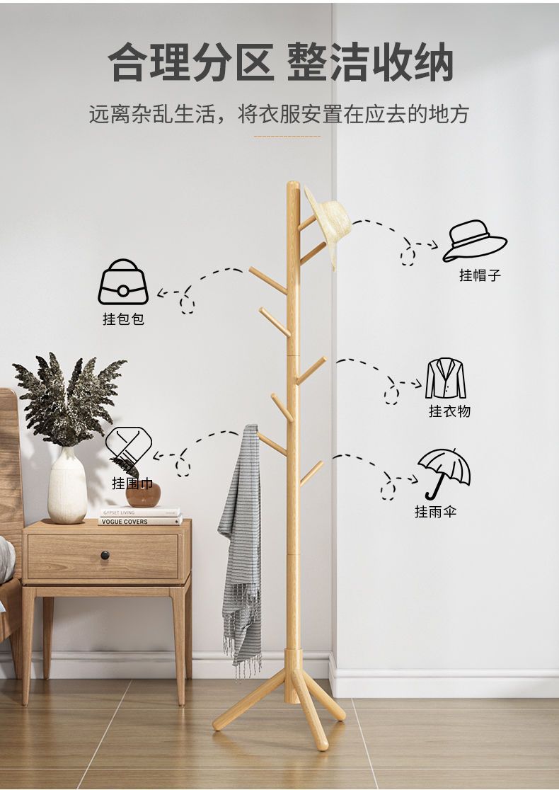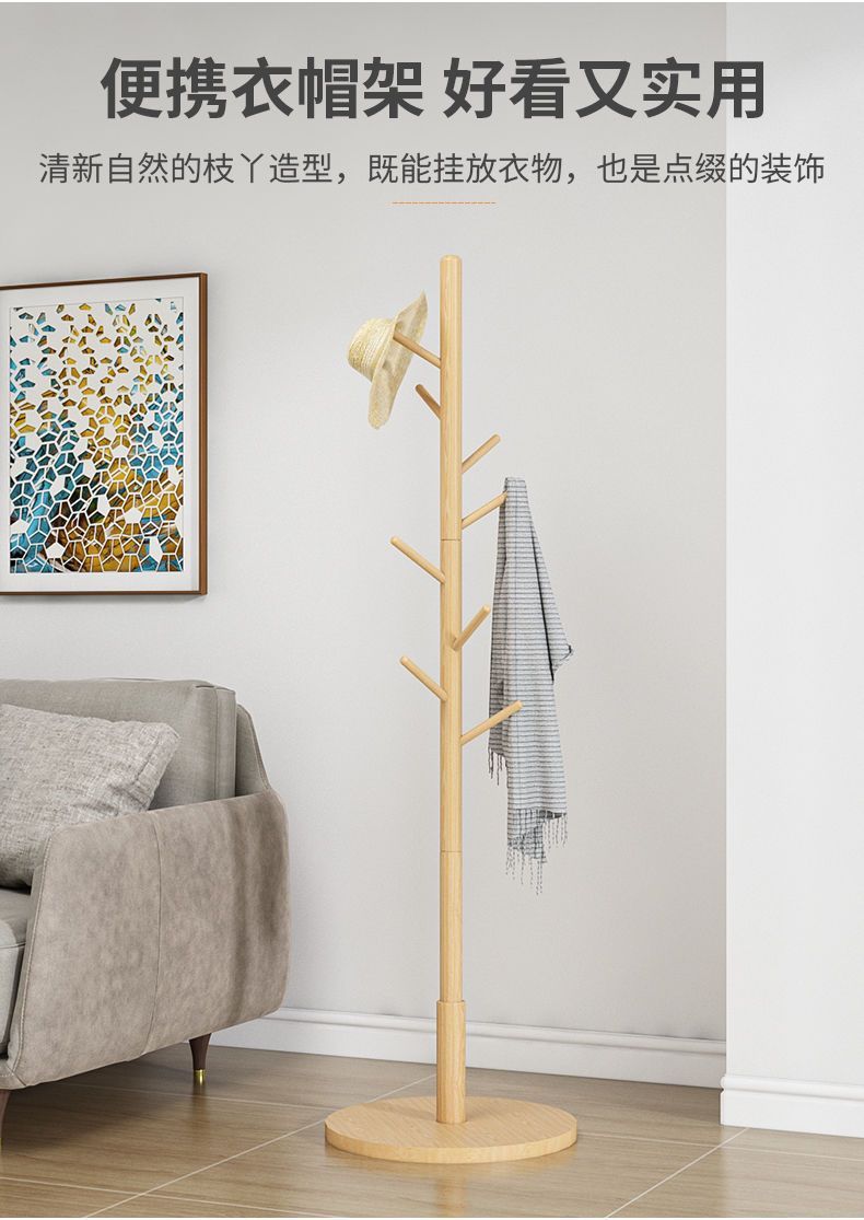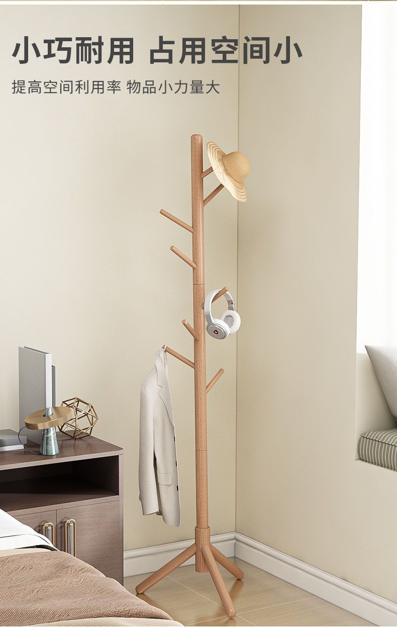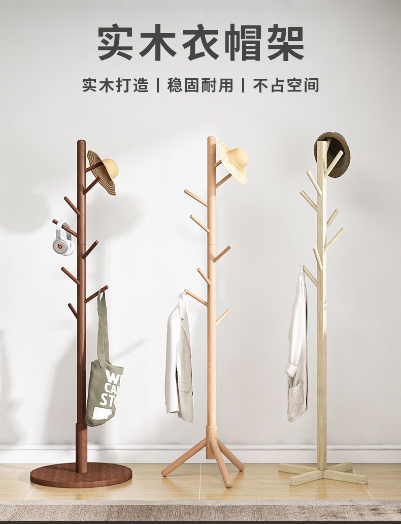 衣帽架落地立式简易实木挂衣架家用卧室阳台出租屋宿舍晾衣架衣架