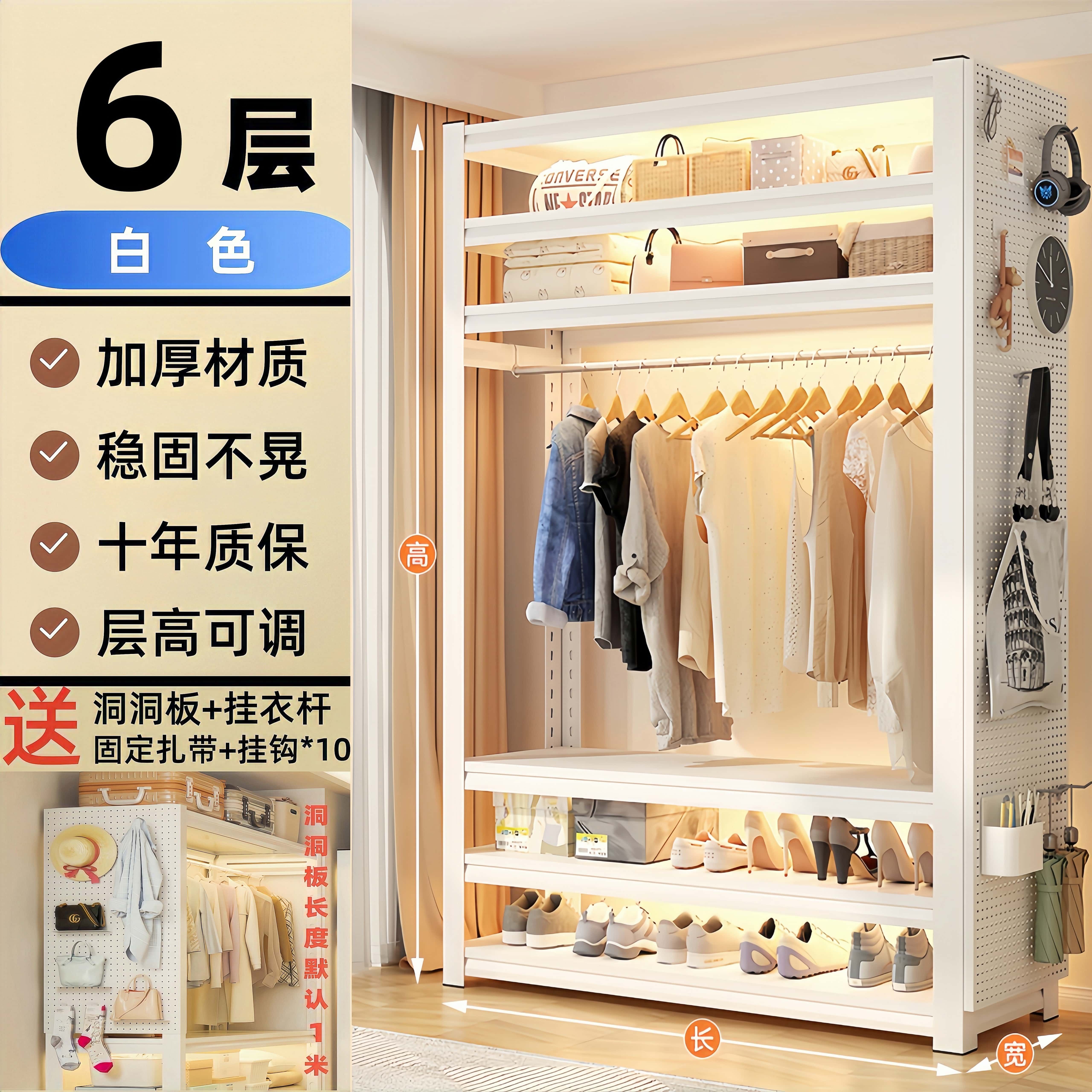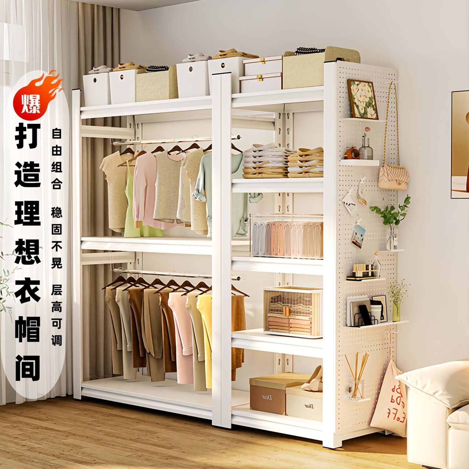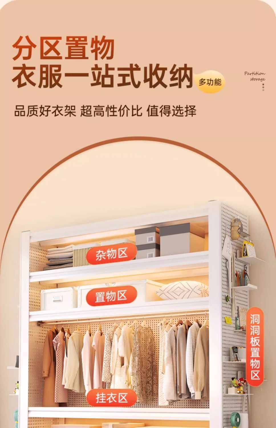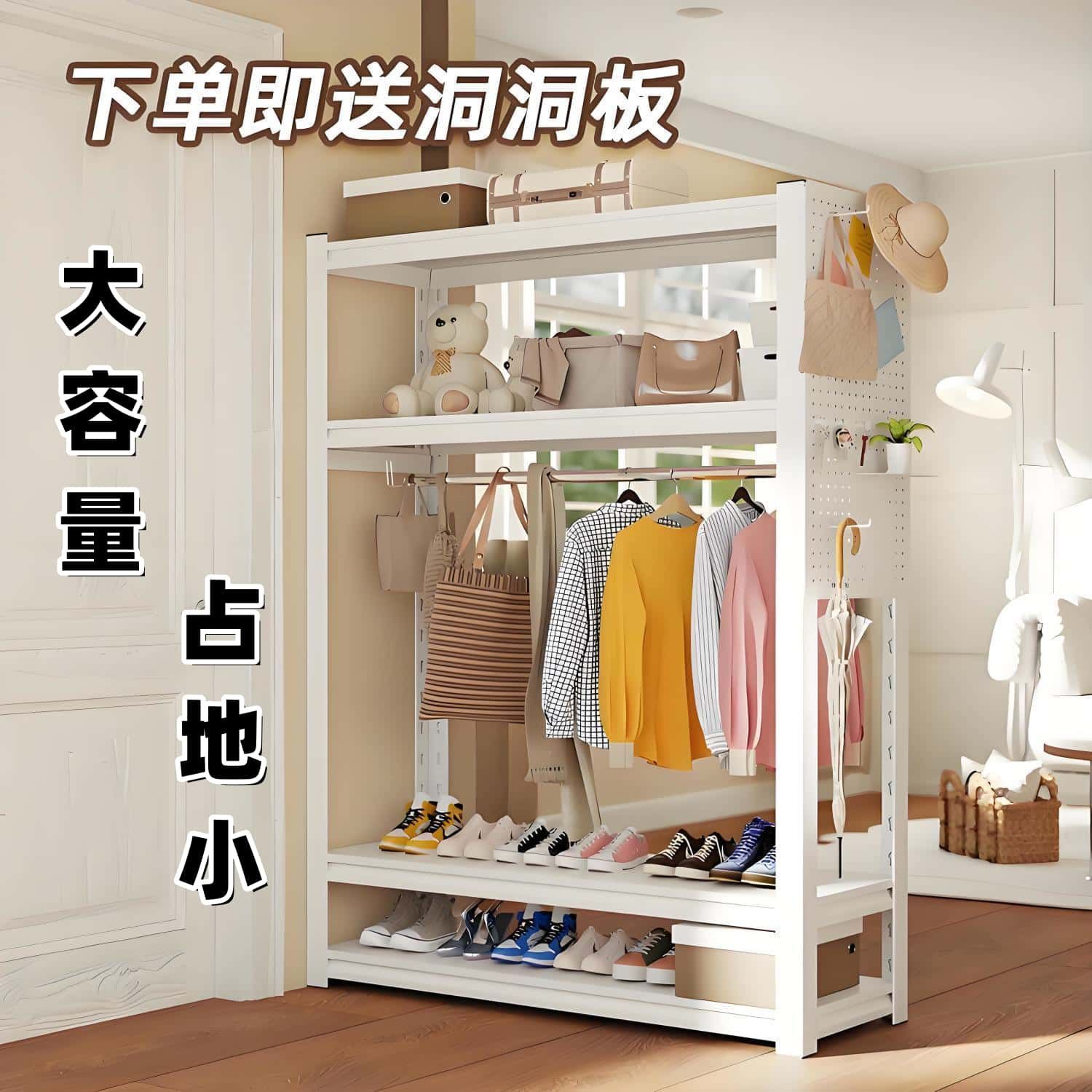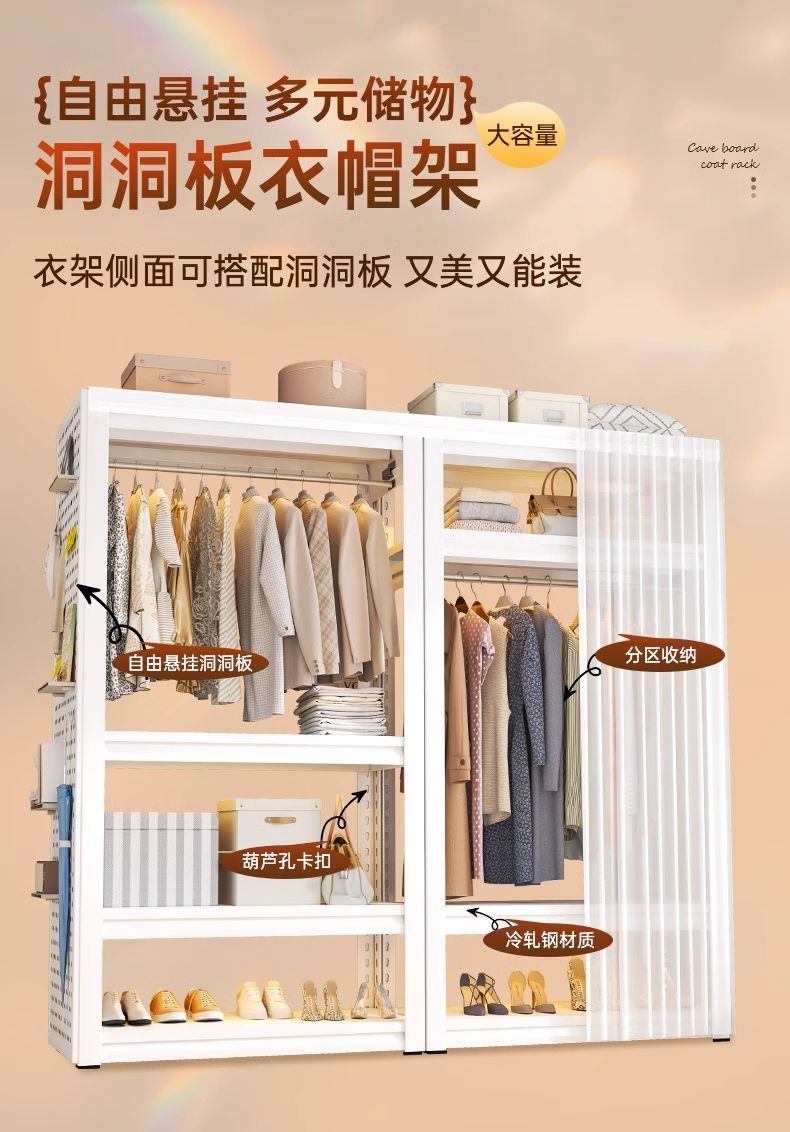 钢制洞洞板挂衣架卧室落地置物架衣柜简易公寓出租房开放式衣帽架
