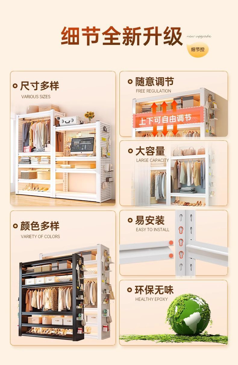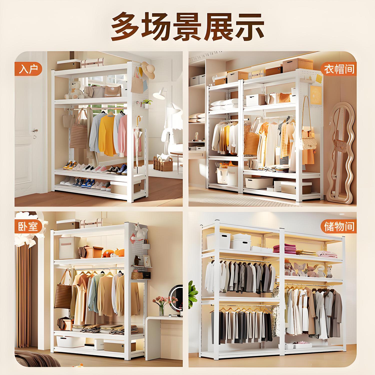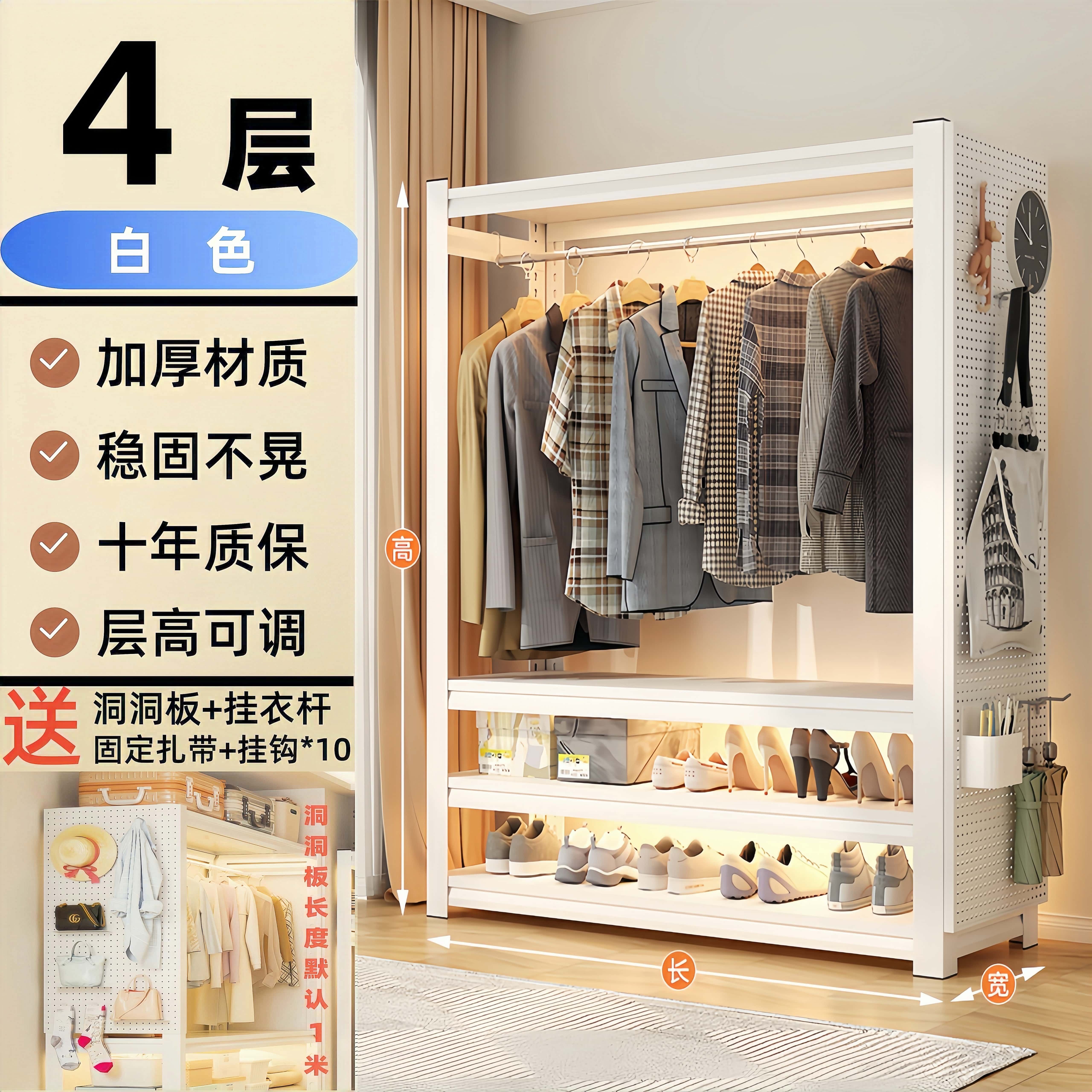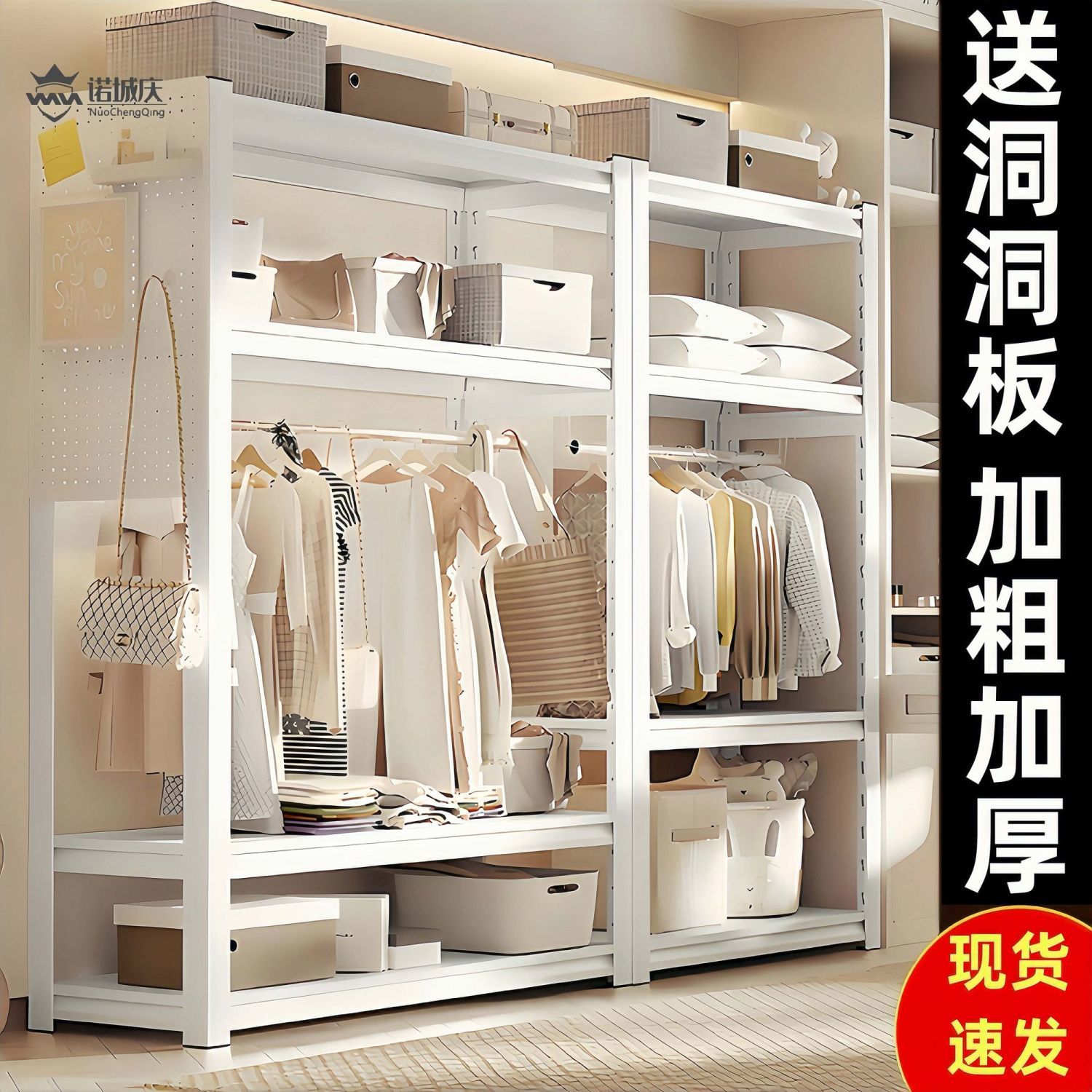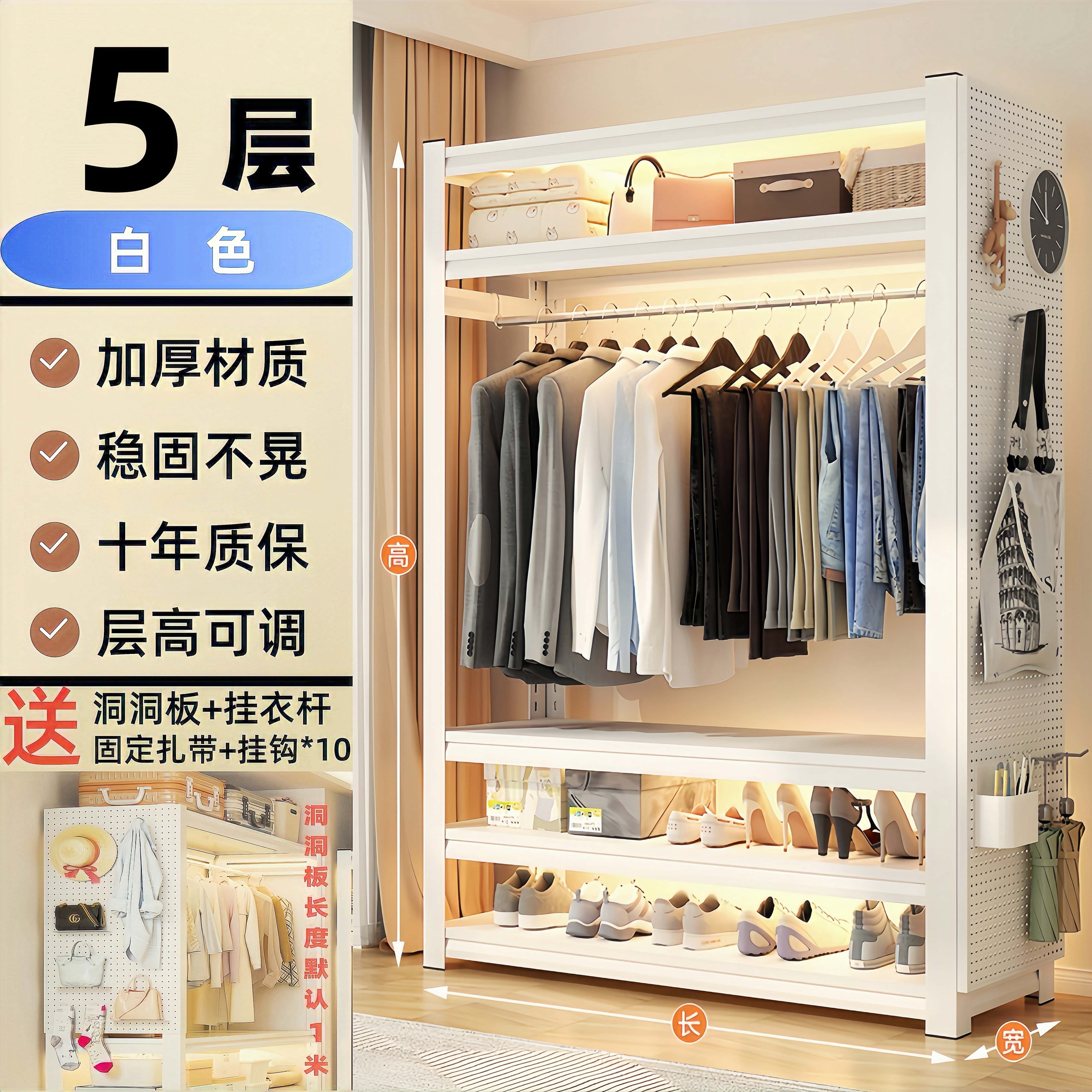 钢制洞洞板挂衣架卧室落地置物架衣柜简易公寓出租房开放式衣帽架