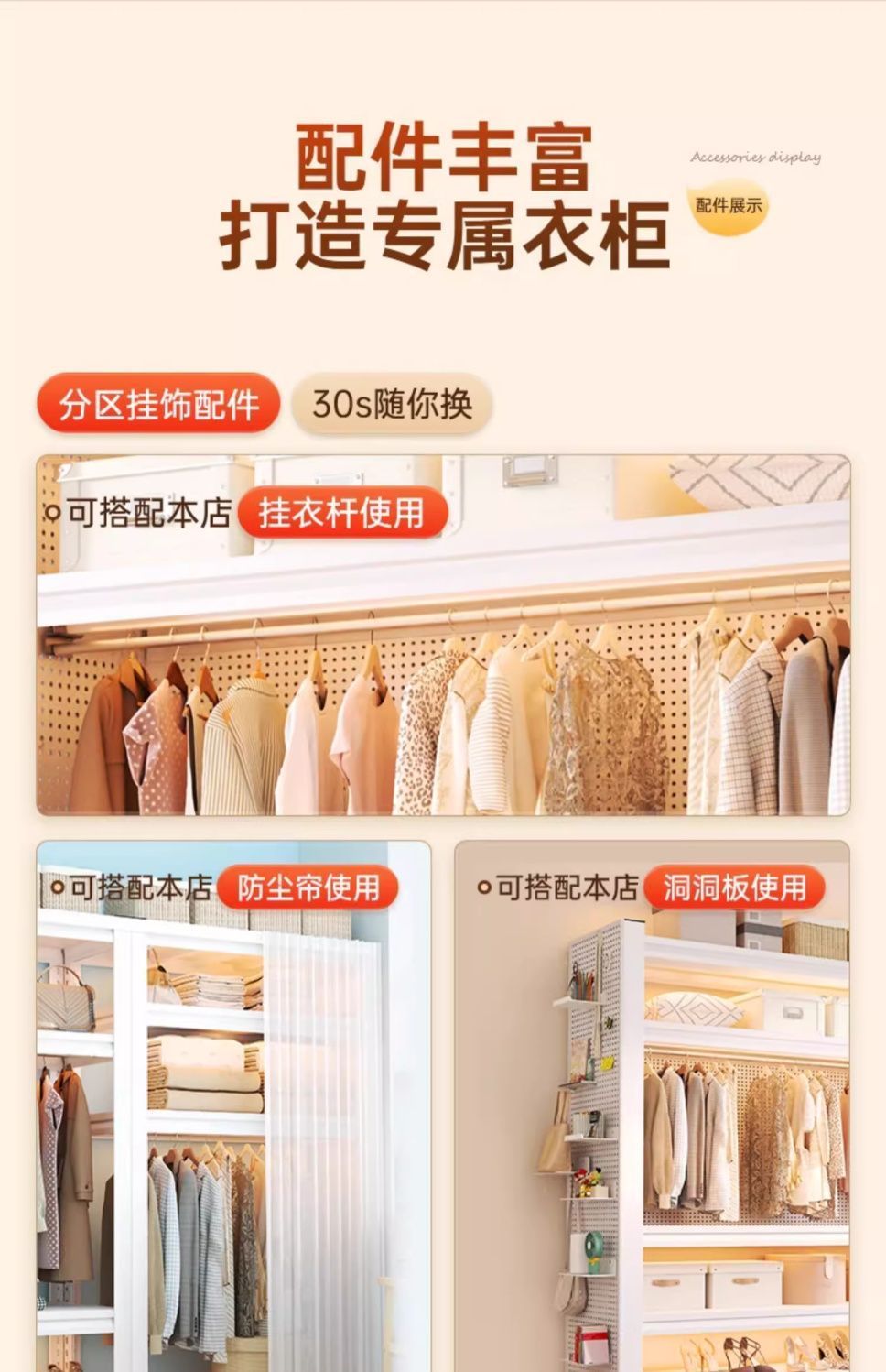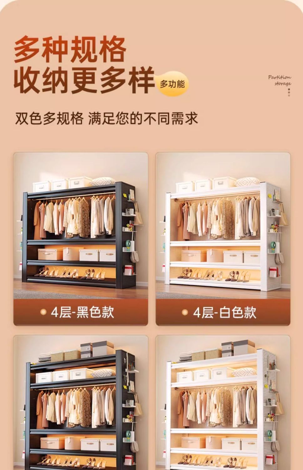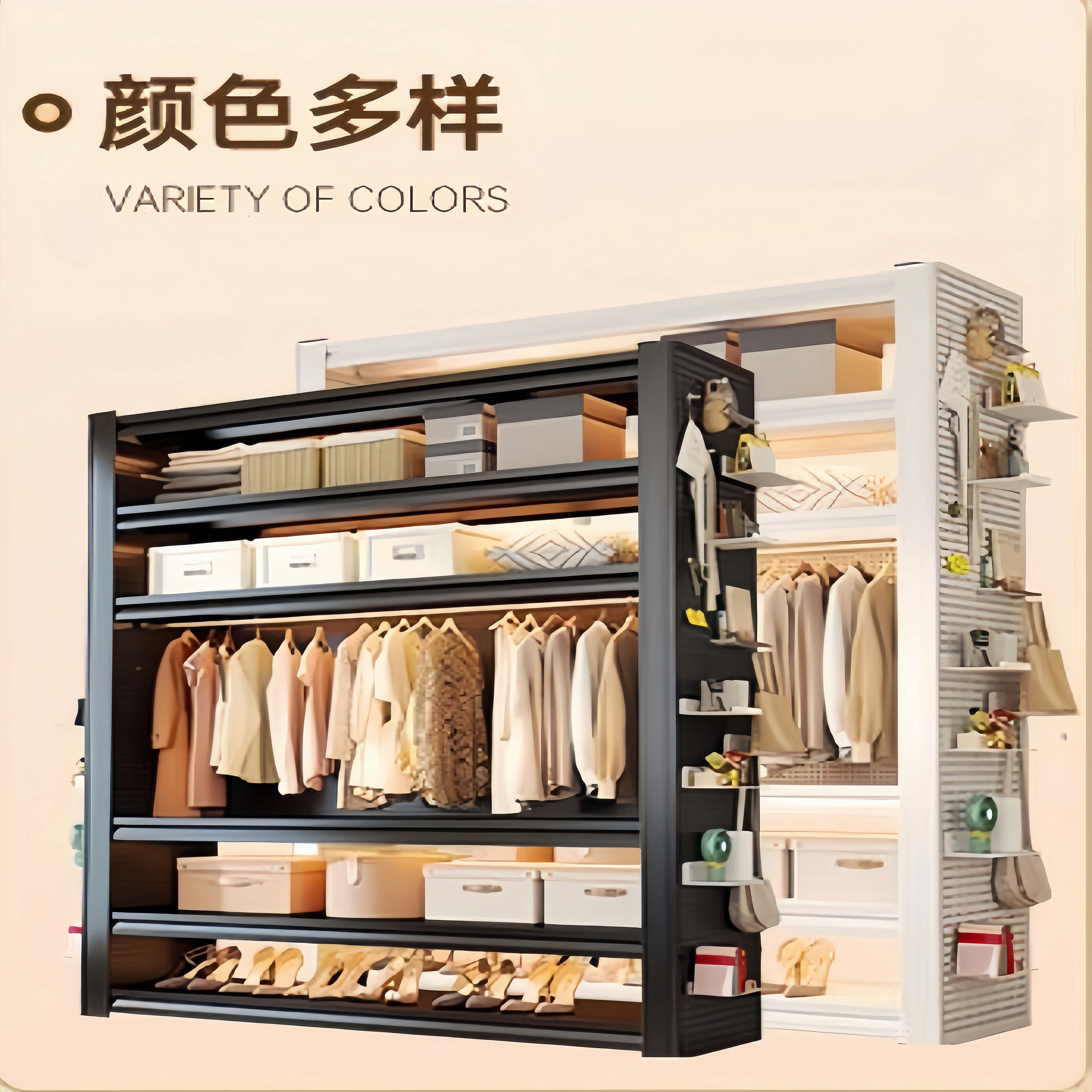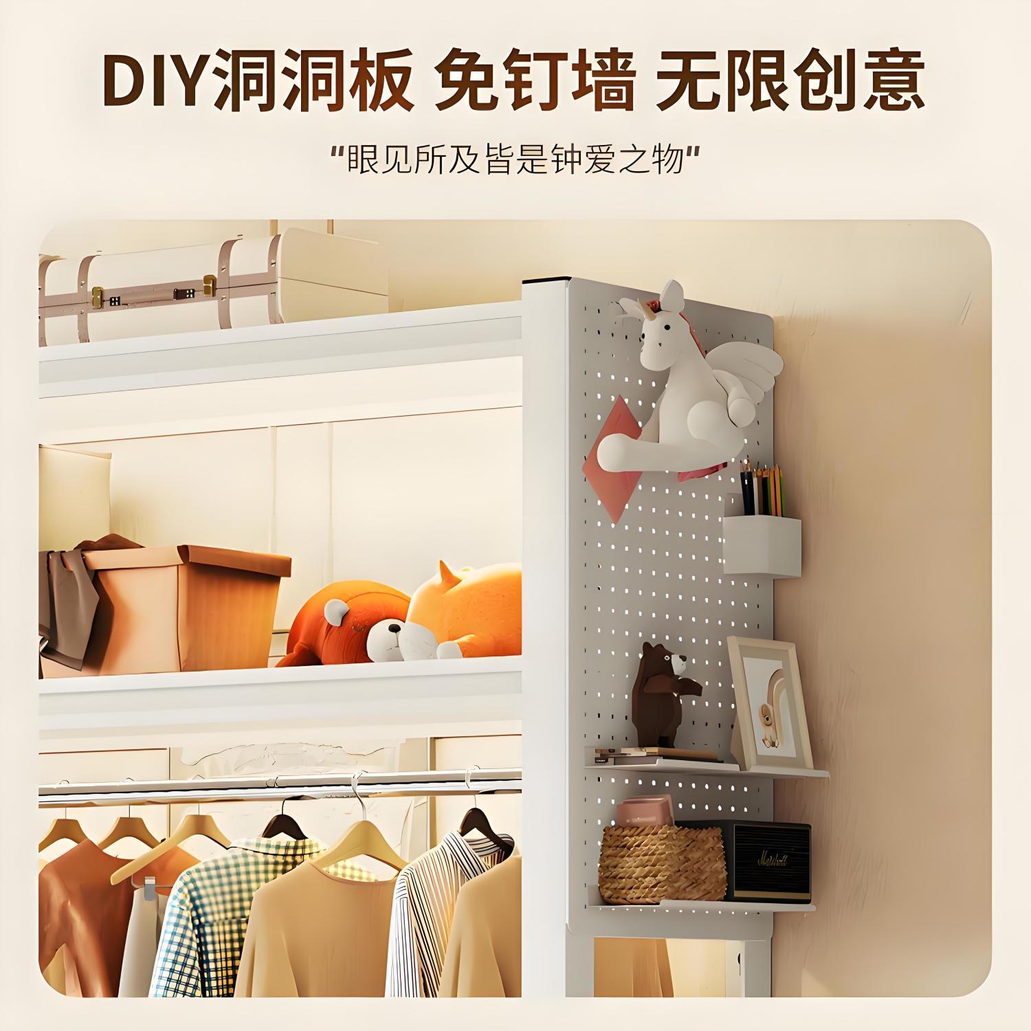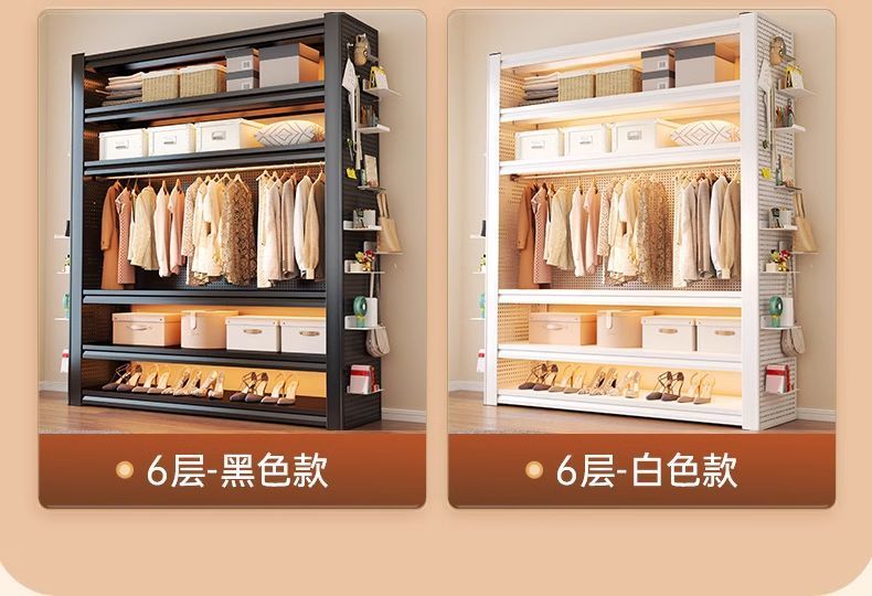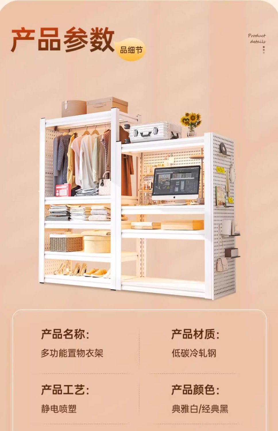 钢制洞洞板挂衣架卧室落地置物架衣柜简易公寓出租房开放式衣帽架