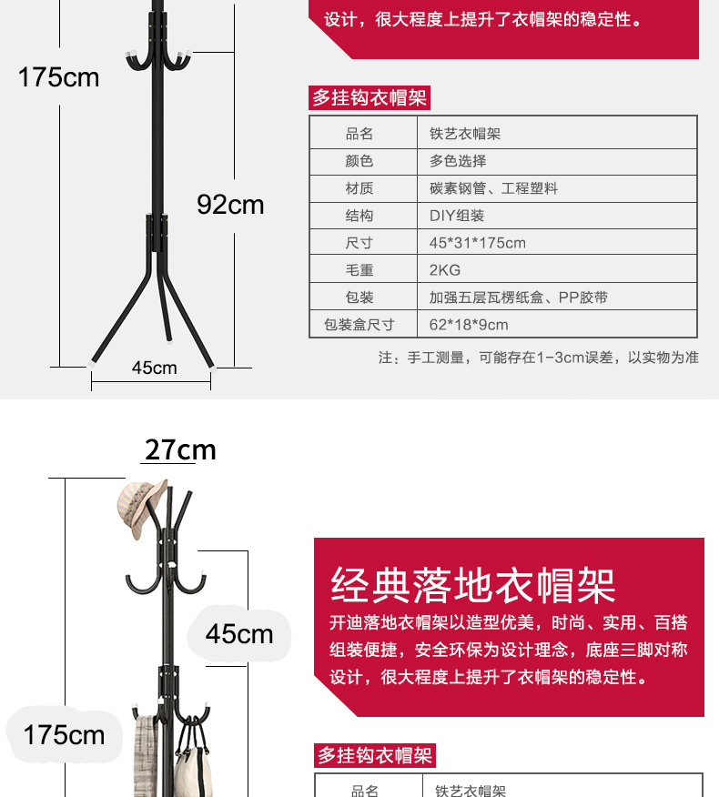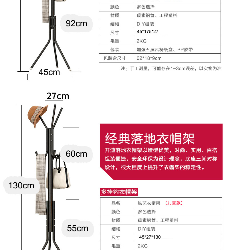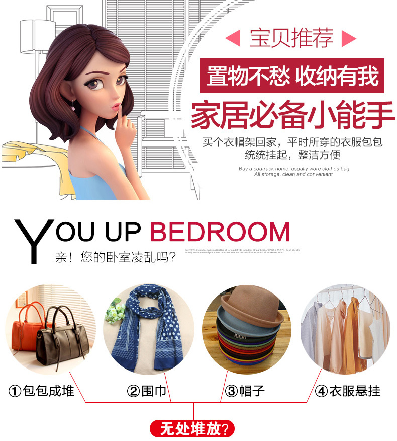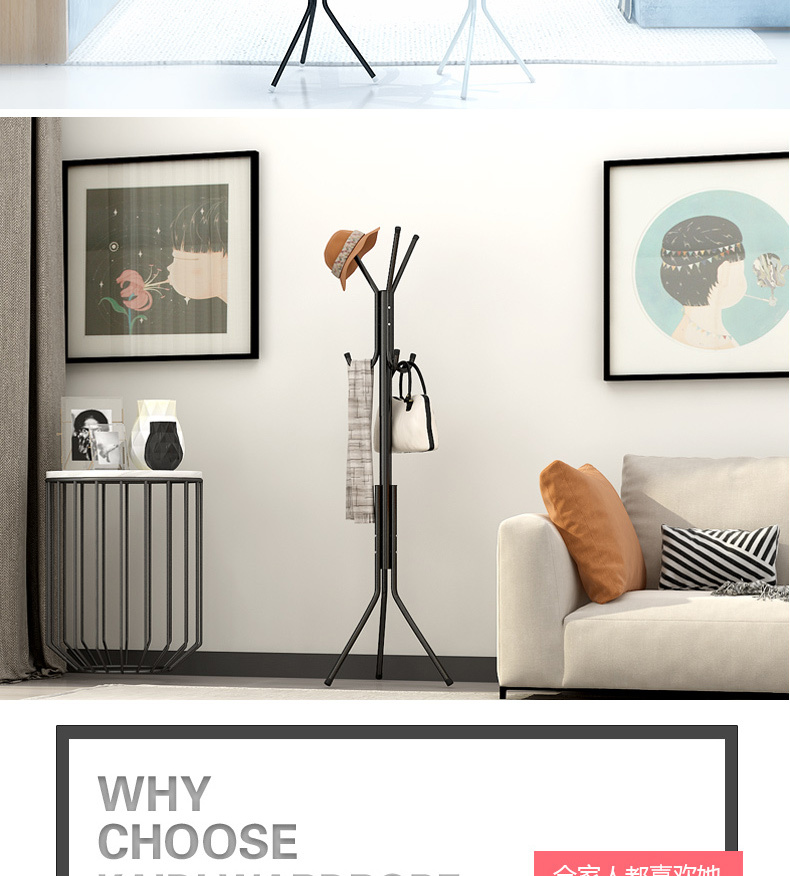 衣帽架落地卧室置物架挂衣架柜子衣帽架收纳架家用简易组装挂包架