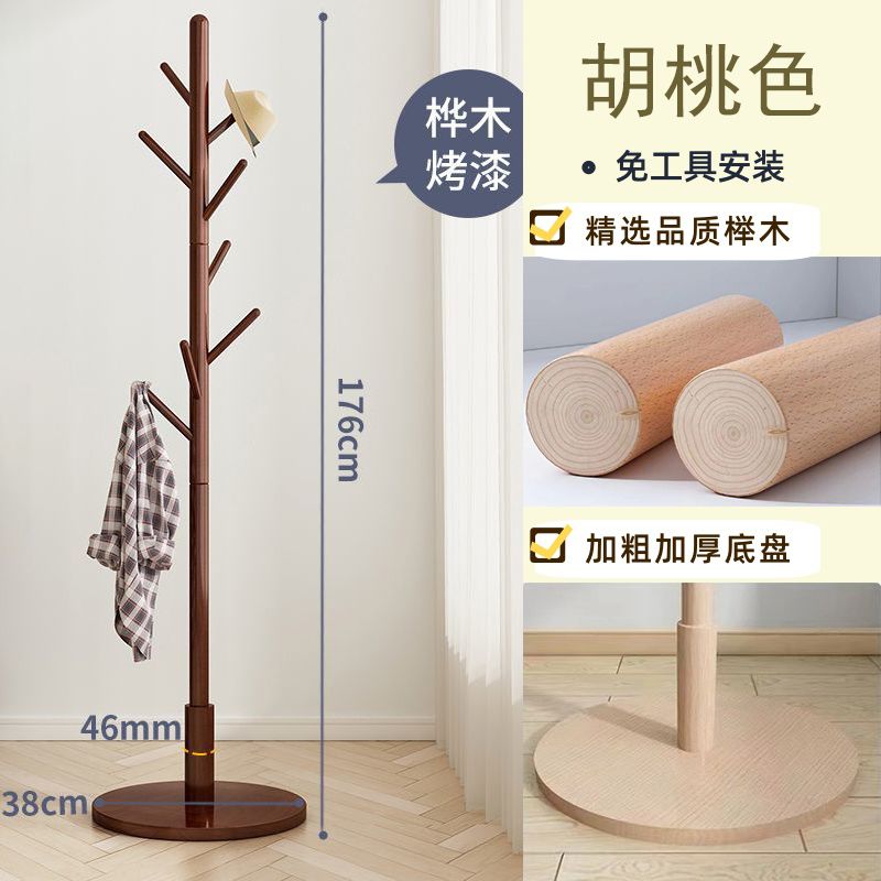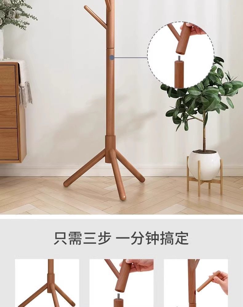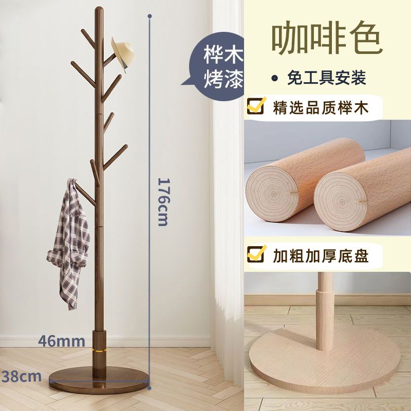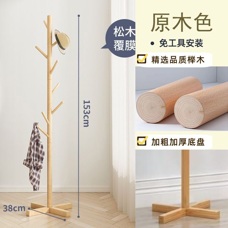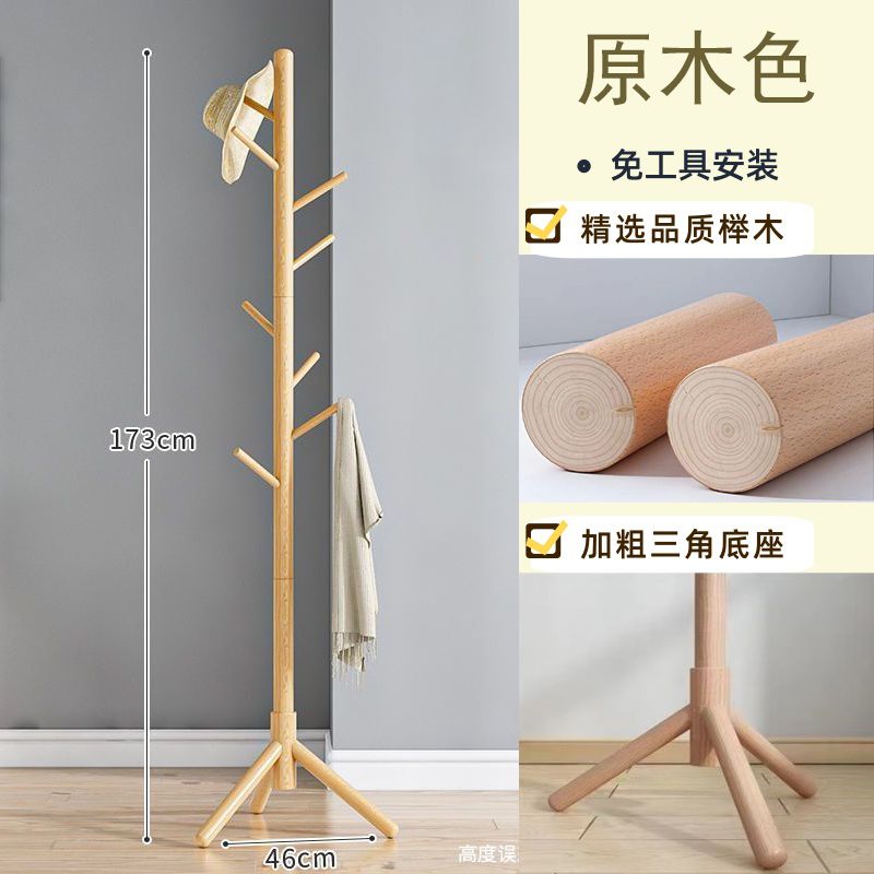 实木衣帽架客厅落地单杆立式挂衣架衣架卧室简易实木晾衣架挂包架