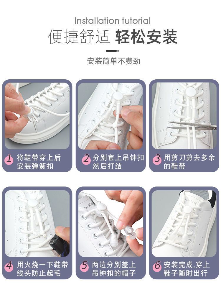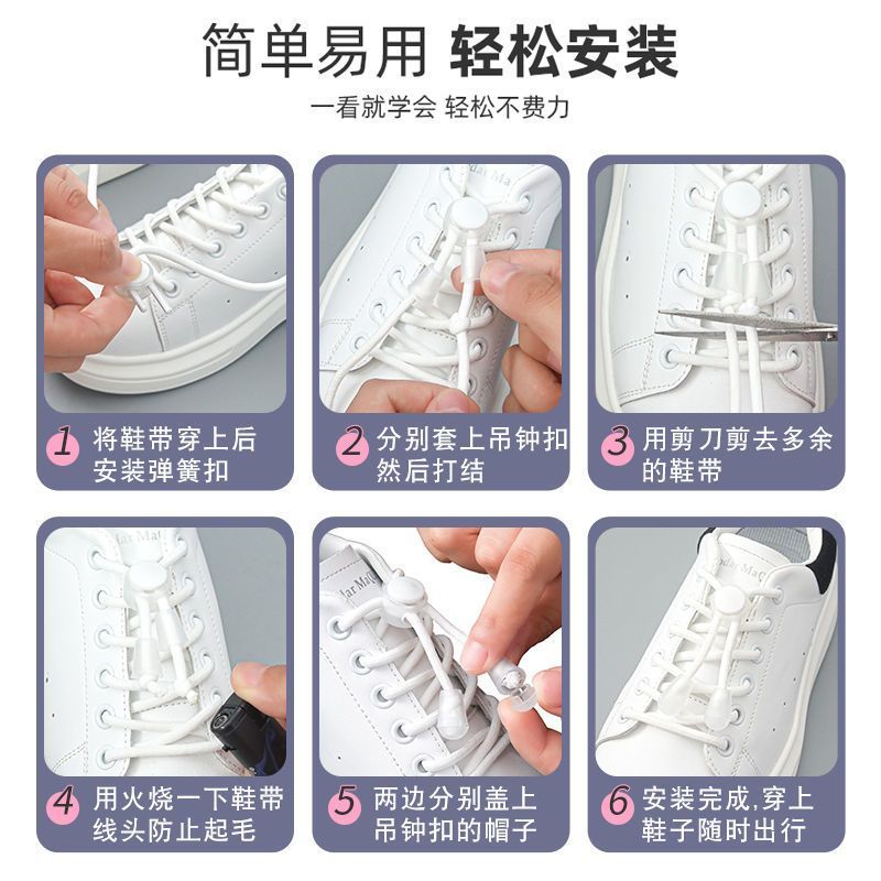 新款懒人鞋带小孩万能鞋带全自动圆绳松紧弹力懒人鞋带扣自动扣