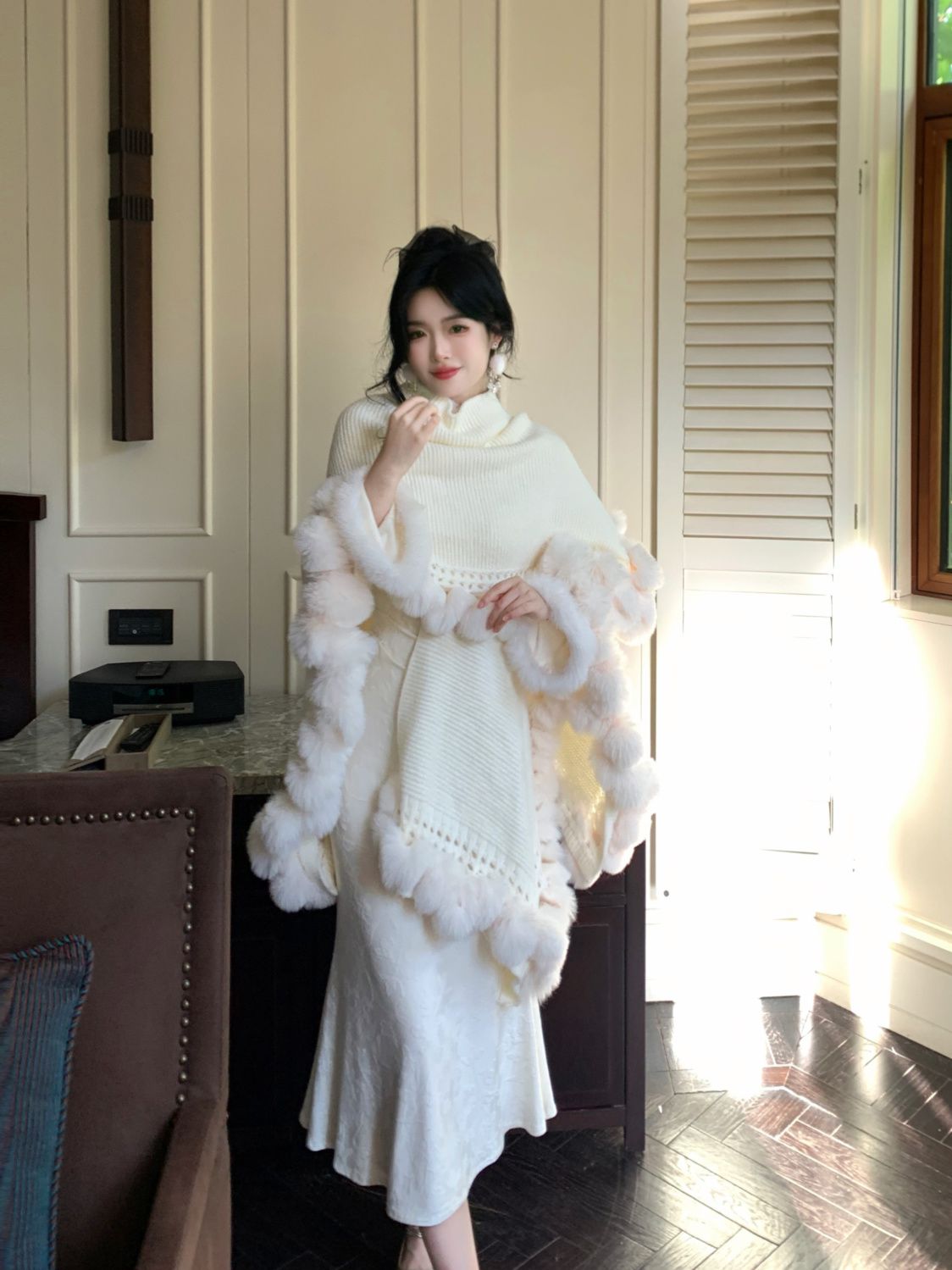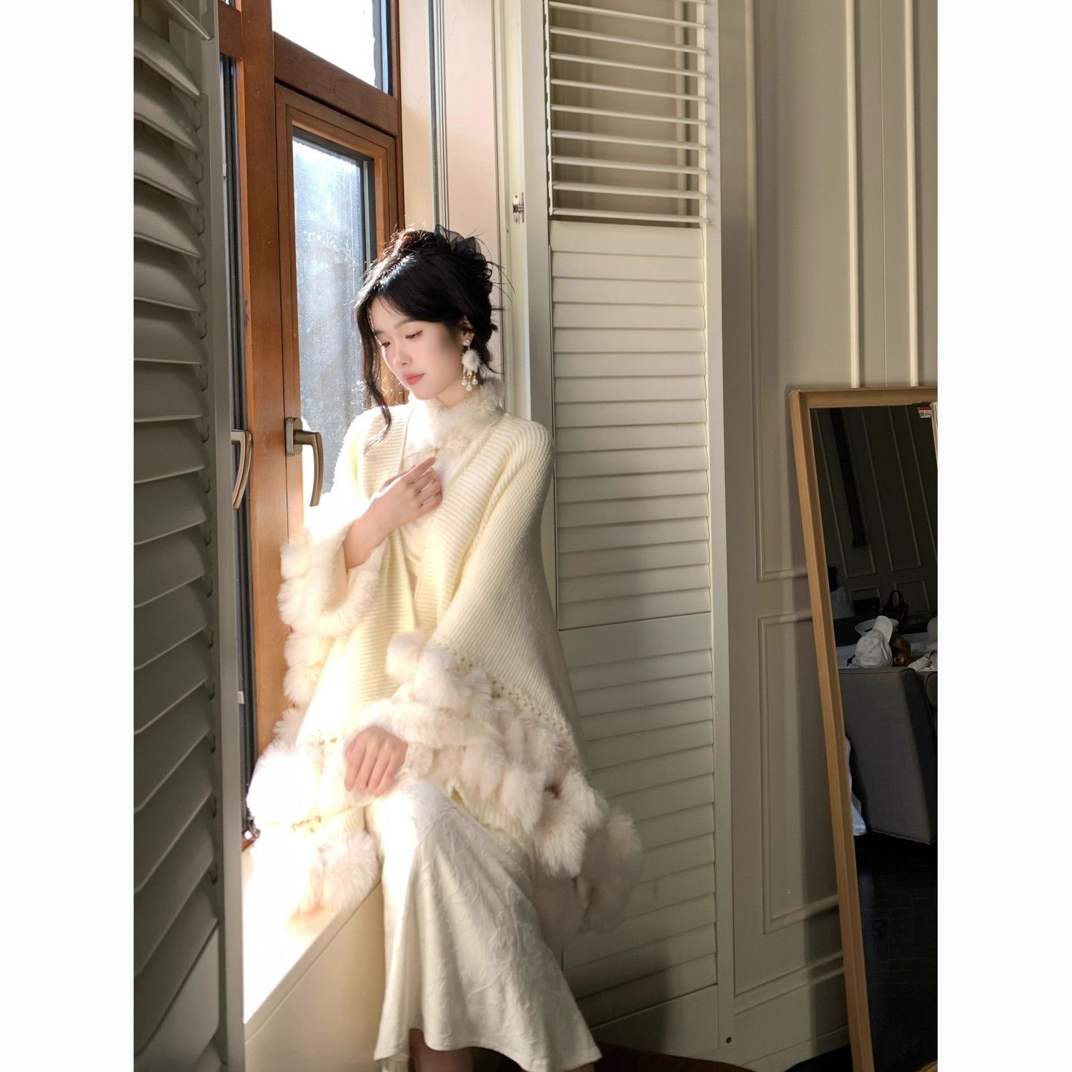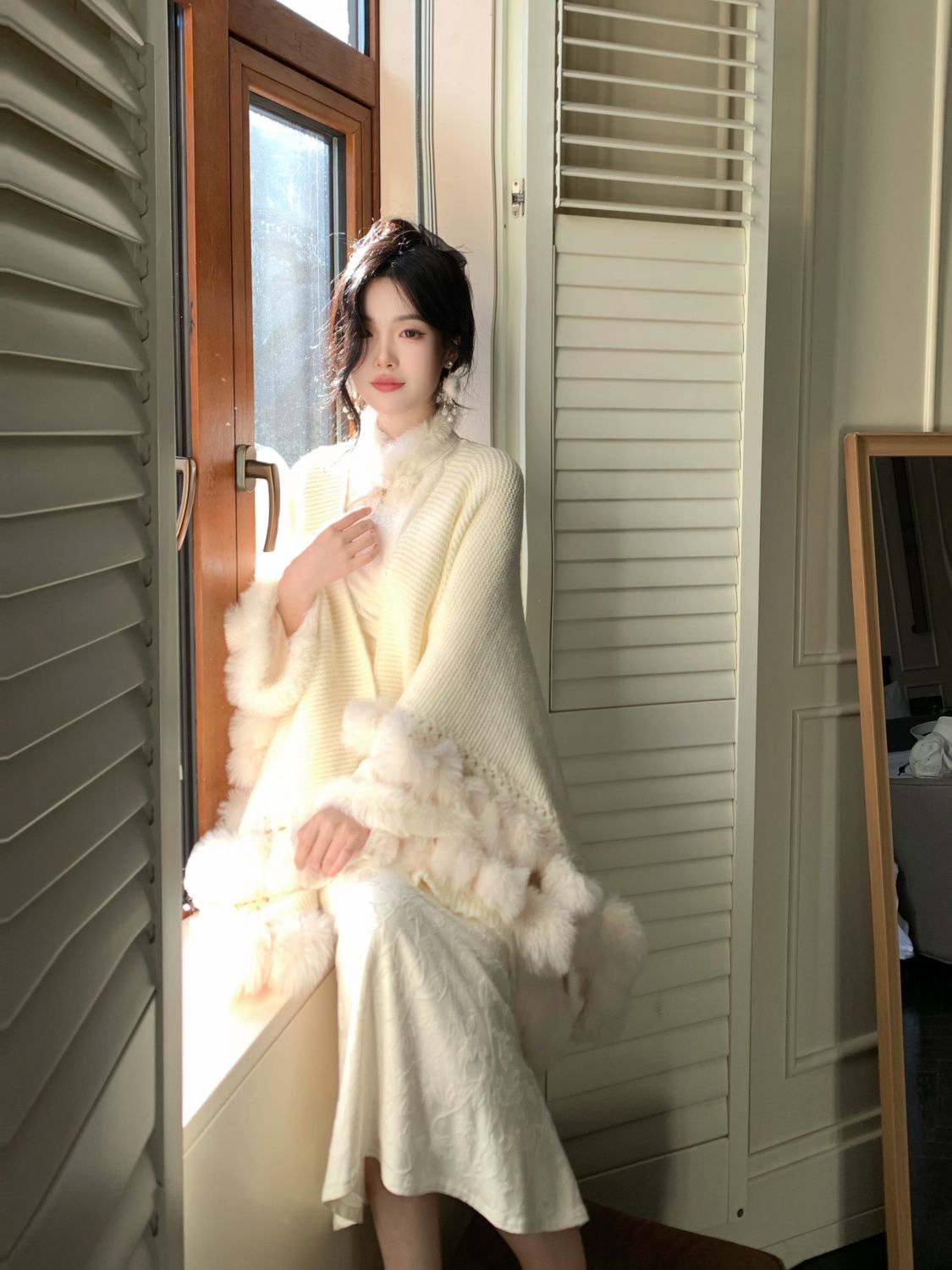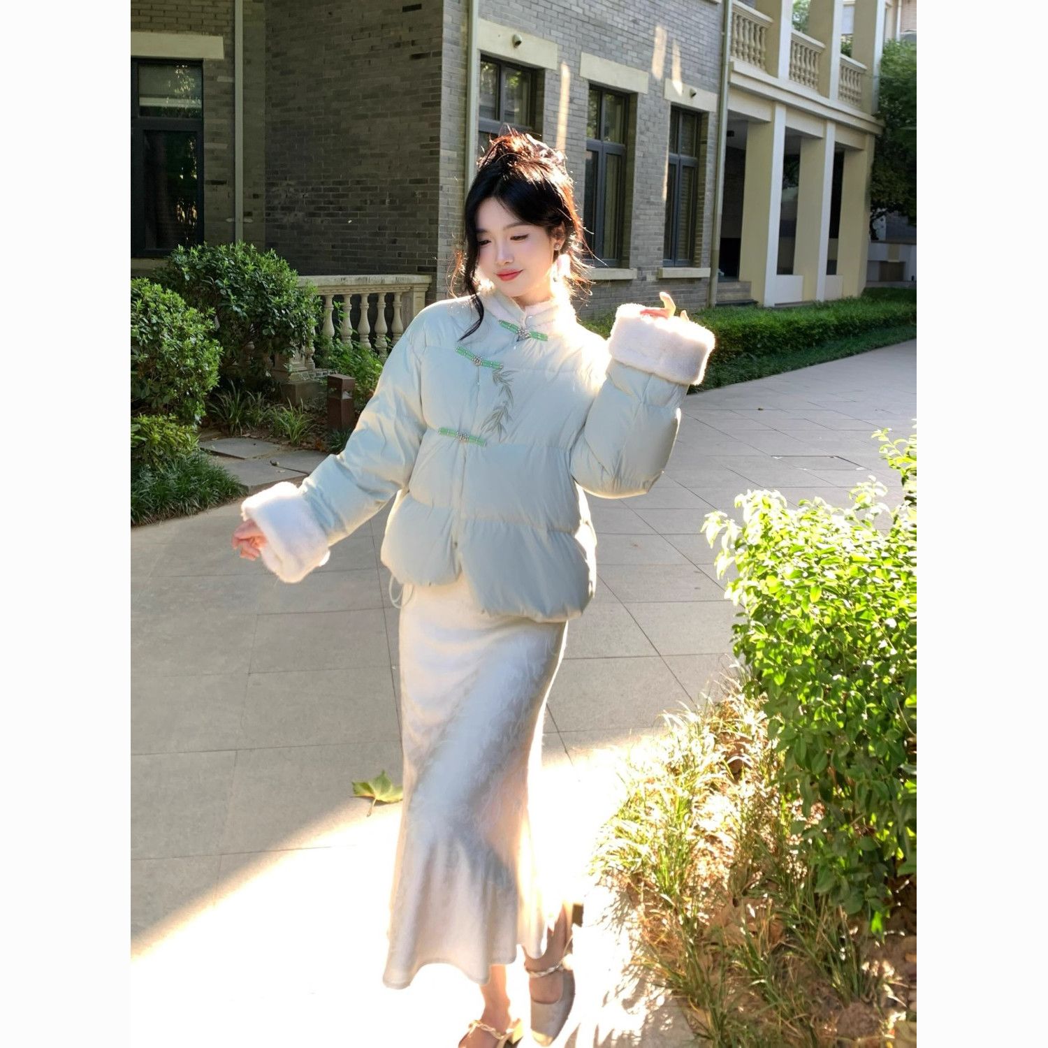 【北川雪】 新中式千金气质毛领提花重工旗袍冬季新款收腰连衣裙