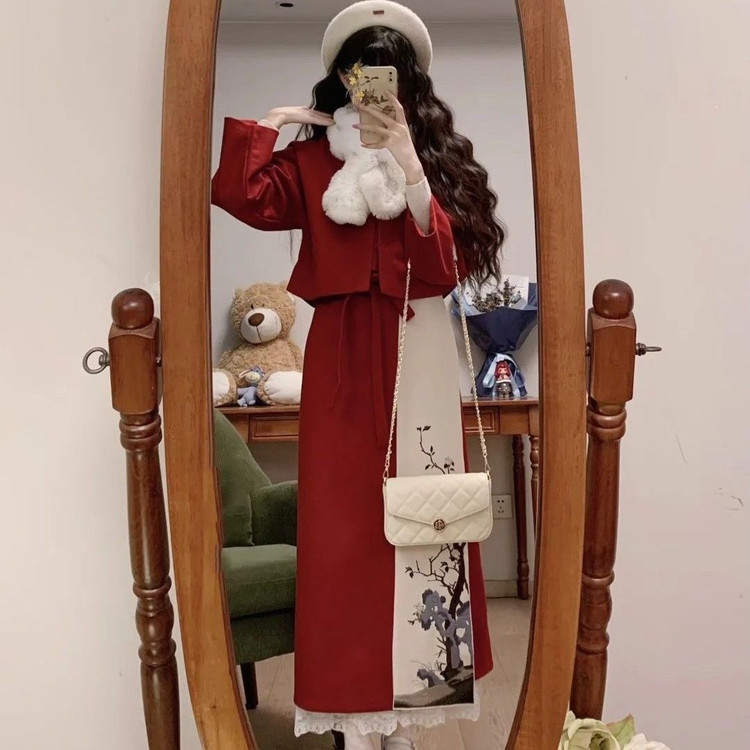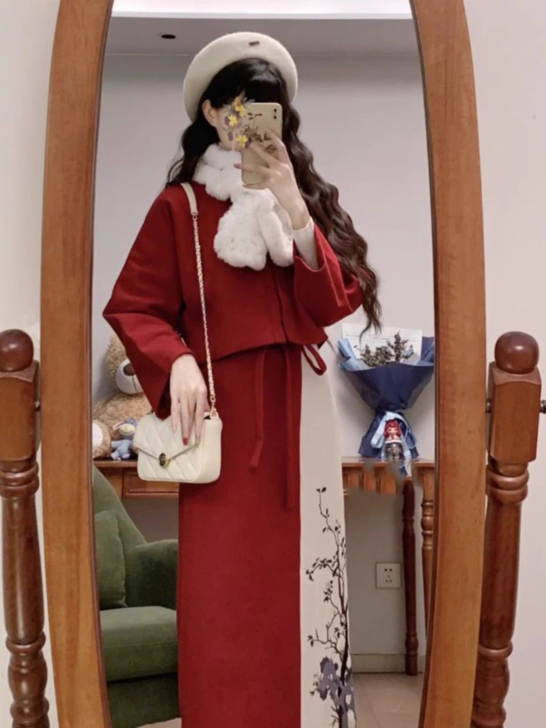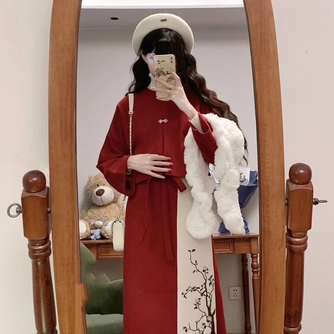 新中式国风红色宋制汉服适合参加订婚礼女穿搭敬酒礼服连衣裙套装