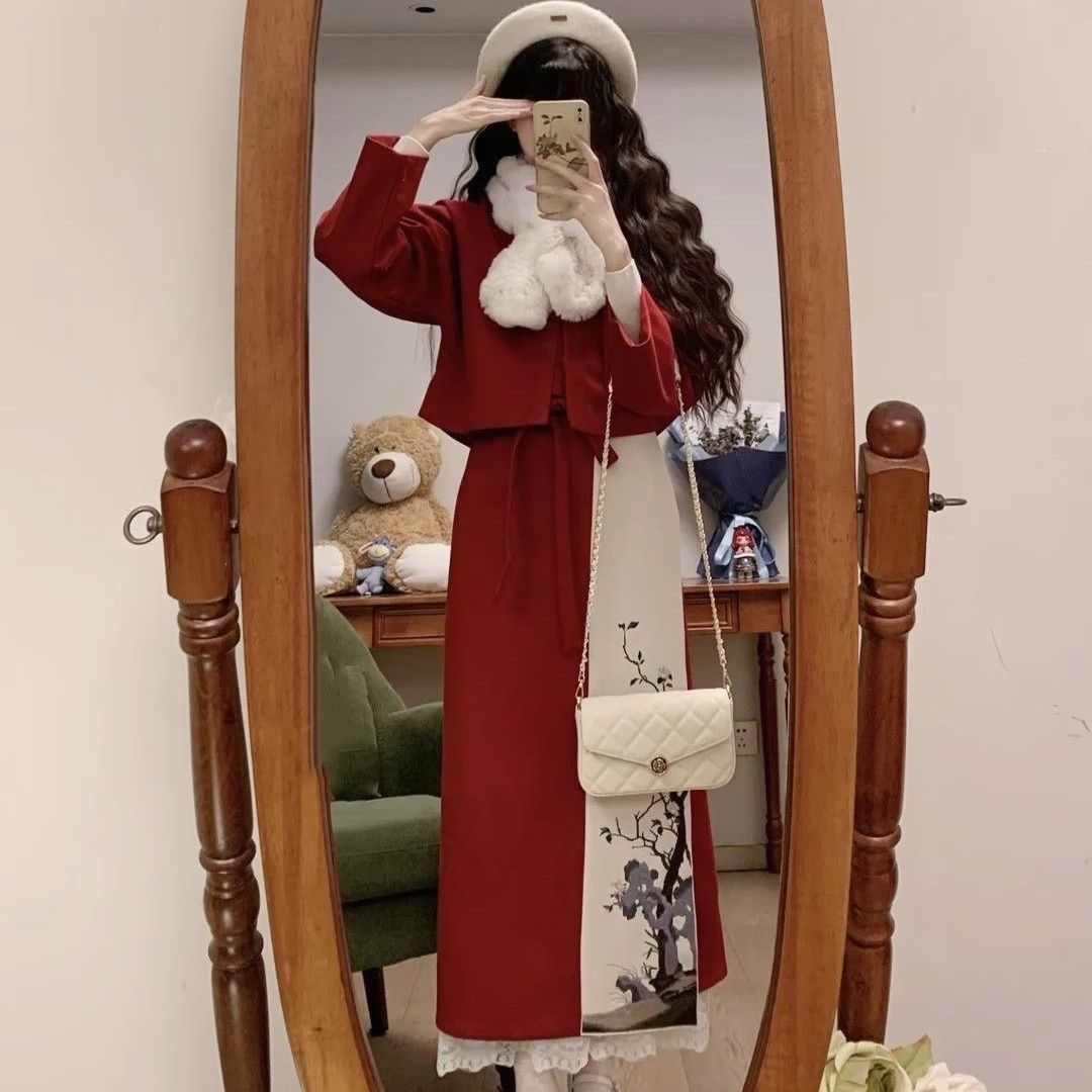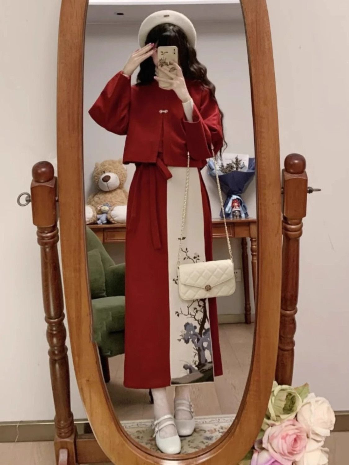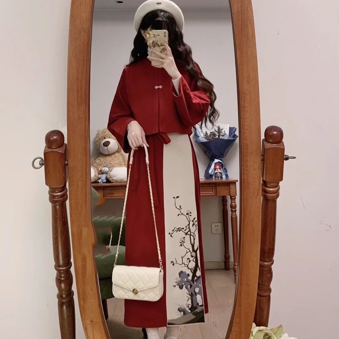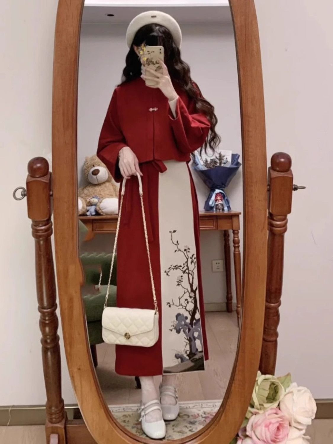 新中式国风红色宋制汉服适合参加订婚礼女穿搭敬酒礼服连衣裙套装
