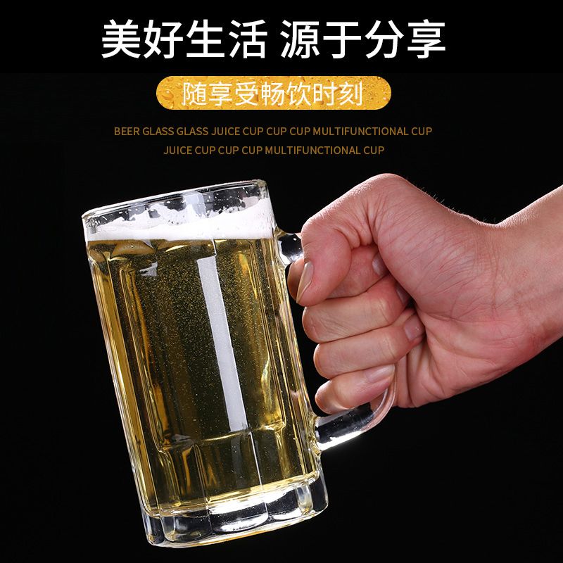网红啤酒杯家用大号扎啤杯厚底玻璃酒杯创意果汁杯抖音同款啤酒杯
