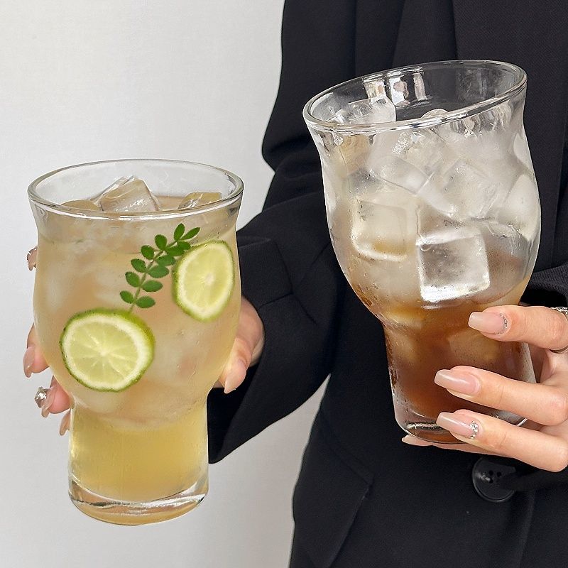 小众复古宽口玻璃杯冰美式咖啡杯大容量苏打气泡水杯饮品杯果茶杯