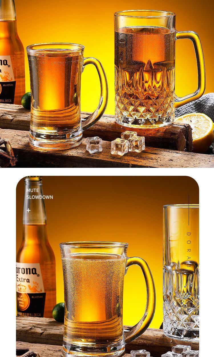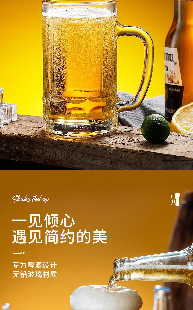 大号玻璃啤酒杯 喝水杯子 家用套装 啤酒杯 扎啤杯 带把茶杯