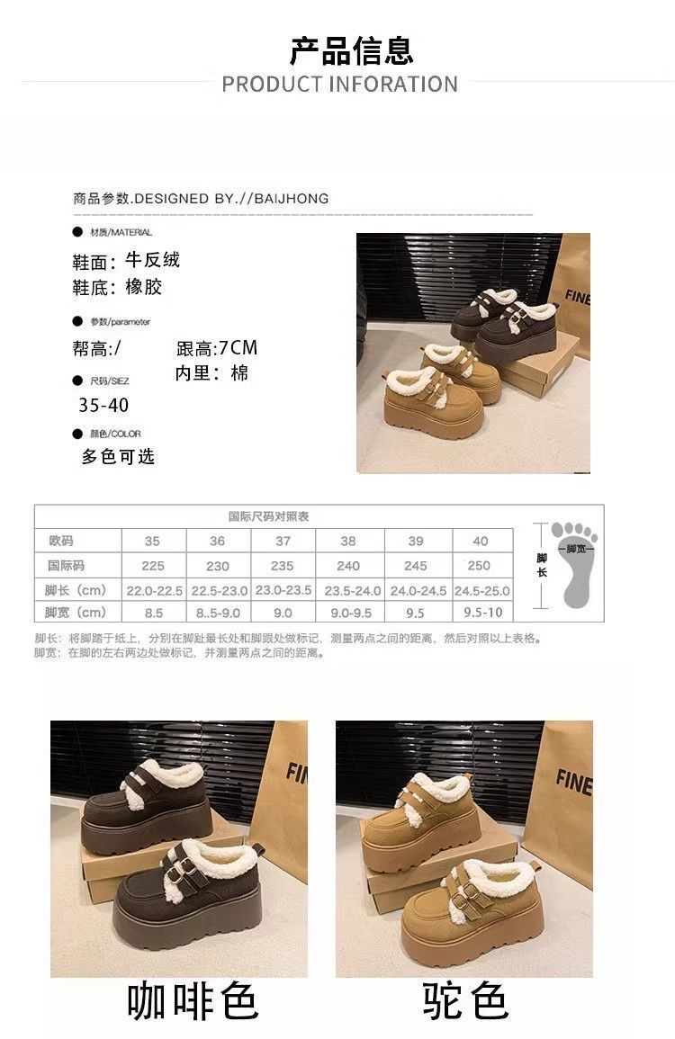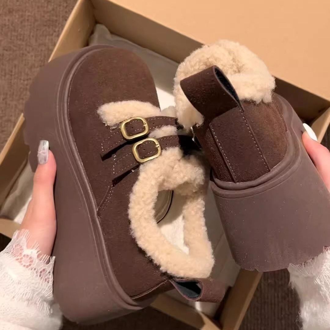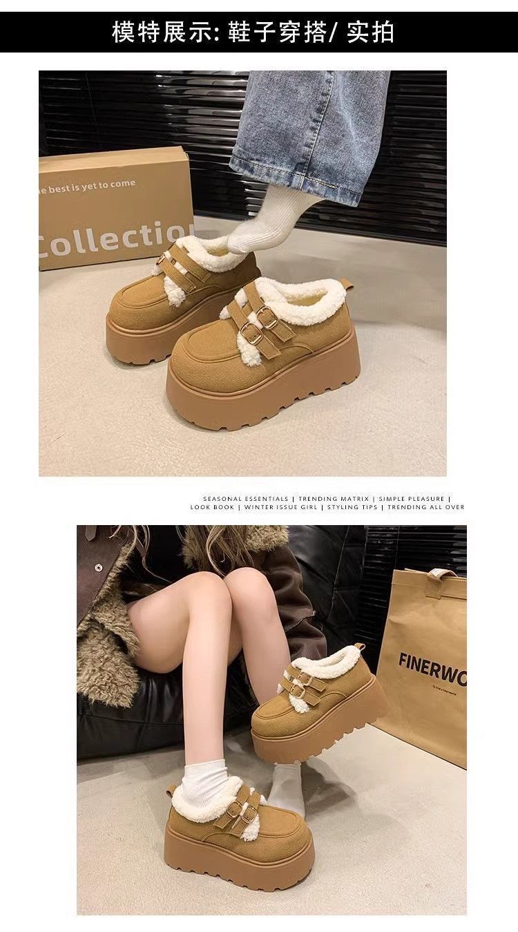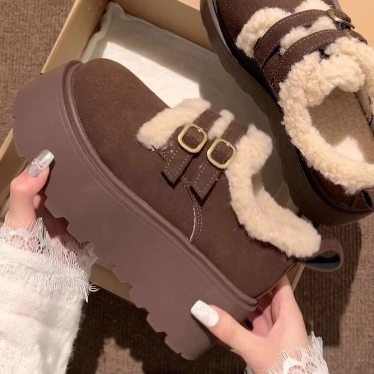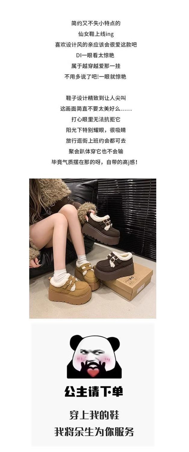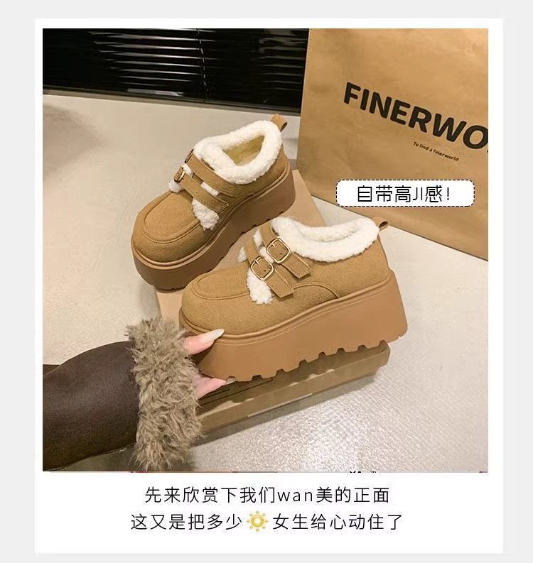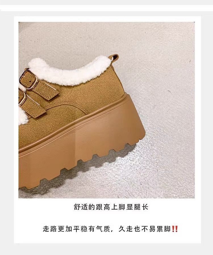 小个子厚底坡跟加绒毛毛勃肯棉鞋女冬季新款松糕加绒低帮雪地靴潮
