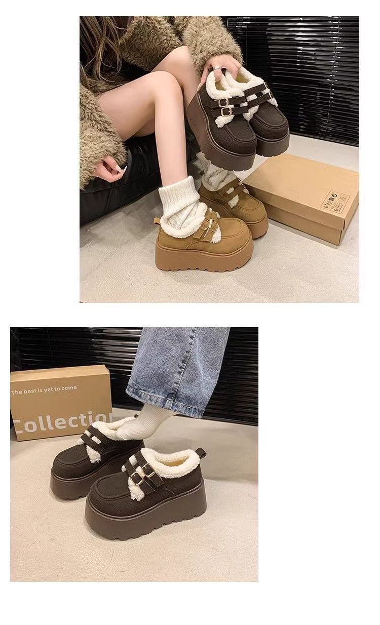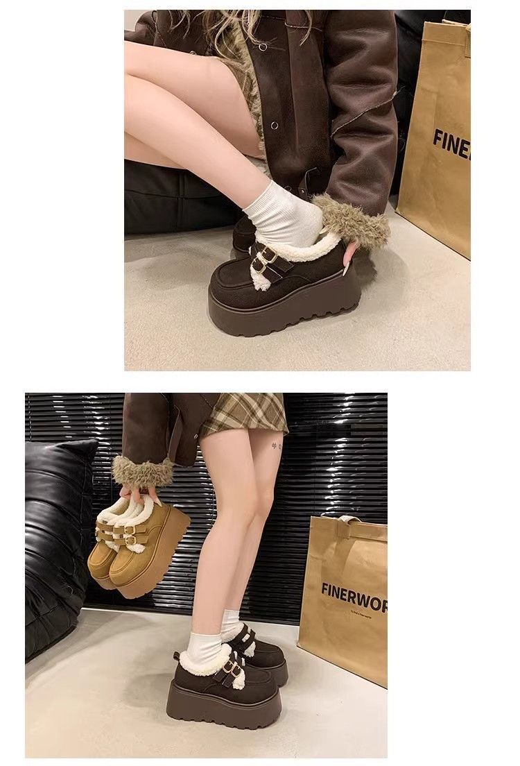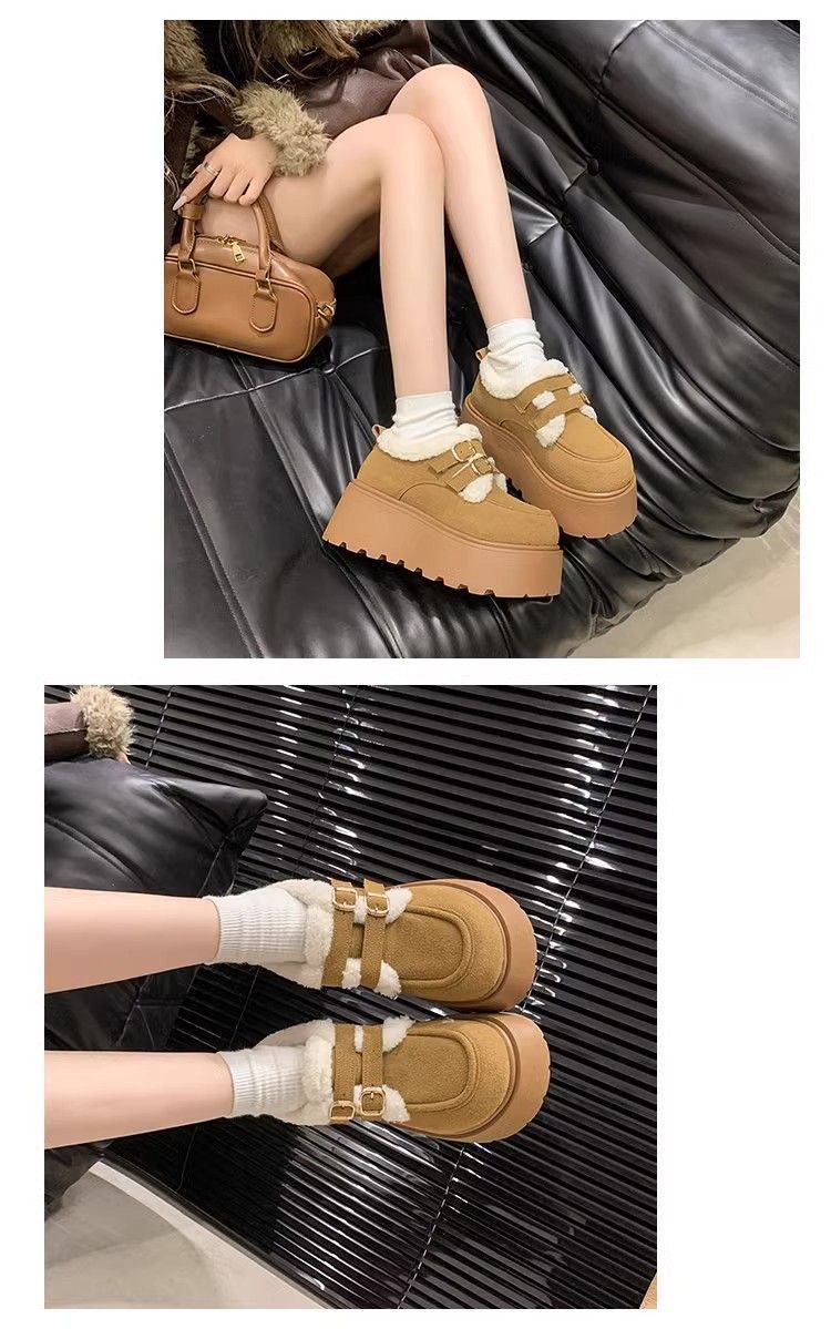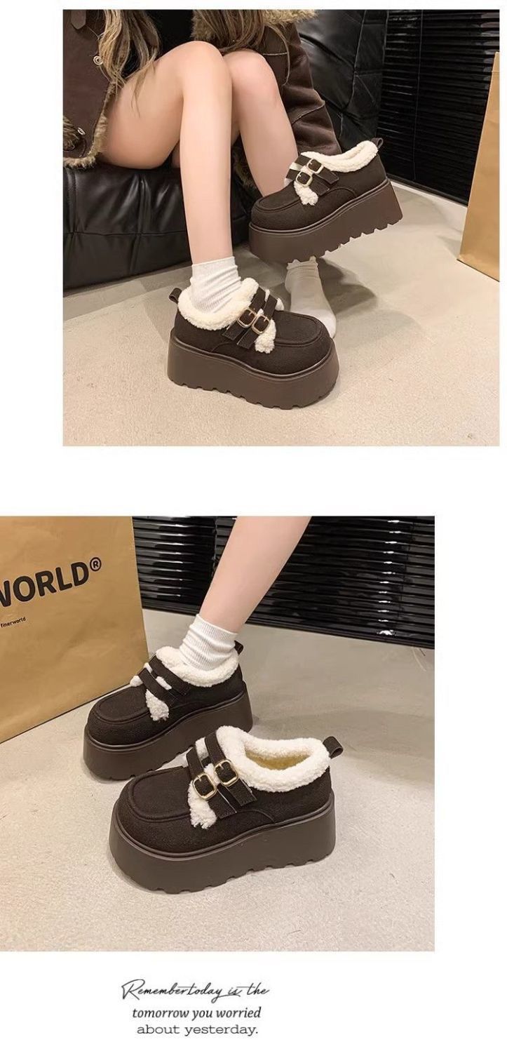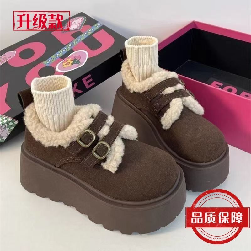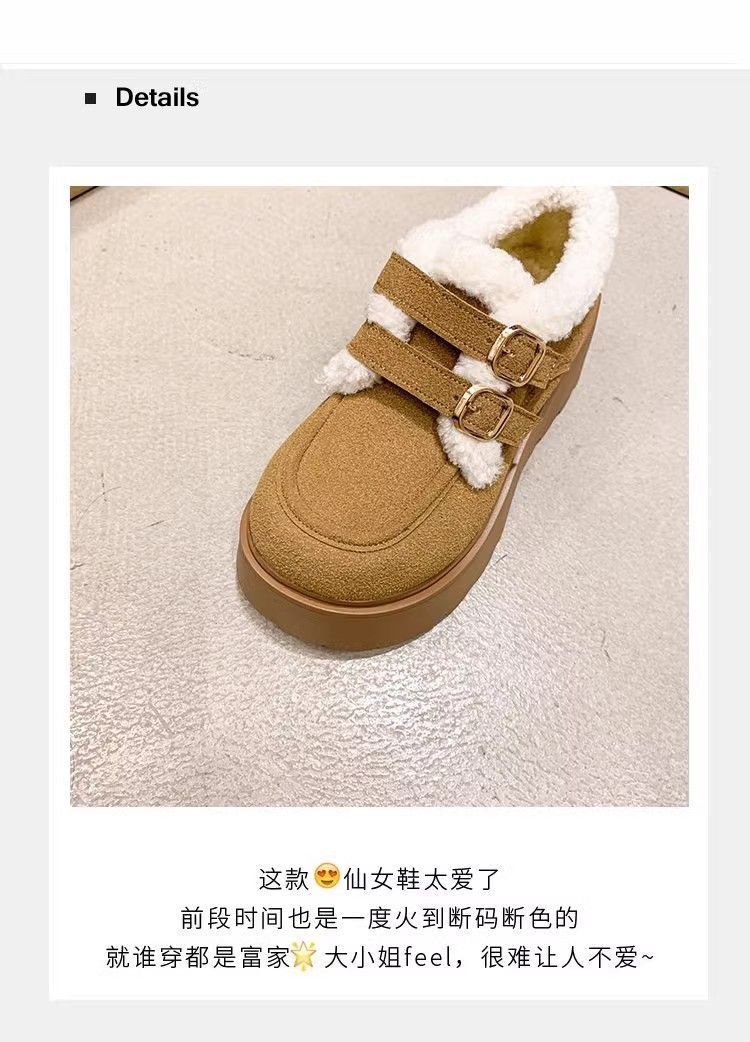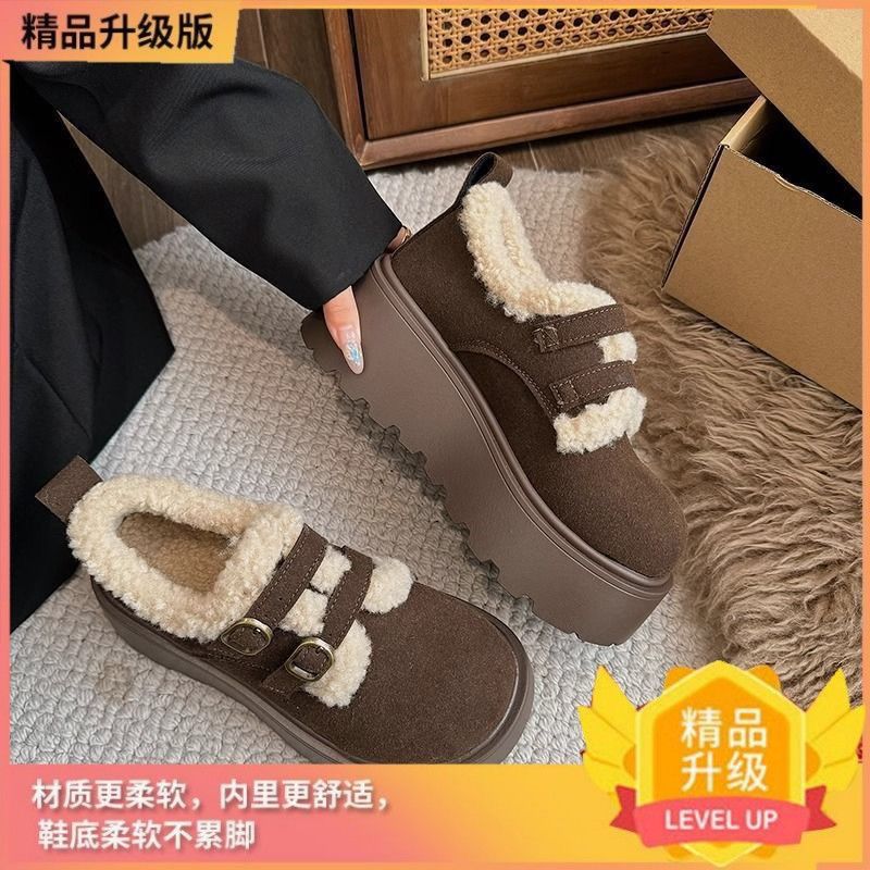 小个子厚底坡跟加绒毛毛勃肯棉鞋女冬季新款松糕加绒低帮雪地靴潮