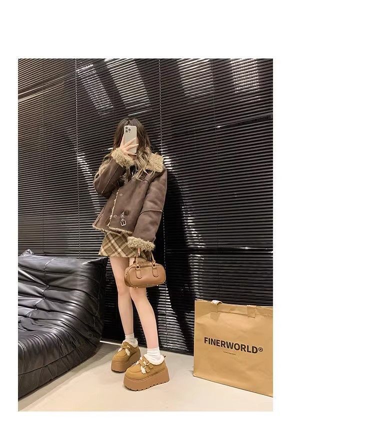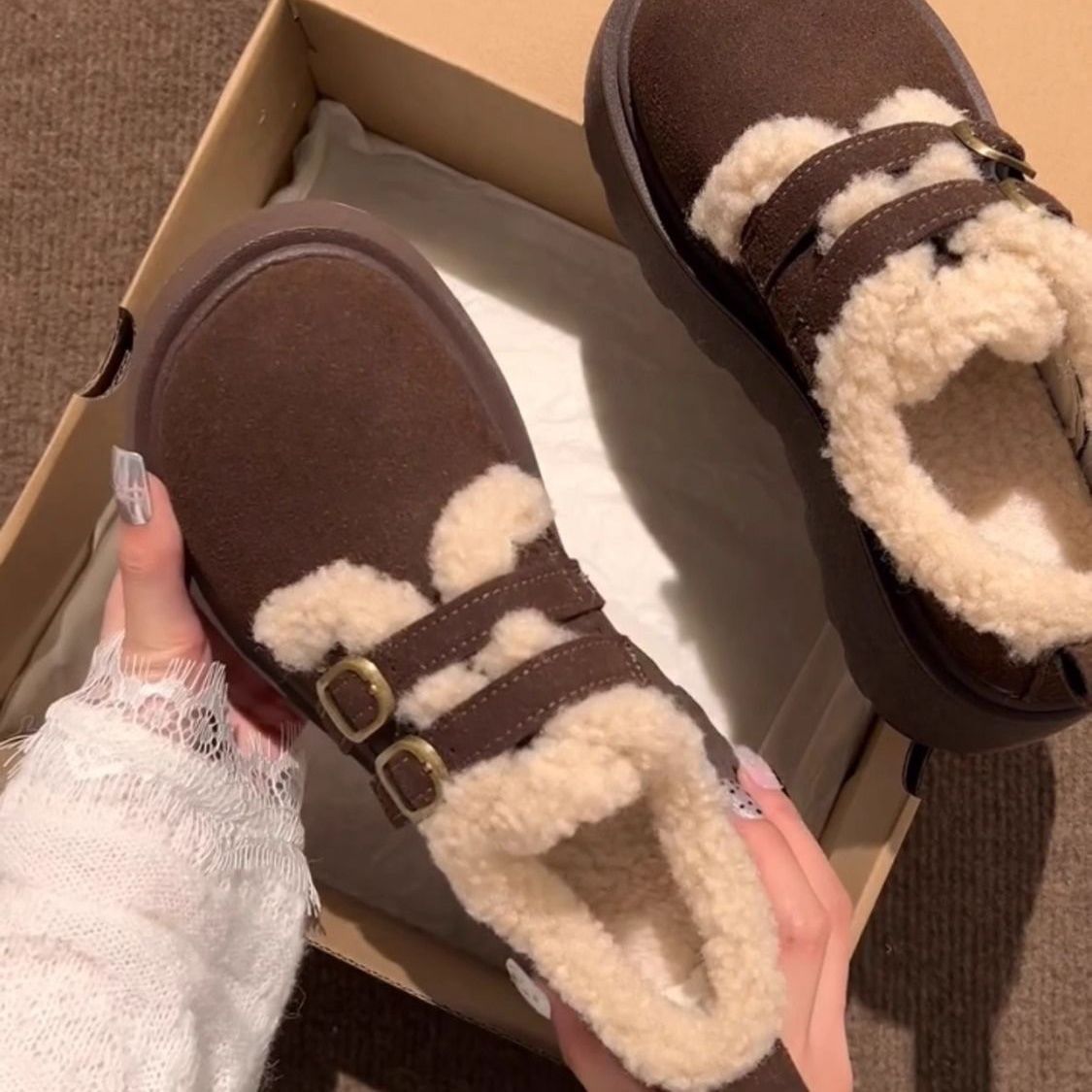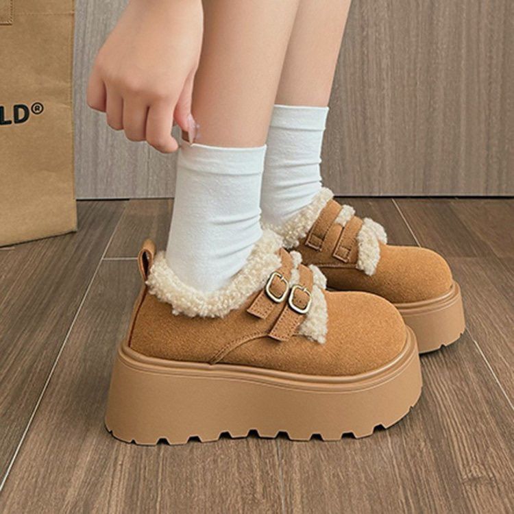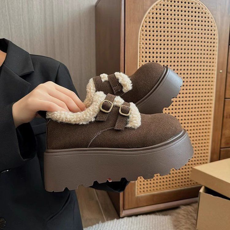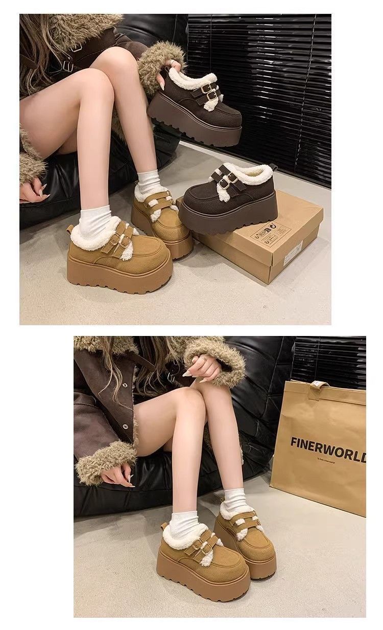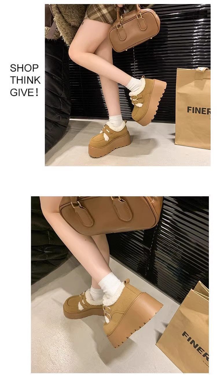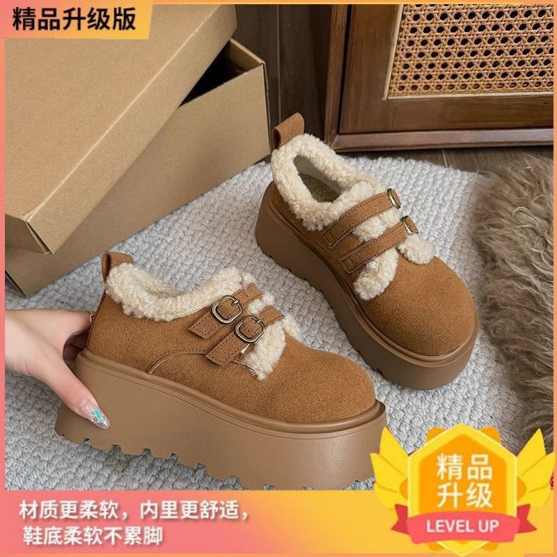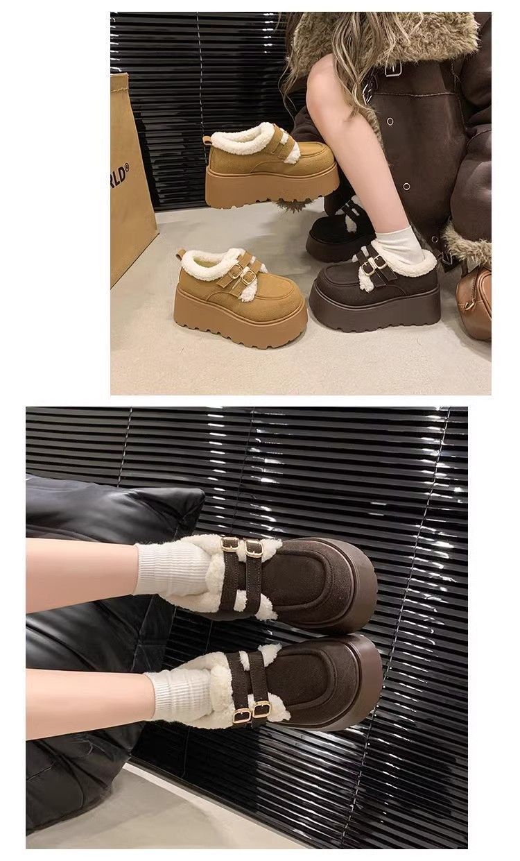 小个子厚底坡跟加绒毛毛勃肯棉鞋女冬季新款松糕加绒低帮雪地靴潮
