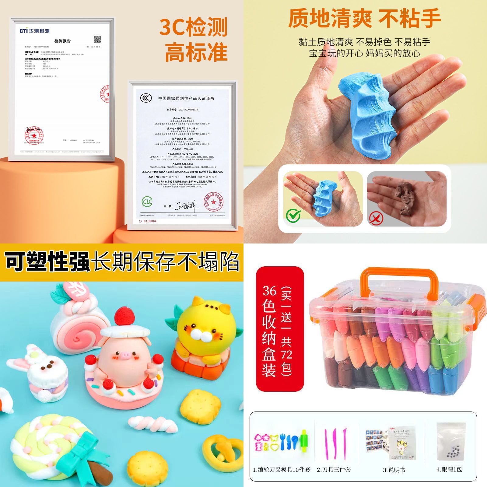 超轻粘土12色24色36色彩泥橡皮泥收纳盒加手提袋装儿童玩具