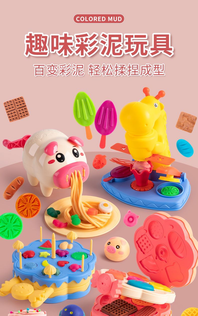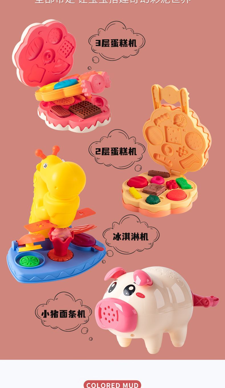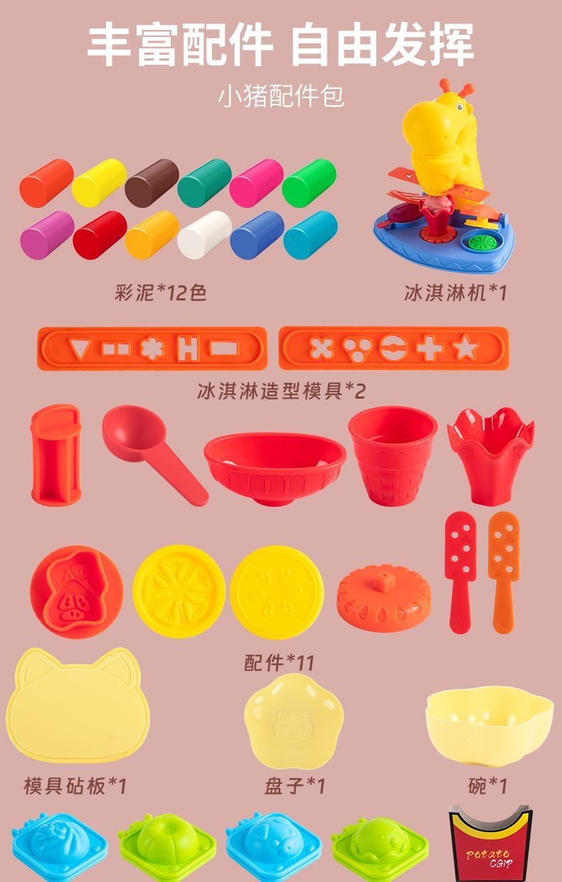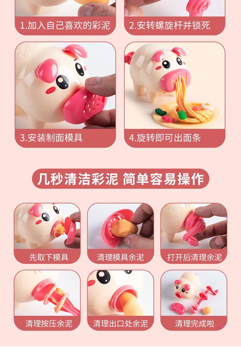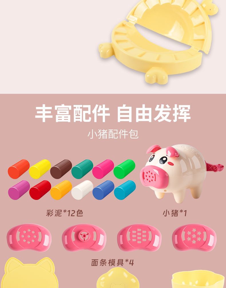 小猪面条机冰淇淋橡皮泥手工彩泥粘土模具儿童男女孩益智玩具