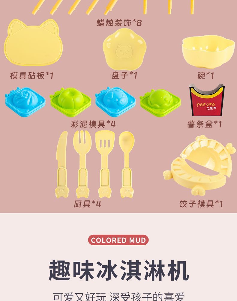 | 面条机+冰淇淋+粉汉堡+36泥收纳袋 | USD $7.01 | 99999 piece available |