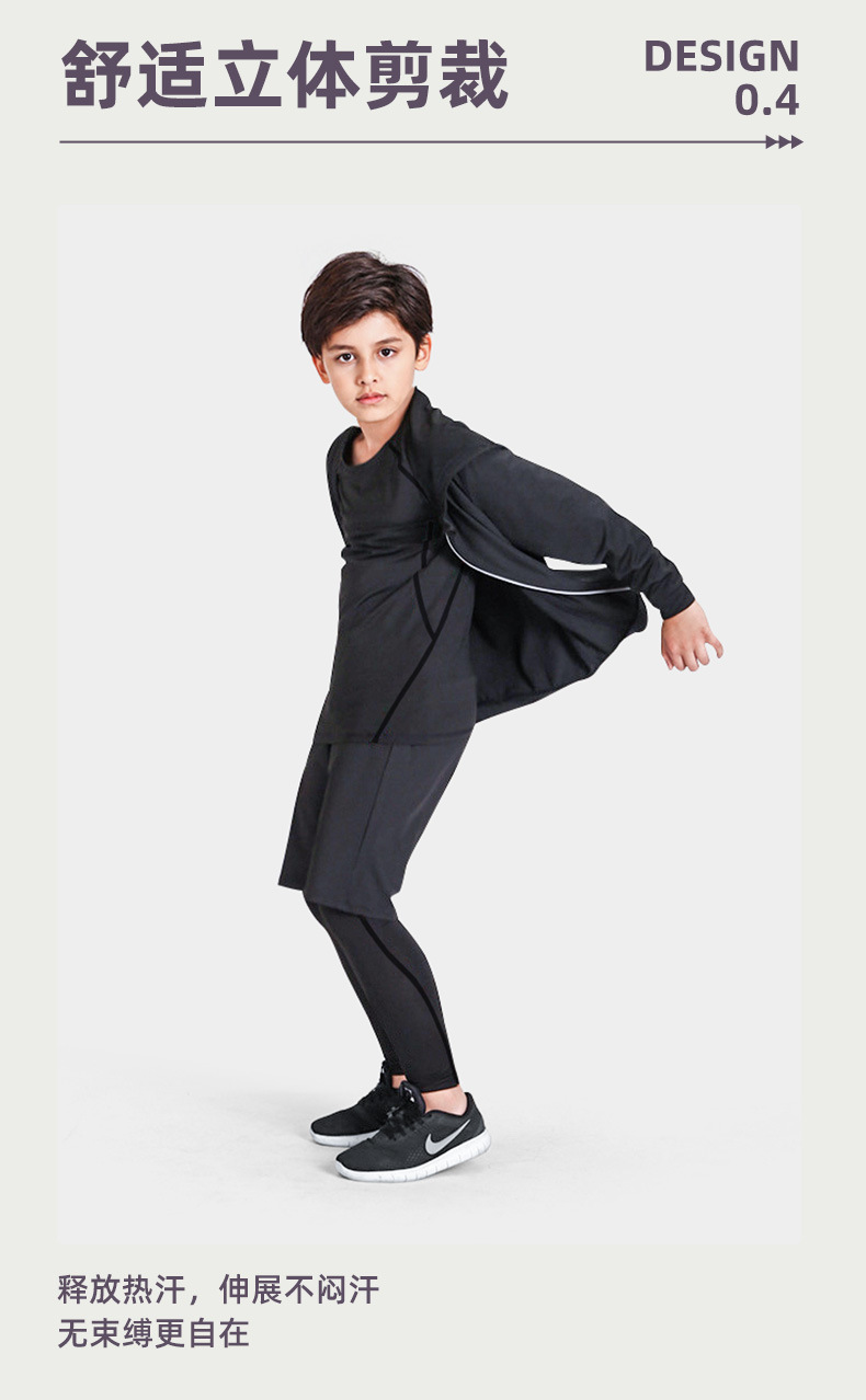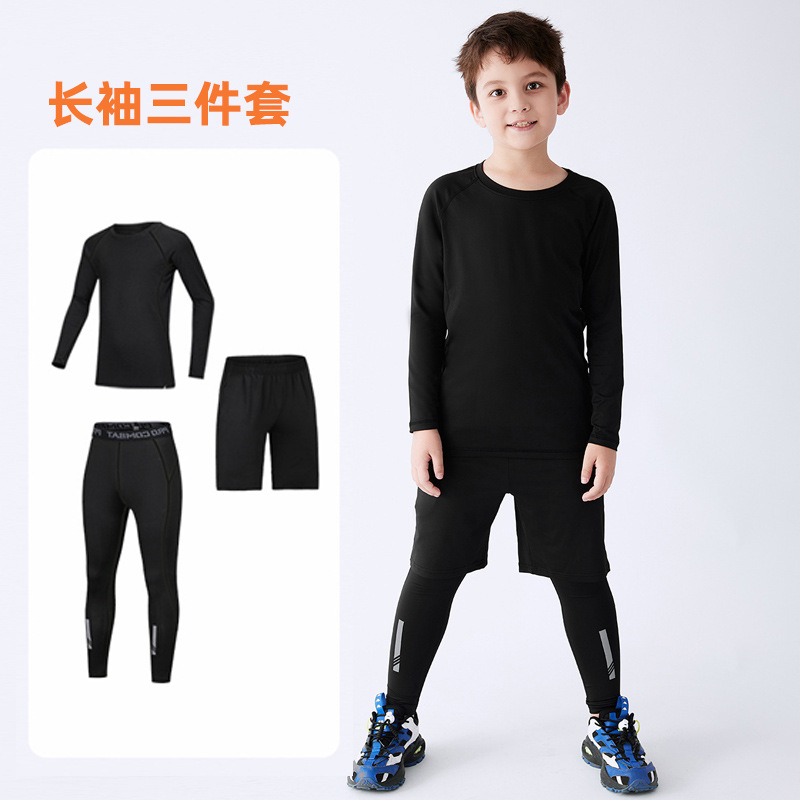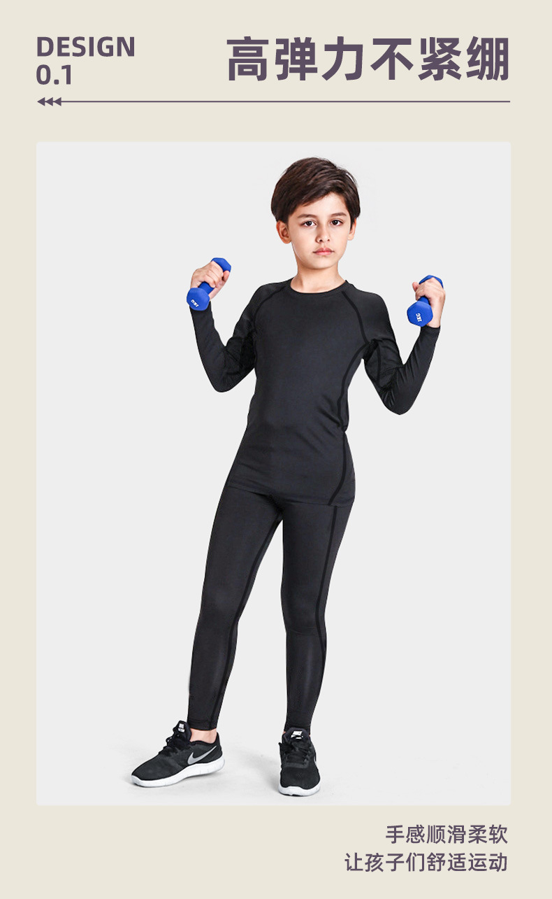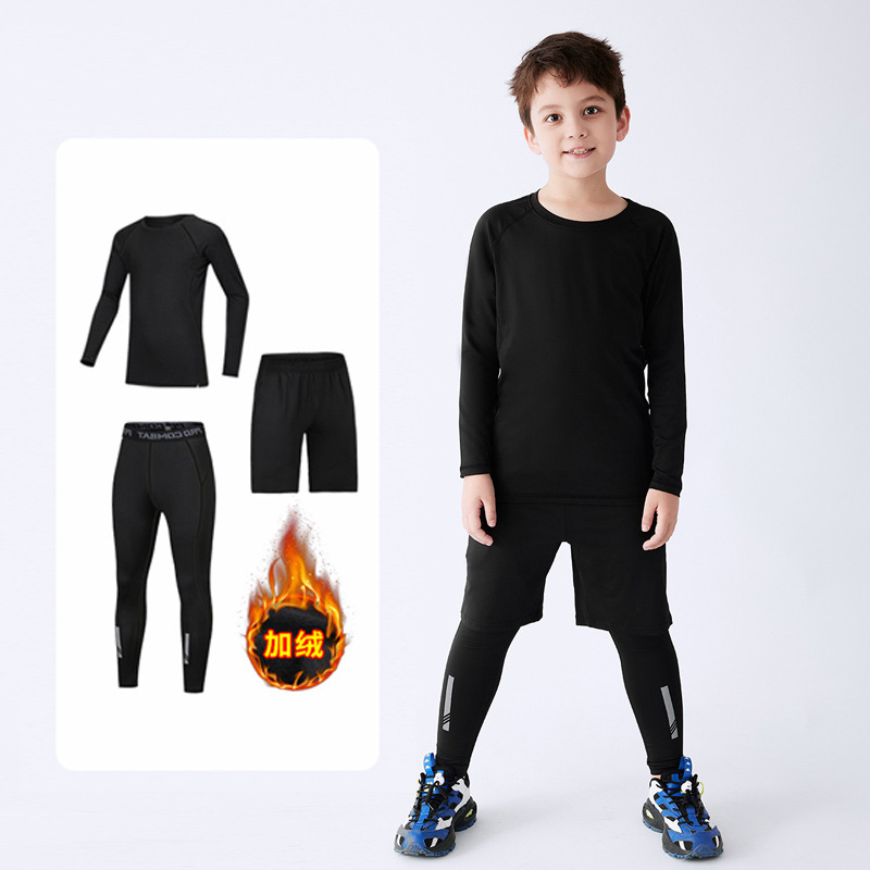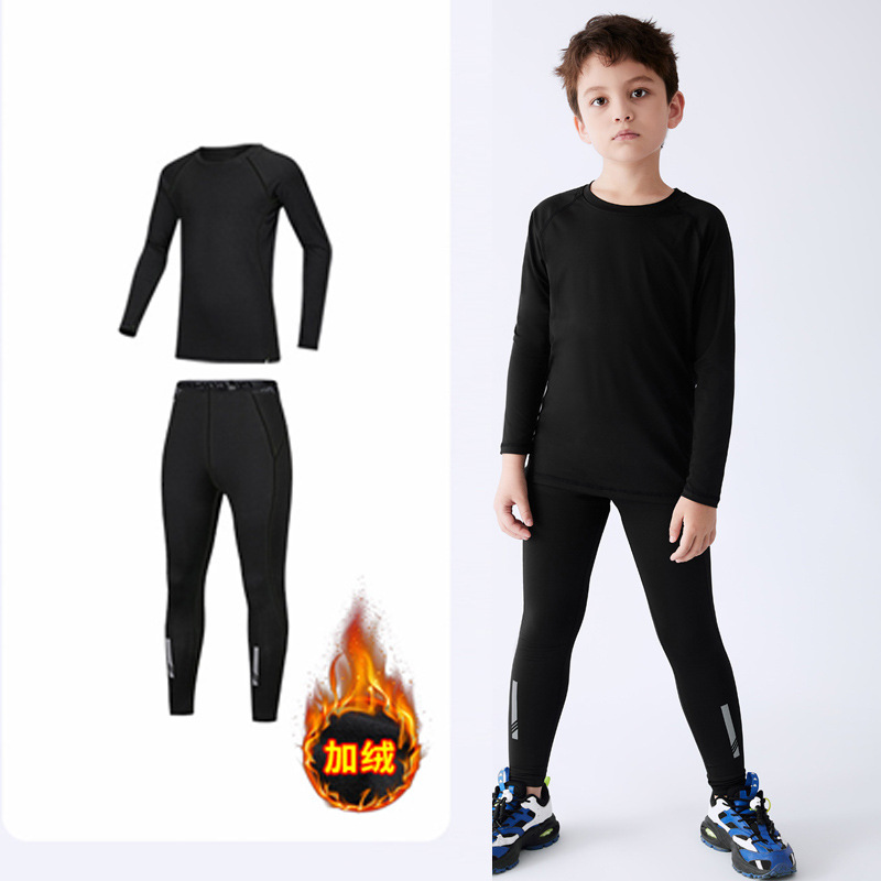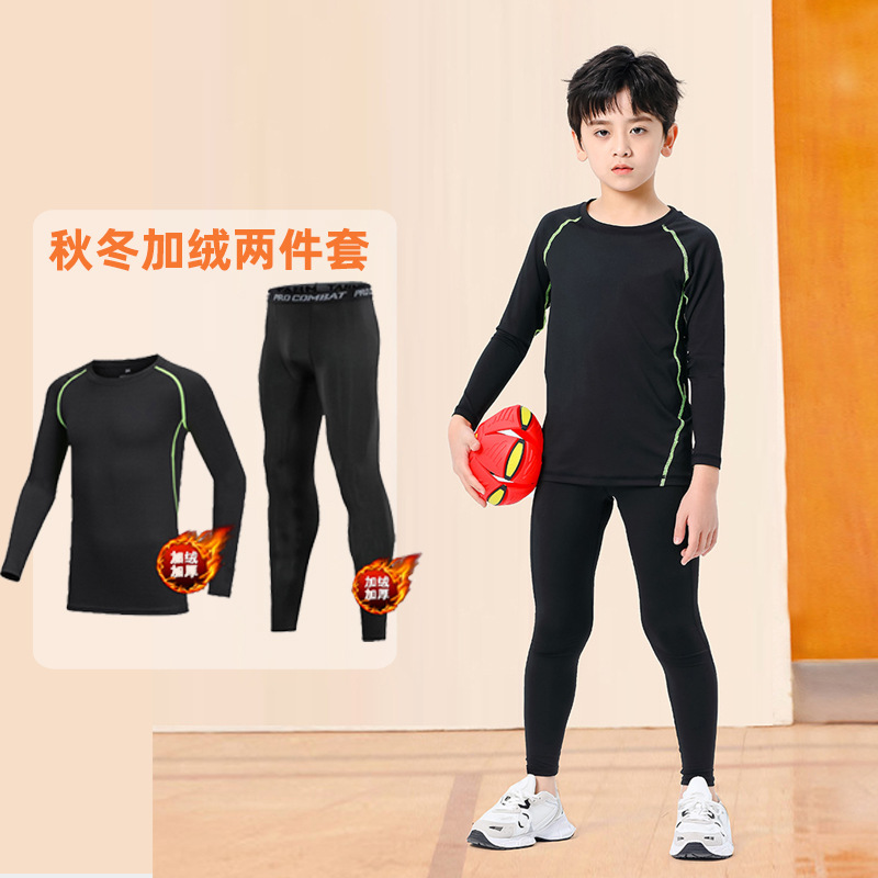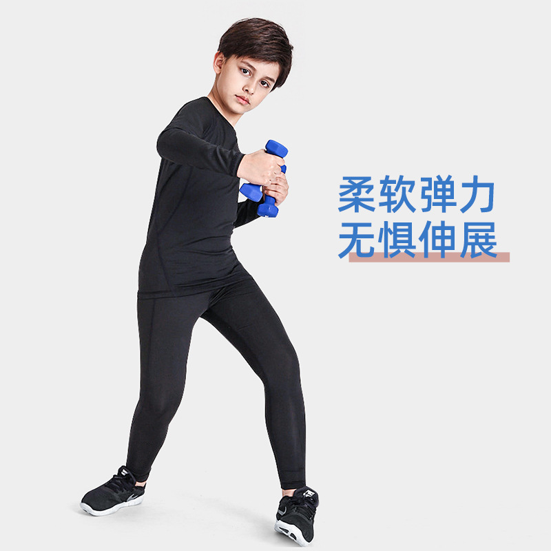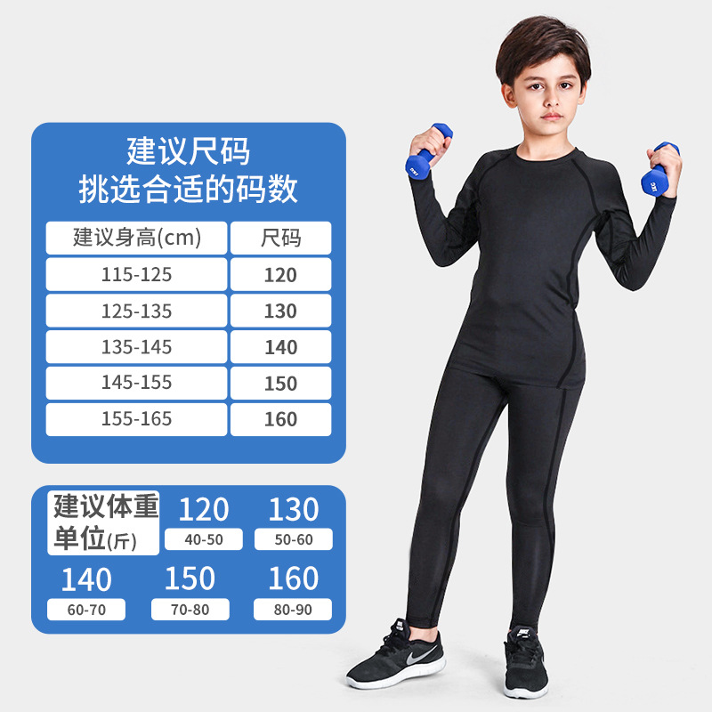 儿童运动紧身衣男套装篮球足球户外训练服速干衣打底保暖健身服